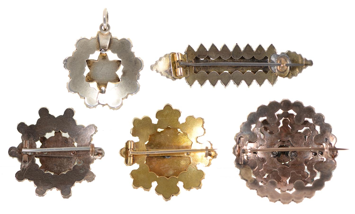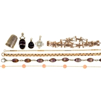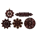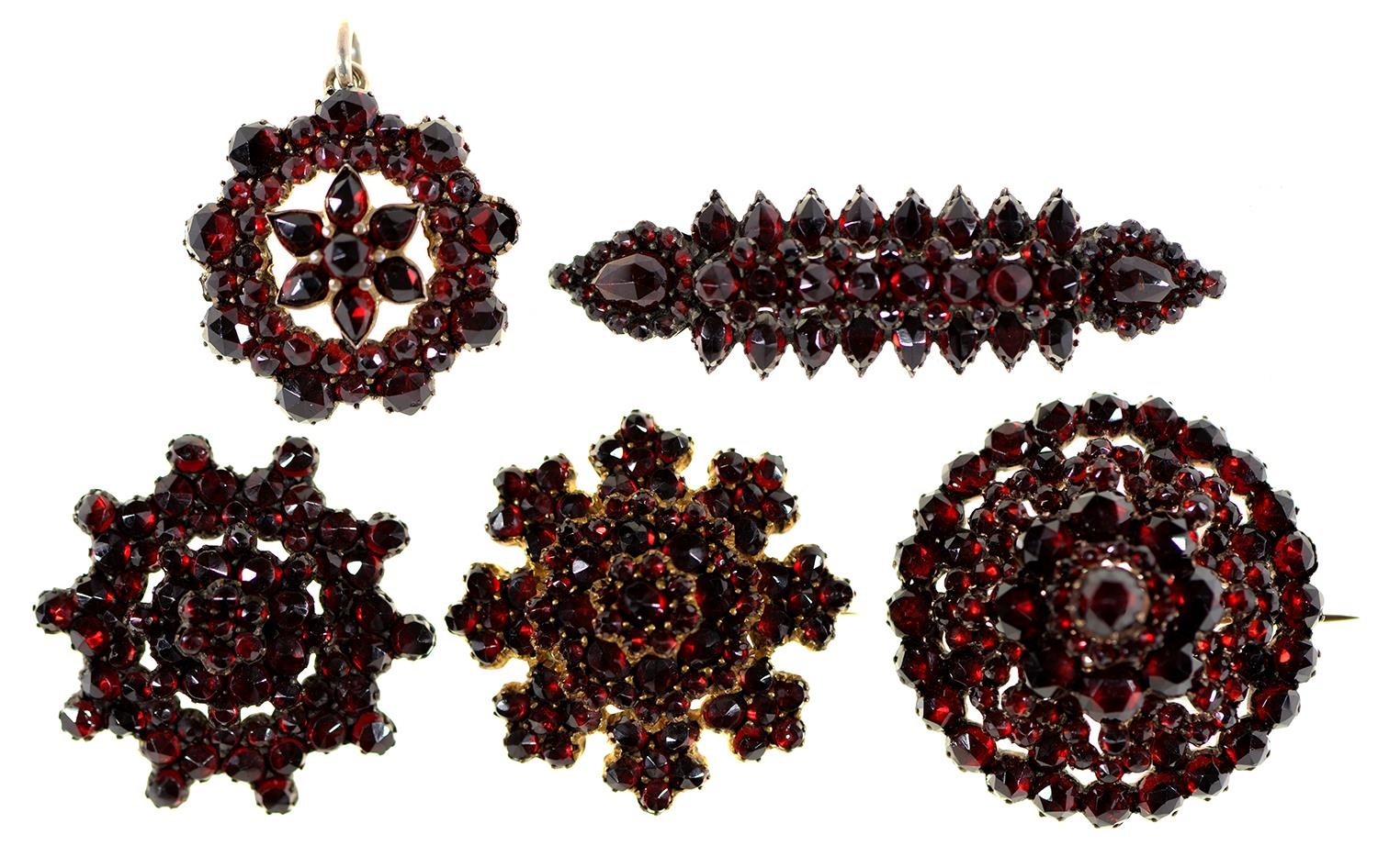 Four garnet brooches and a pendant, late 19th c, oblong brooch 54mm l, 32.6g