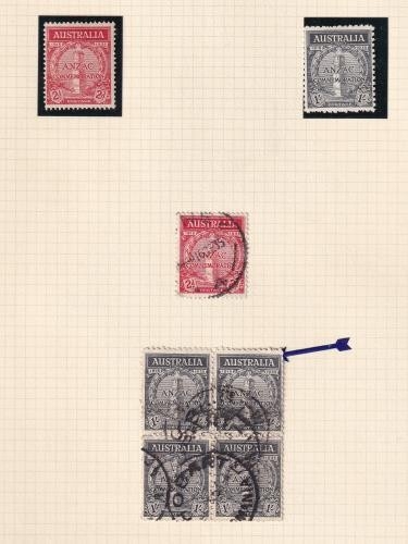 1913/36 Commemorative collection on old pages cat £900+ inc 1931 air set mint and FU, 1934 Victory both perf types, ANZAZ set mint plus scarce 1/- as a used block of 4, 1935 s/jubilee set mint, a good range of 94 stamps.