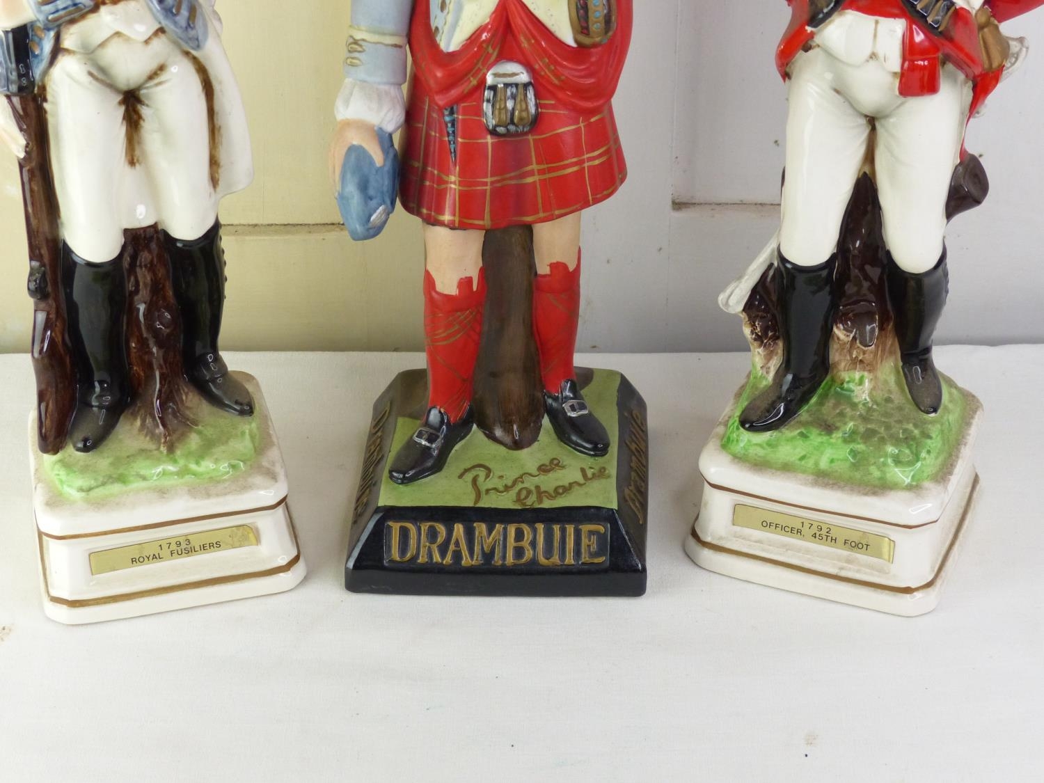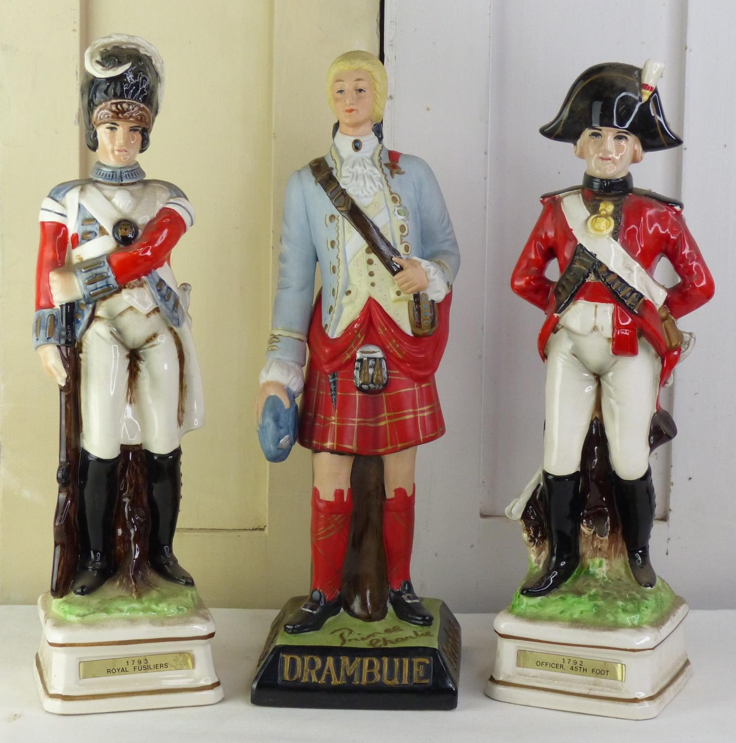Three military figures - 1793 Royal Fusiliers, Prince Charlie Drambuie, and 1792 Officer 45th Foot.