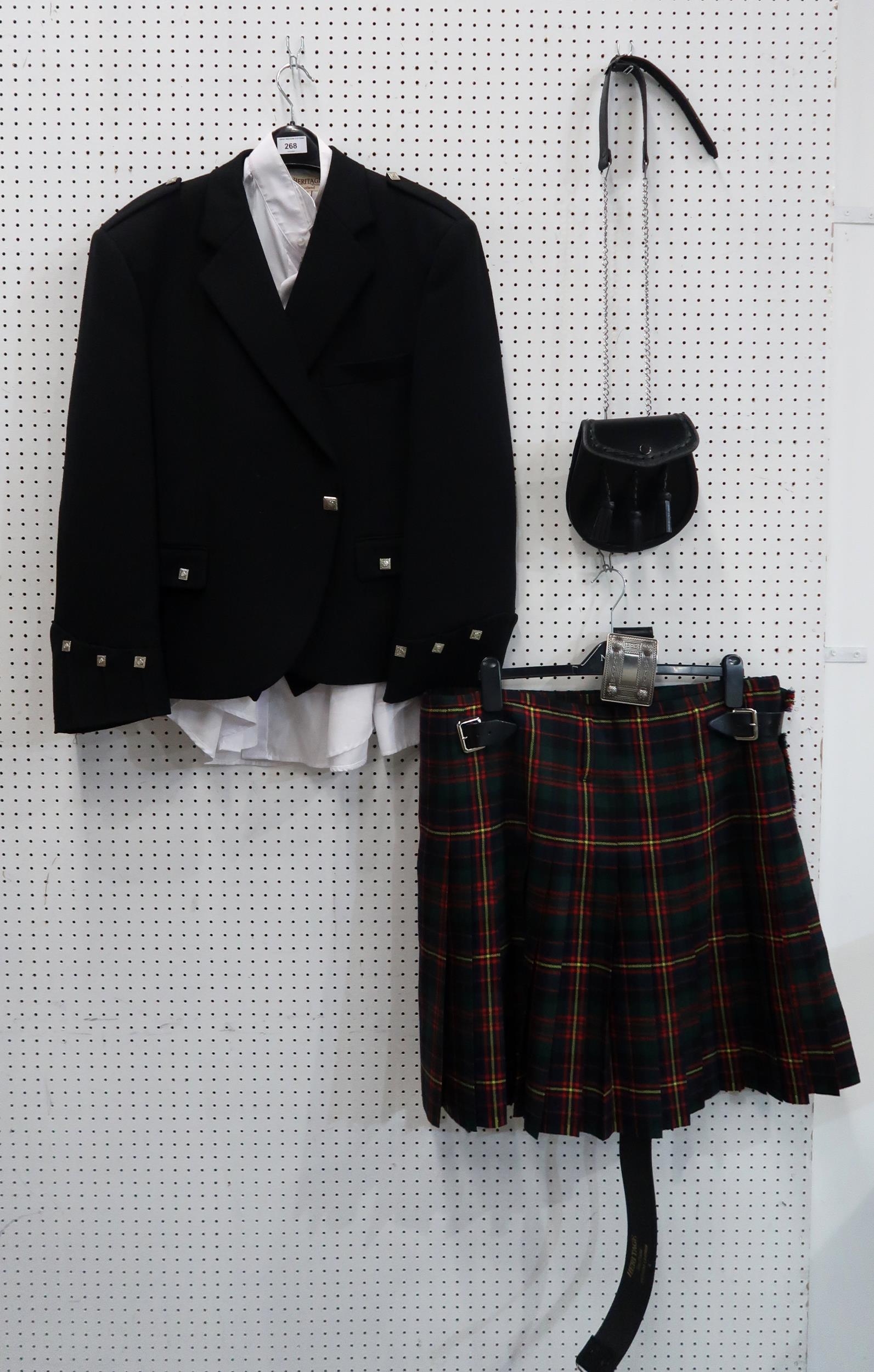 A gent's kilt, with shirt, waistcoat, jackets, belt, sporran etc