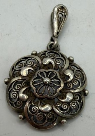Jewellery: Small attractive vintage silver pendant (1.9g)