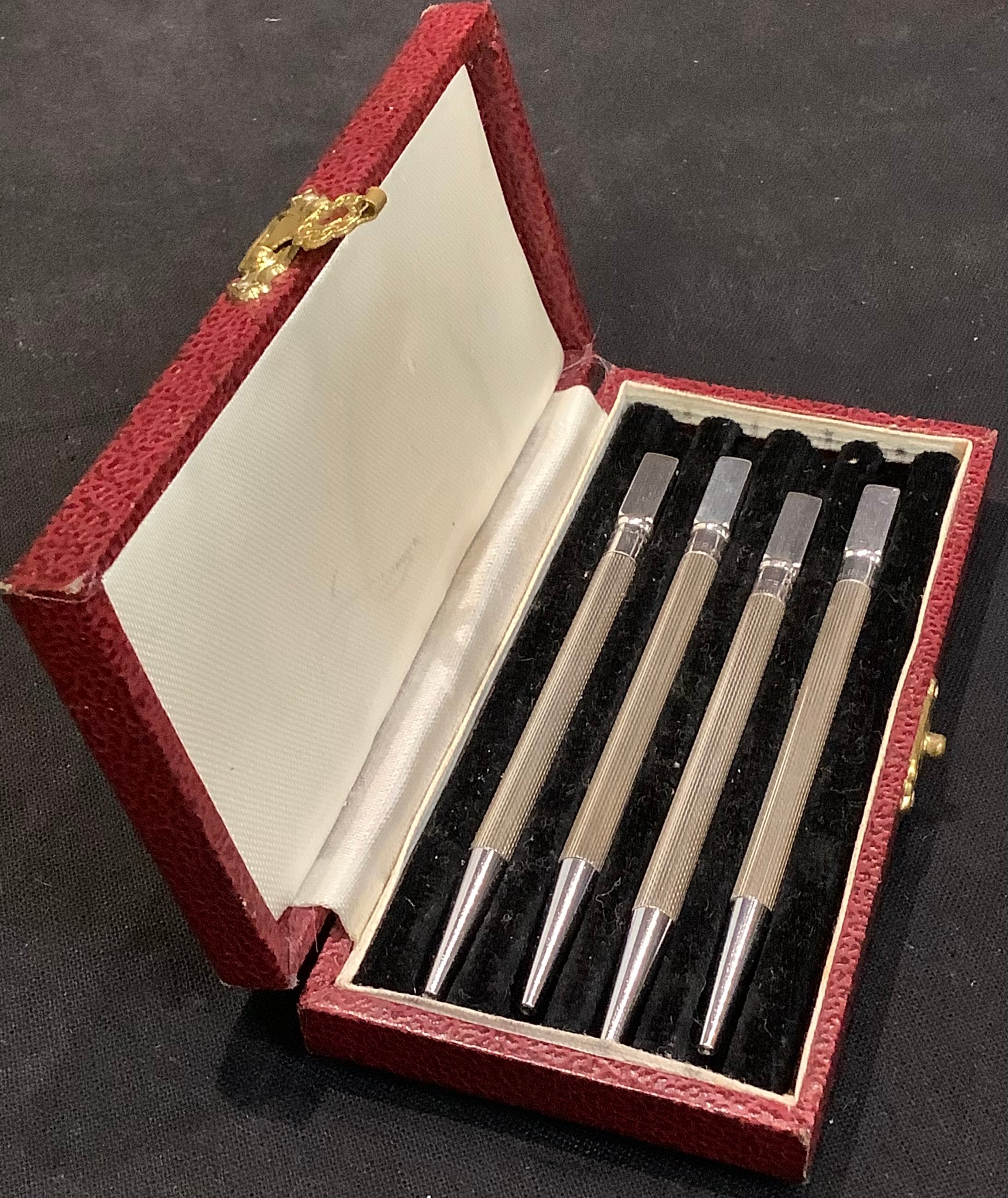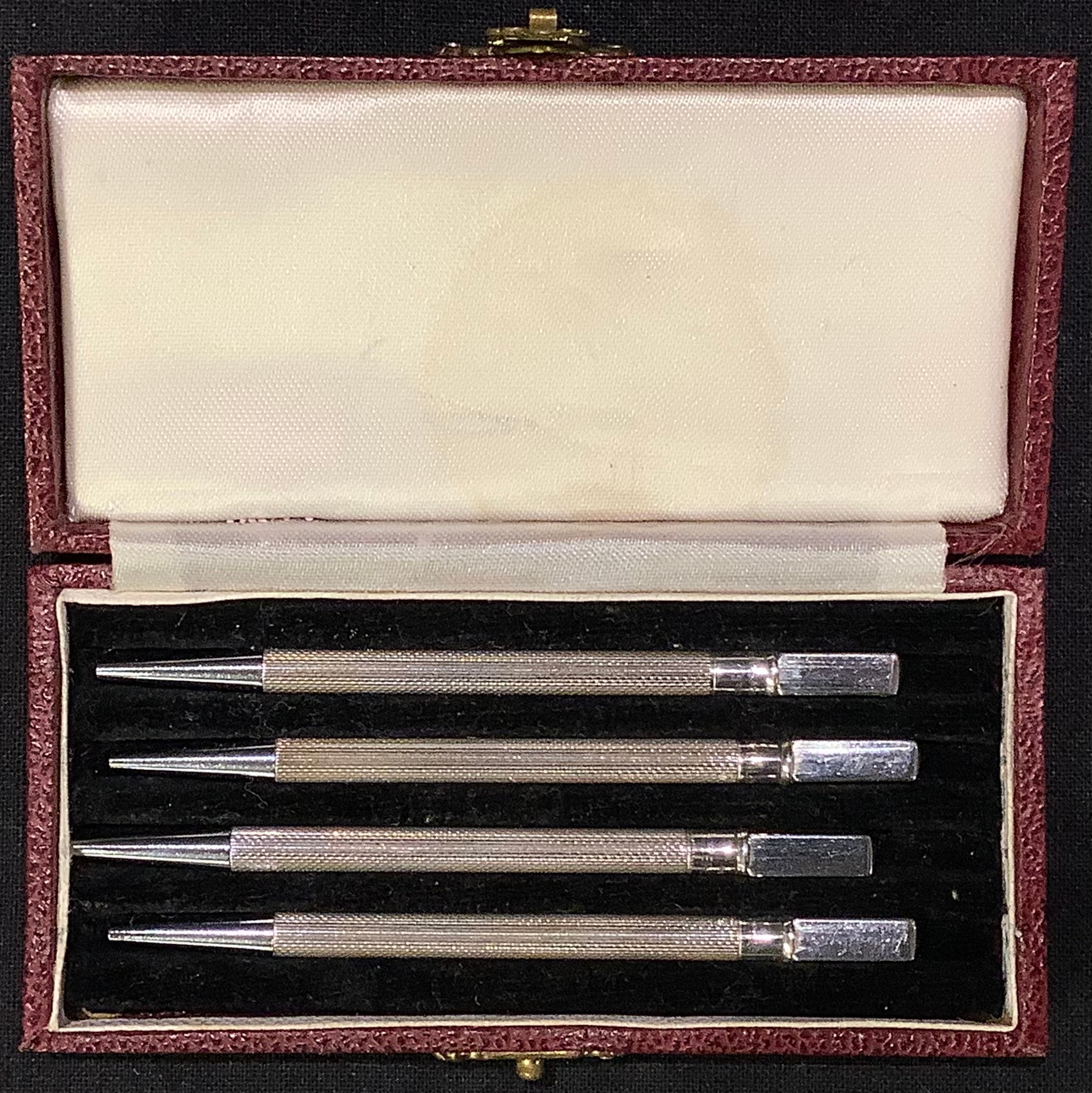 A set of four silver propelling pencils, marked Sterling Silver, cased