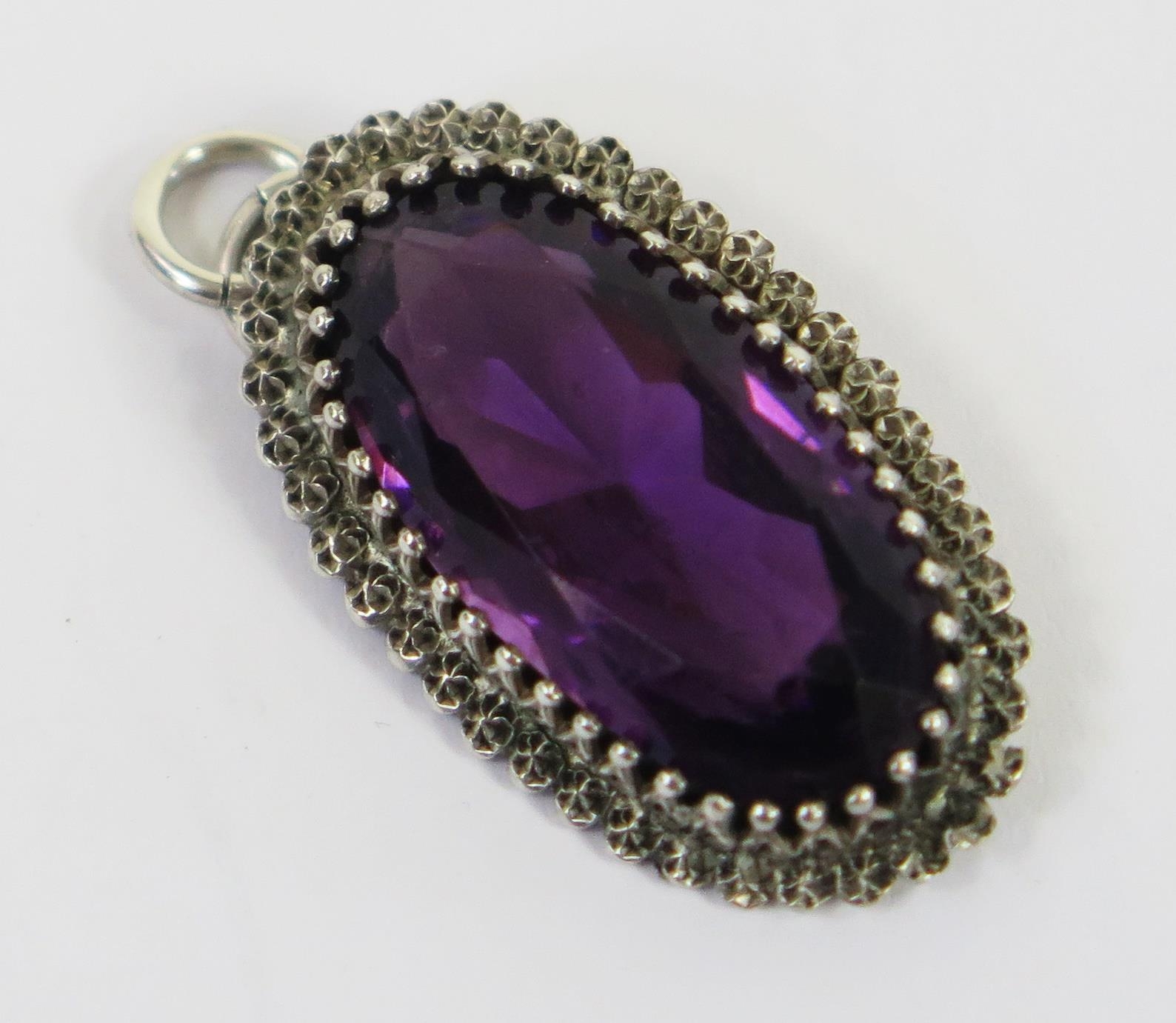 A Victorian Charles Horner Silver and 'Amethyst' Paste Brooch, c. 27x15.5mm, Chester 1900, 4.77g