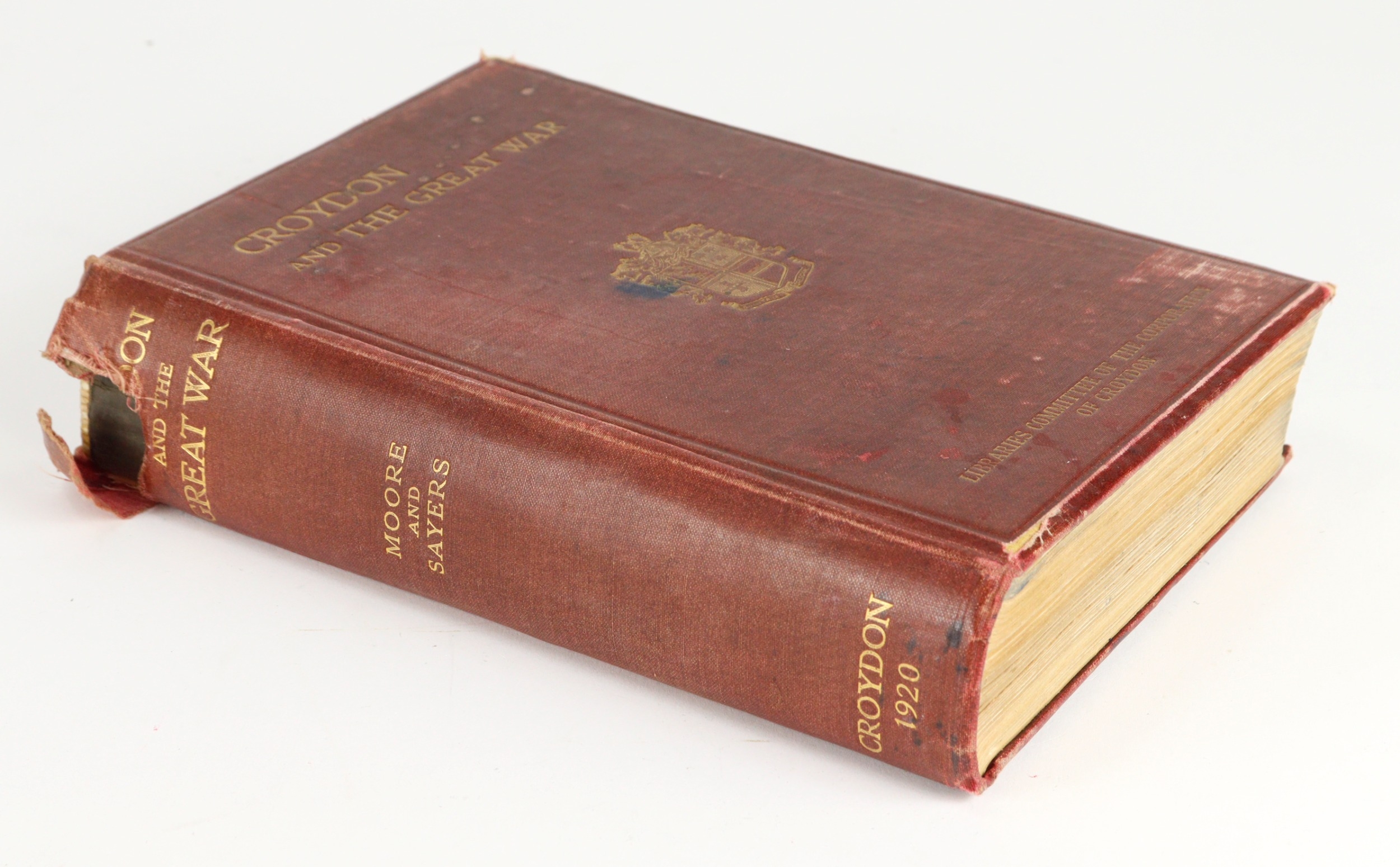 Book - Croydon and The Great War, published 1920. This book presented by the Corporation in grateful recognition of the service and sacrifice of T W Young. Noted on page 423, served Australian I.F. Wounded France, Died pneumonia. Cover tatty