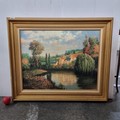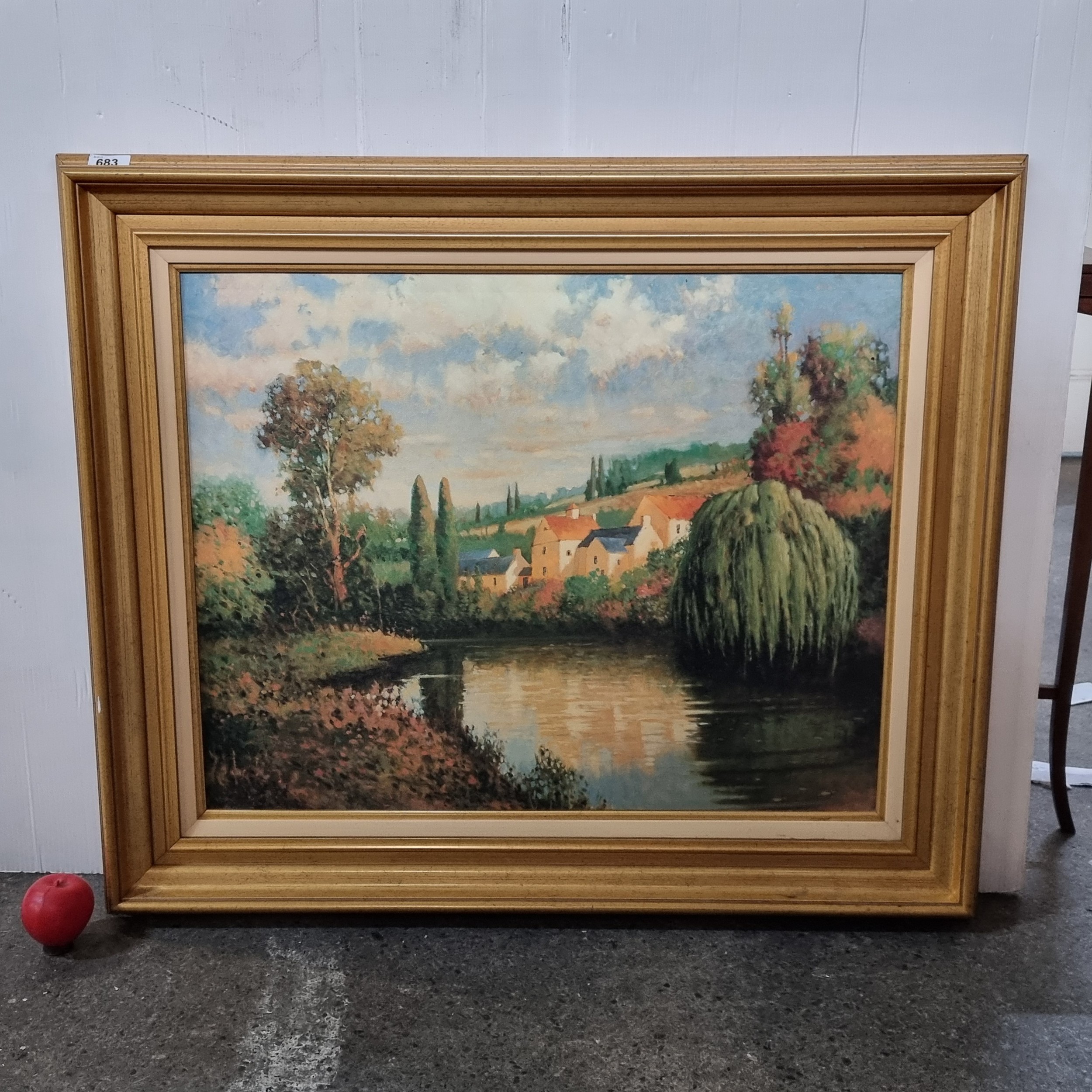Star Lot: A very large quality print after an original oil painting titled 'Summer at Limoux' by 'Max Hayslette (1929-2024)'. Housed in a heavy gilt frame.