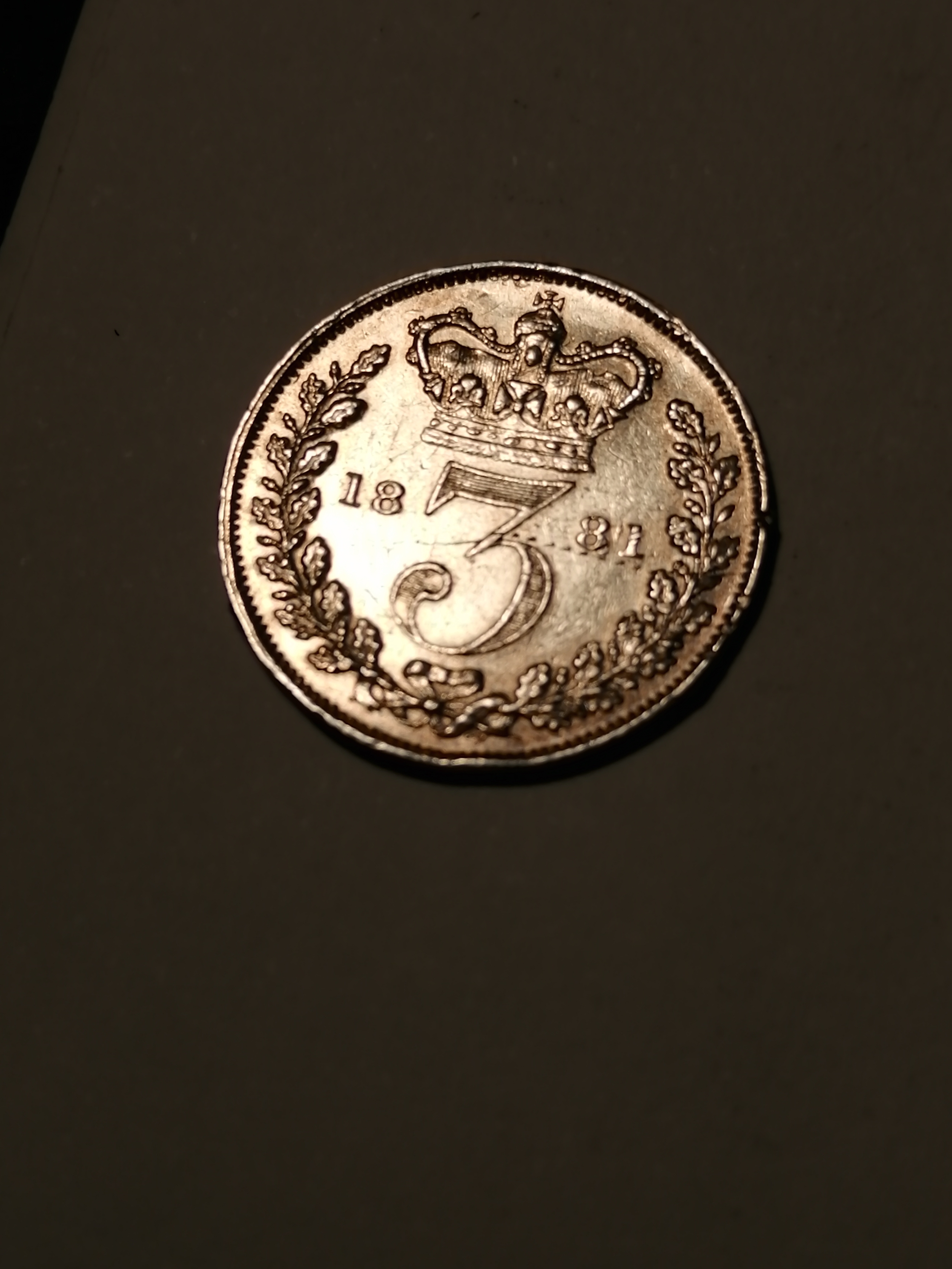 COINS : 1881 Victorian threepence in extremely fine condition