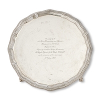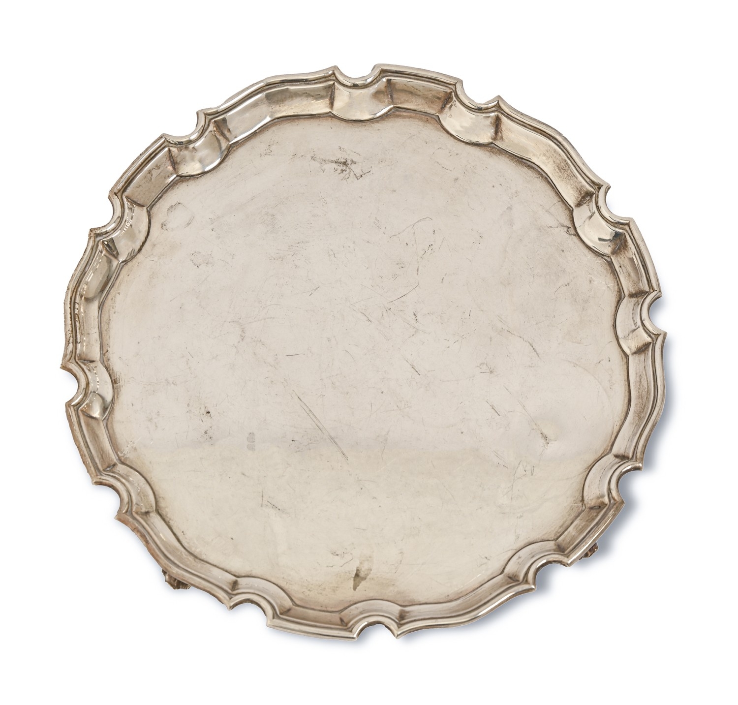 An Elizabeth II silver salver, on four feet, 30.5cm diam, by Roberts & Belk Ltd, Sheffield 1970, 26oz 15dwt
