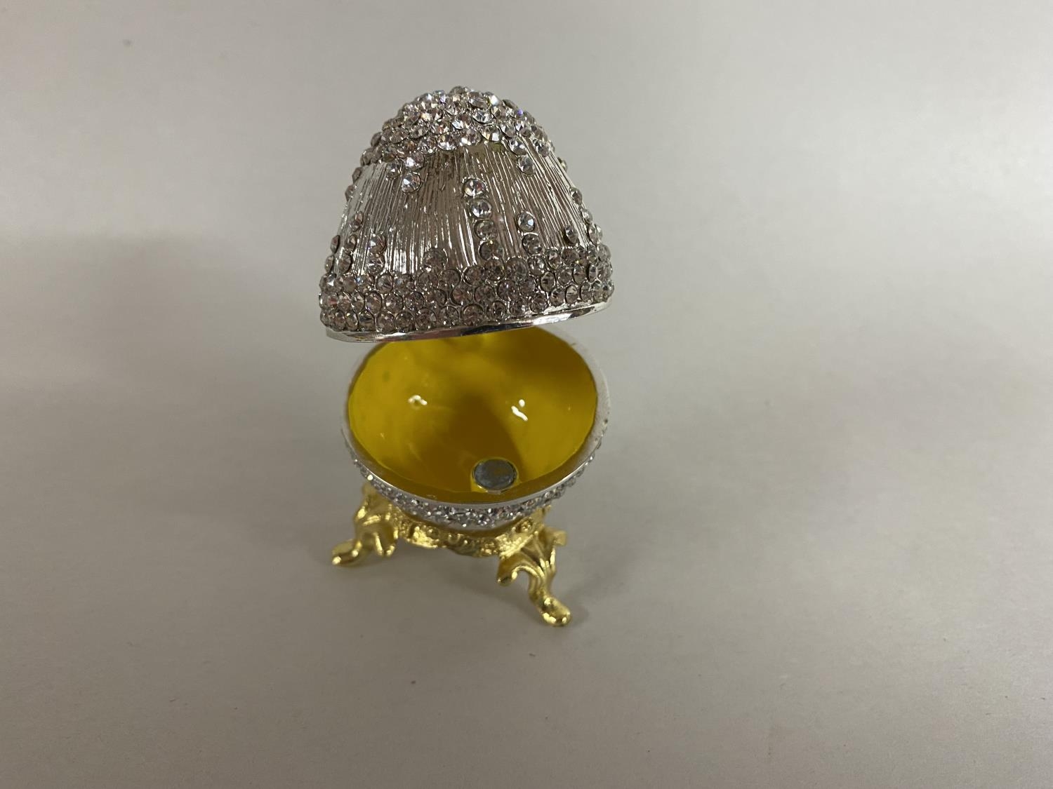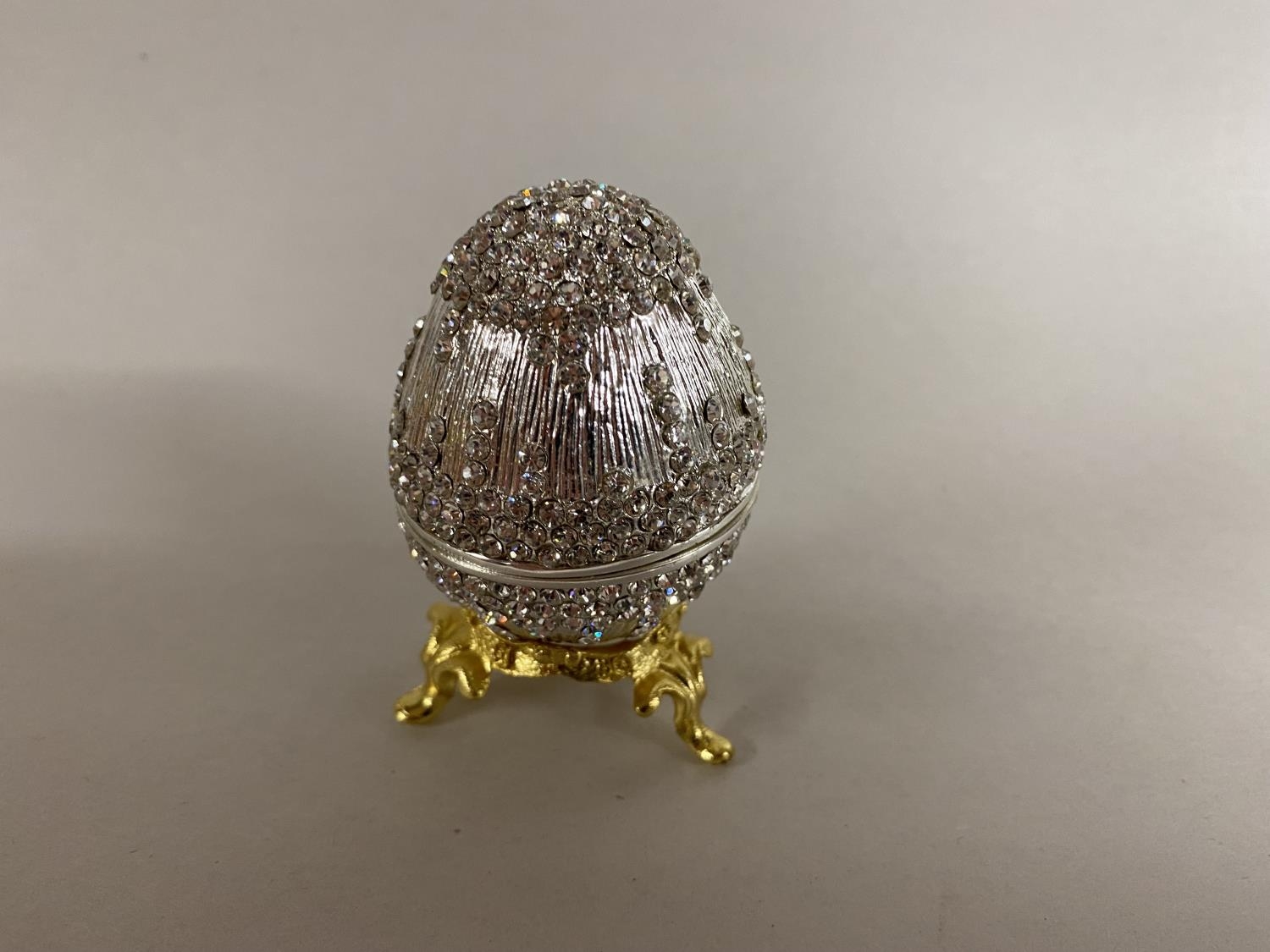 Jewelled, enamelled & hinged Trinket Box in form of an Egg