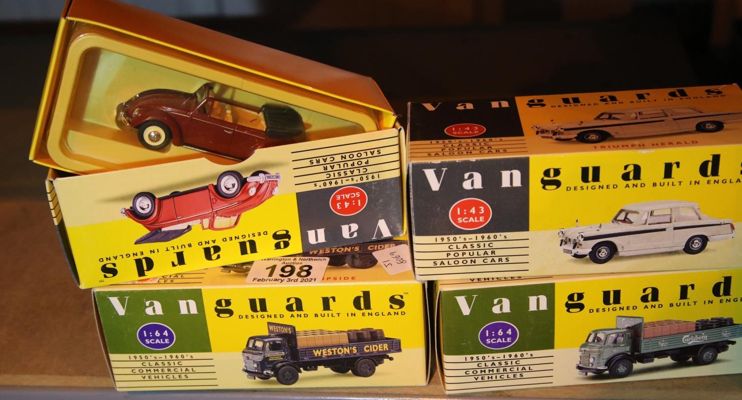 Four Vanguard boxed vans/automobiles. Not available for in-house P&P, contact Paul O'Hea at Mailboxes on 01925 659133
