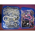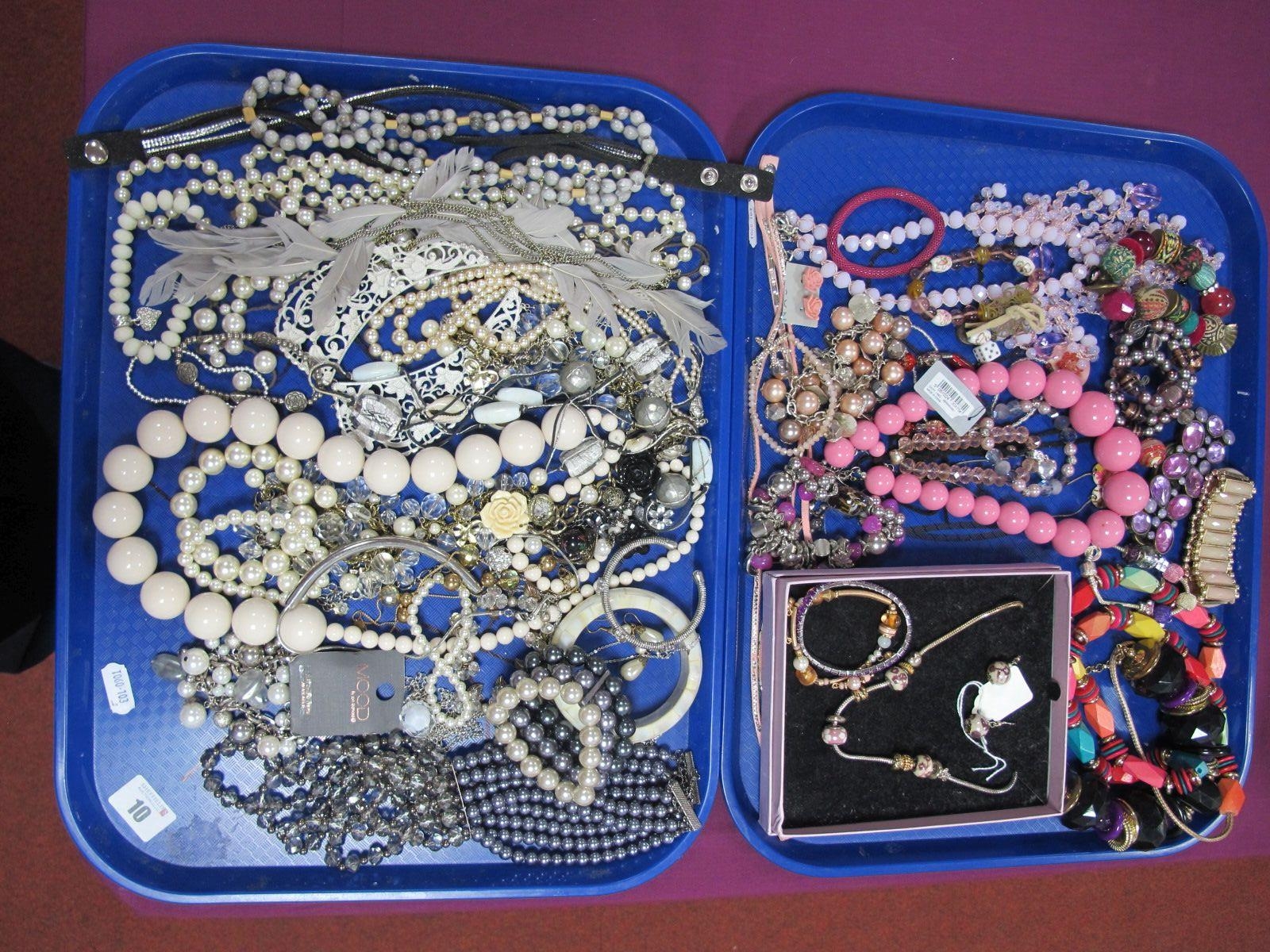 Imitation Pearl Bead Necklaces, Pandora style bracelets and necklaces, large graduated bead necklaces, bangles and bracelets, together with further modern costume jewellery, etc :- Two Trays