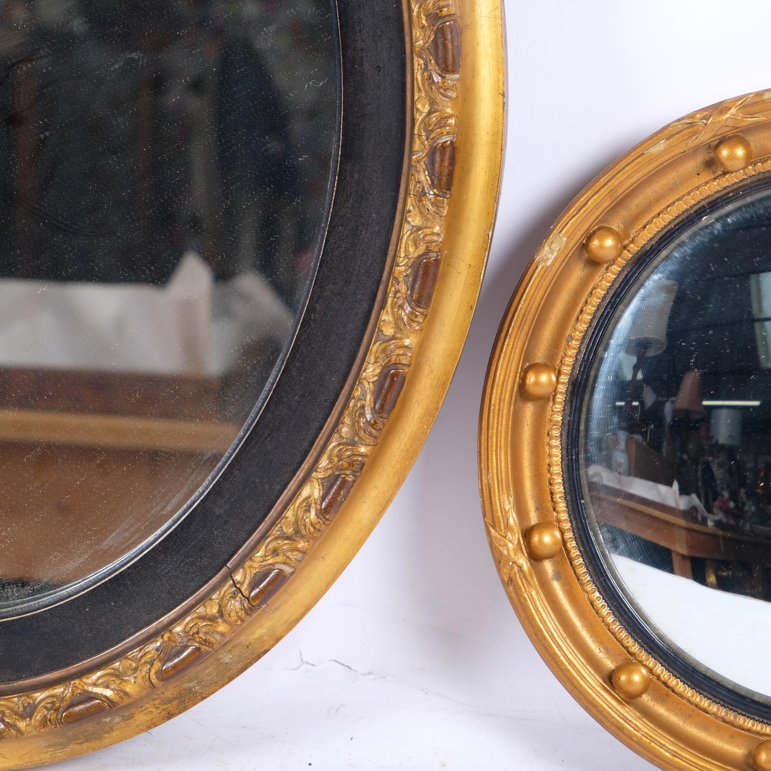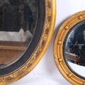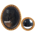 A carved gilt-framed oval wall mirror, H48cm, and a small gesso-framed convex wall mirror, diameter 26cm (2)