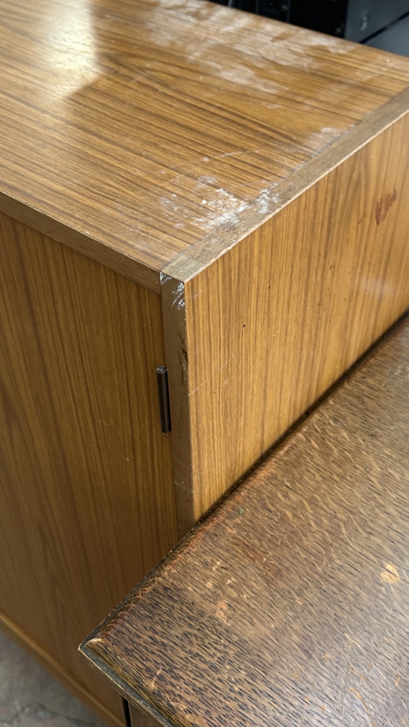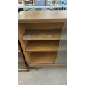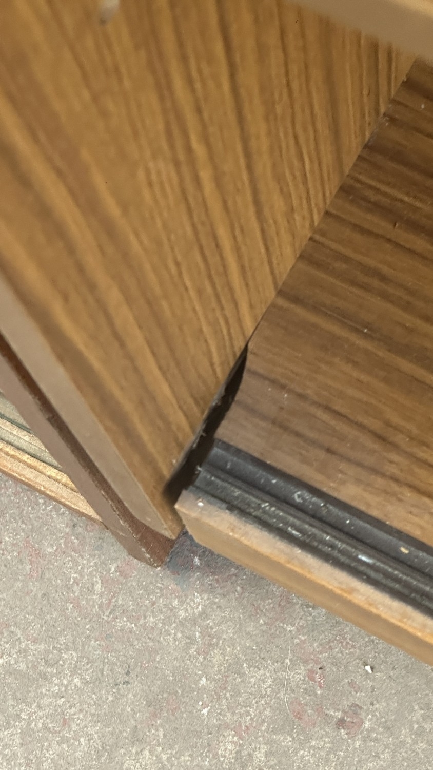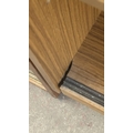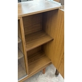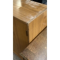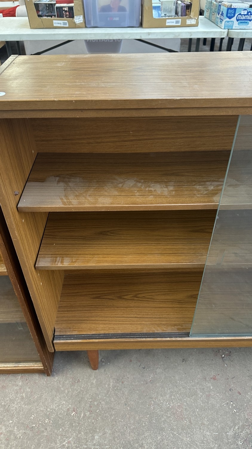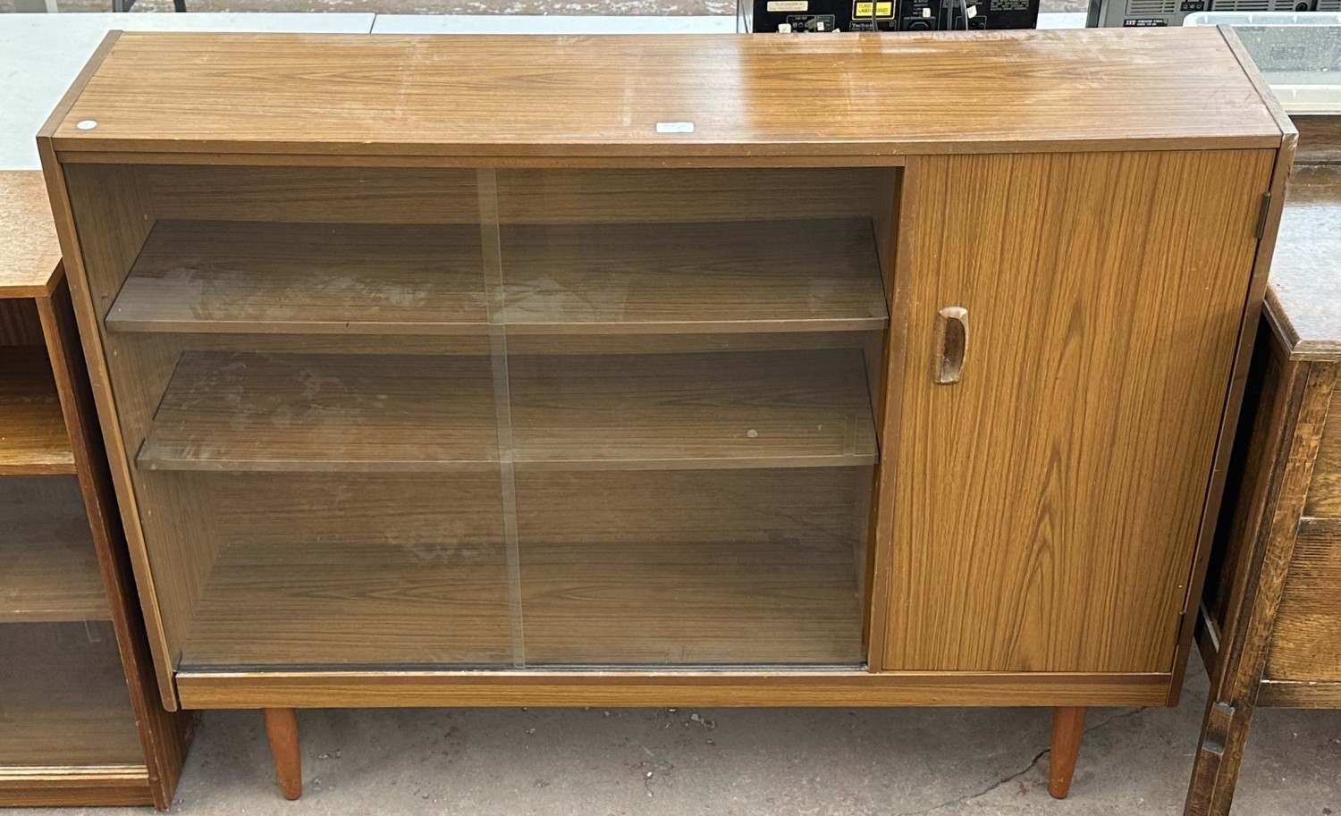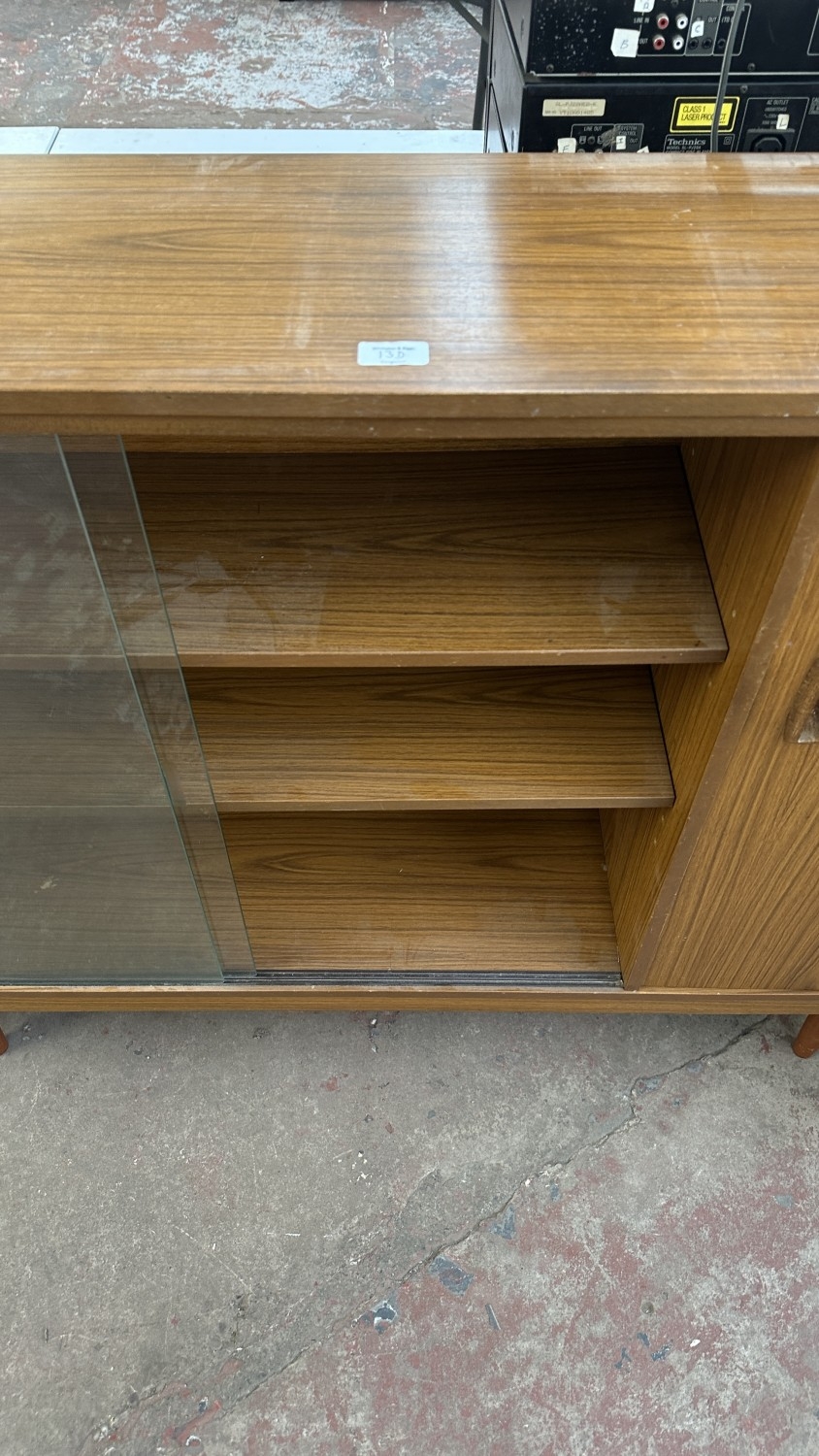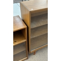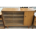 A mid 20th century teak effect bookcase with two glass sliding doors - approx. 100cm high x 130cm wide x 29cm deep