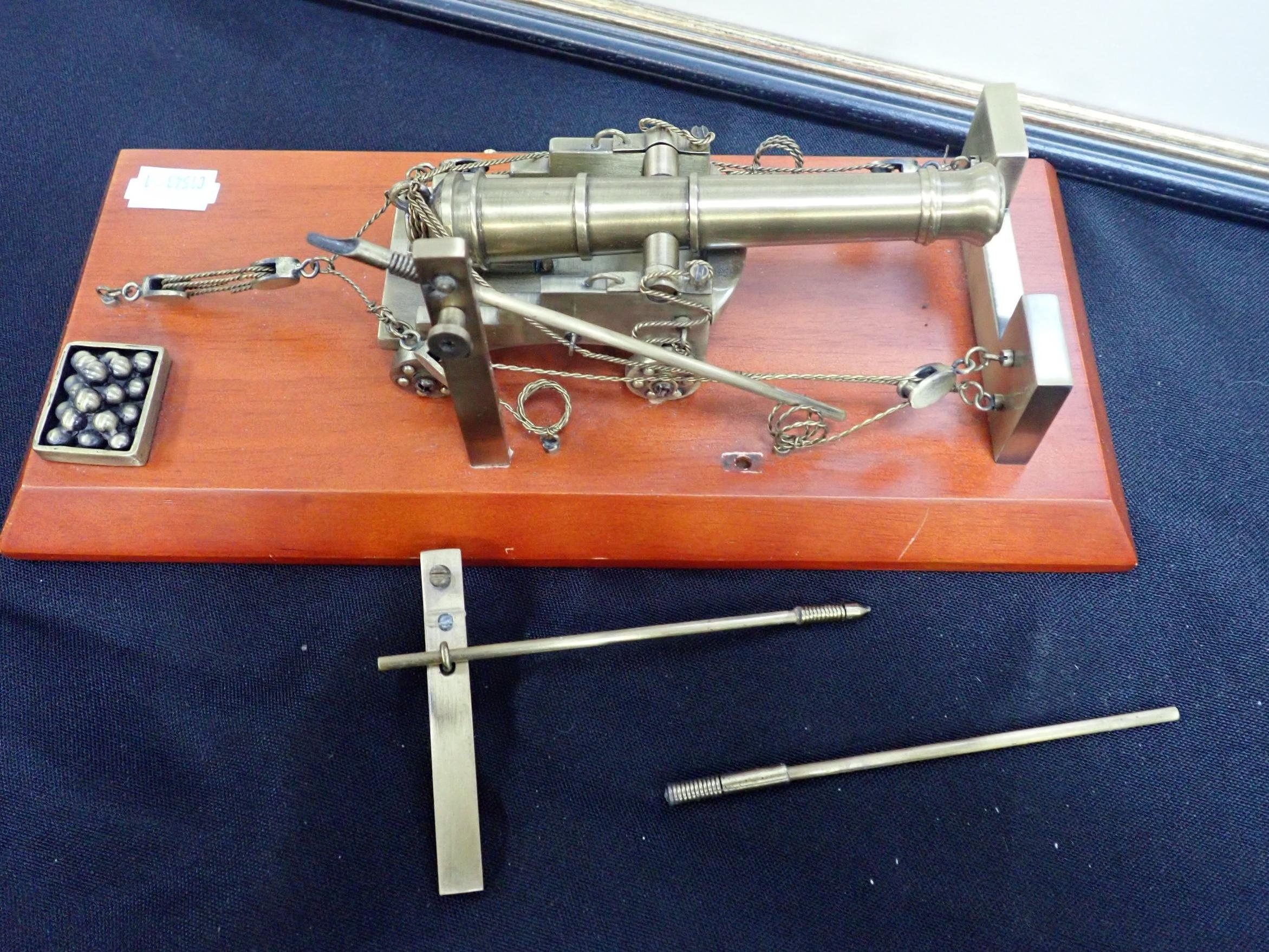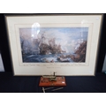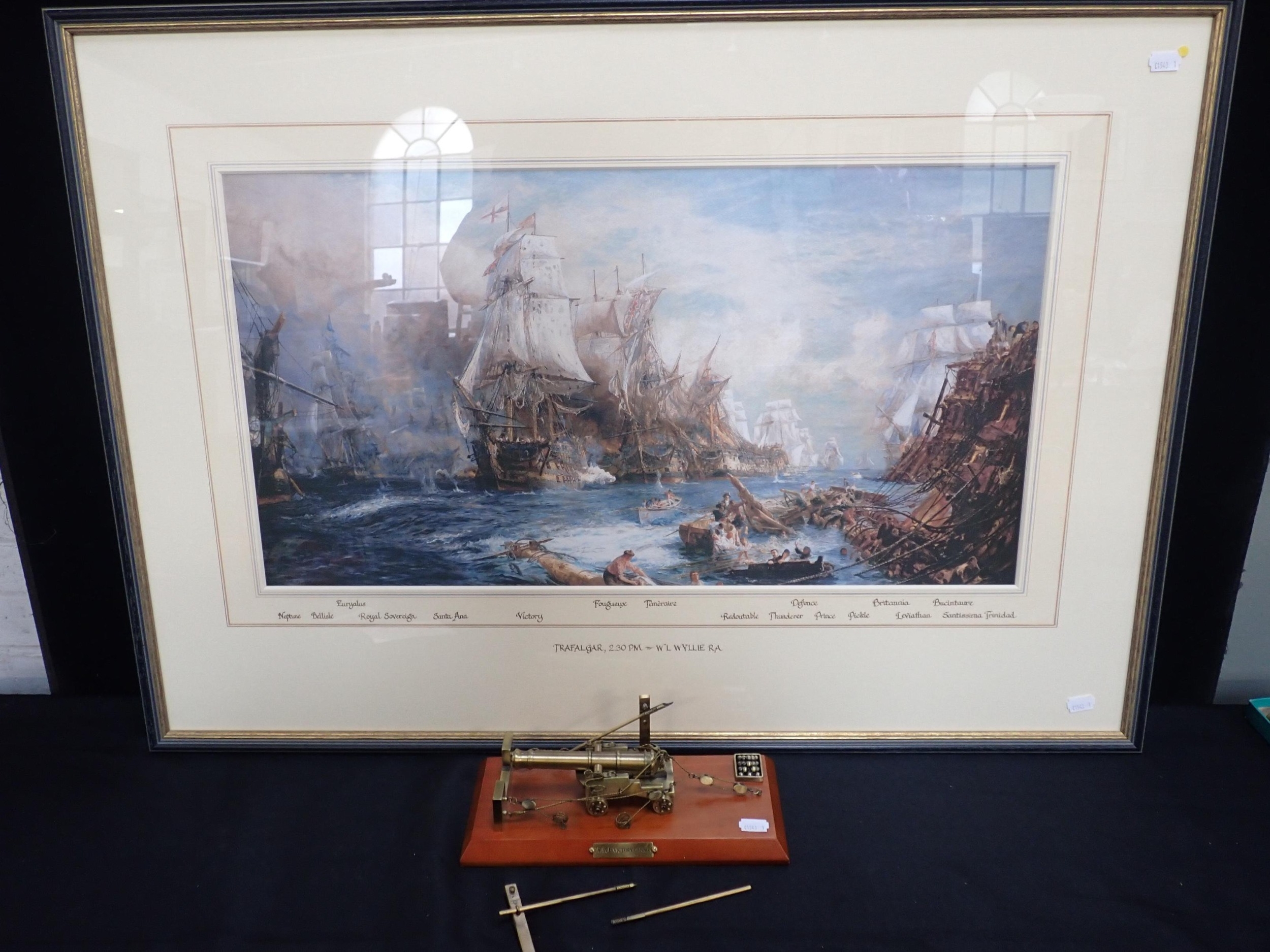 from Maritime Prints, back label numbered 38/750, framed, 66 x 94cm, and a commemorative model HMS Victory canon (with loose piece) (2)