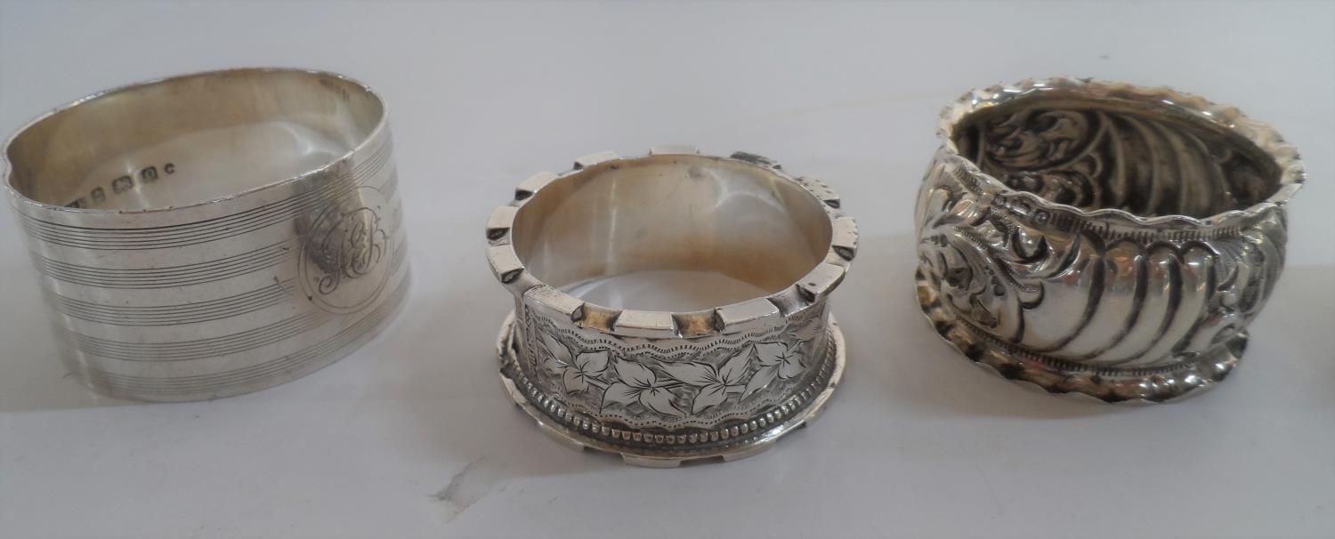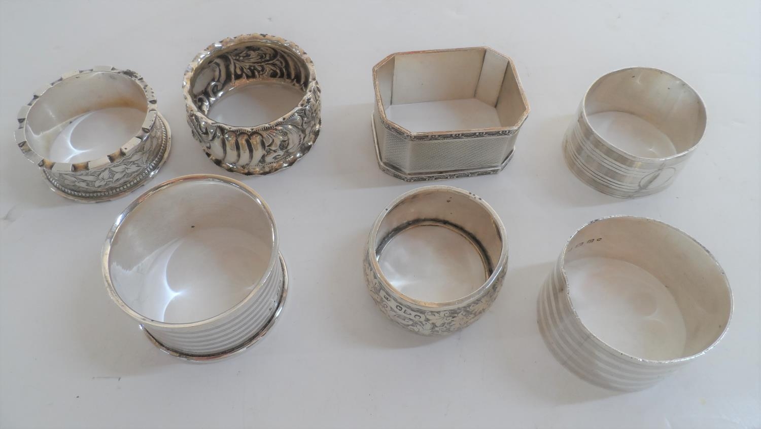 Seven Edwardian, various styled silver napkins, mainly Birmingham stamps (7),