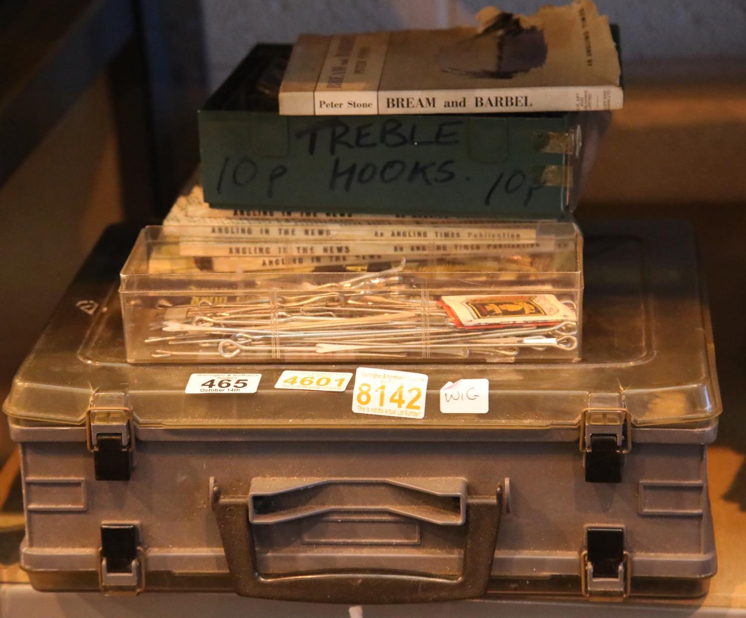 Mixed fishing lures and angling books. Not available for in-house P&P.