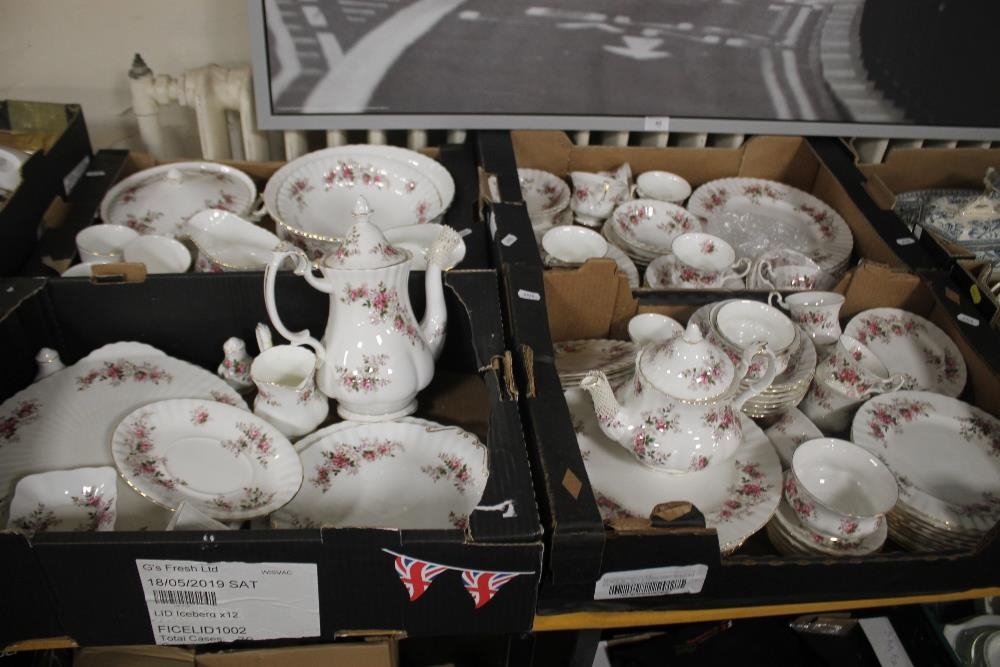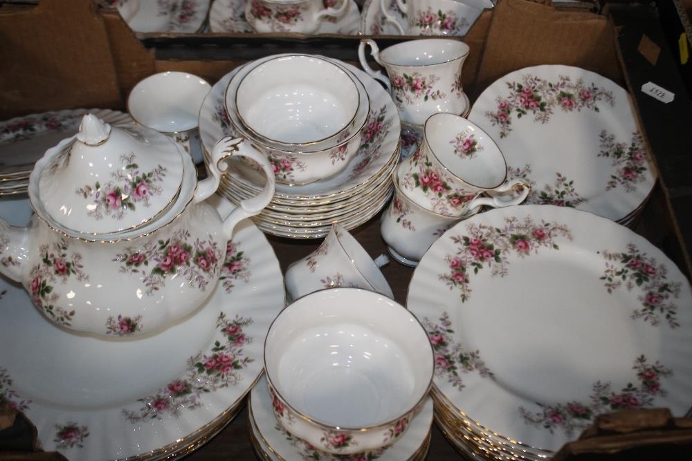 FOUR TRAYS OF MAINLY ROYAL ALBERT 'LAVENDER ROSE' TEA & DINNER WARE (NOT INCLUDING TRAYS)