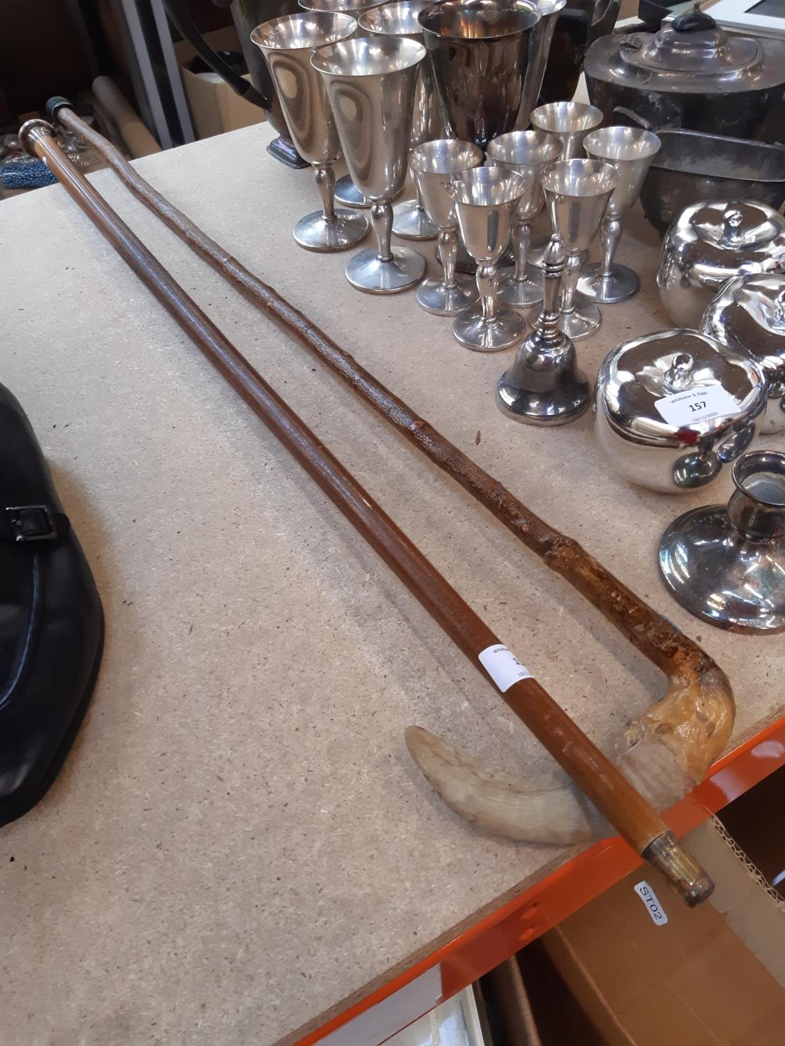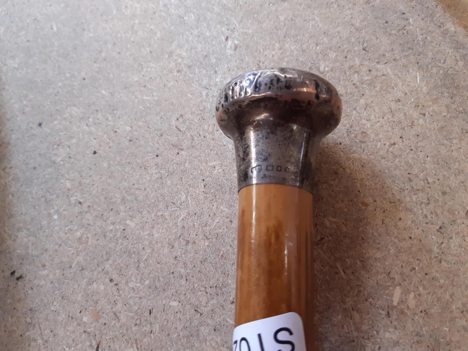 A hallmarked London silver topped walking cane and a horn handled walking stick