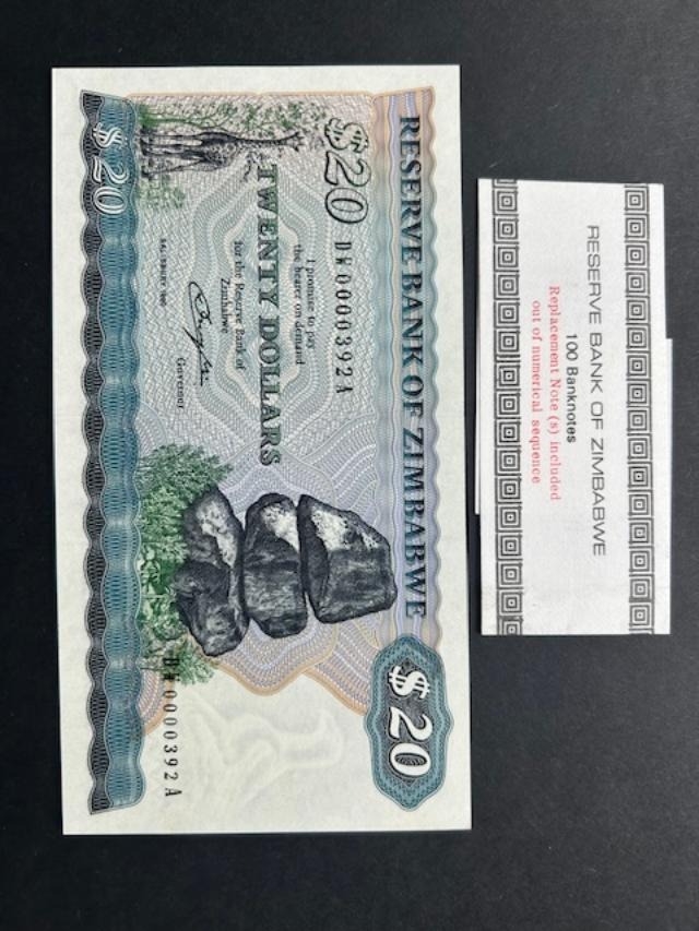 Banknotes - Zimbabwe 1980 $20, pristine uncirculated with wrapper, (1) (S)