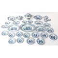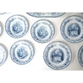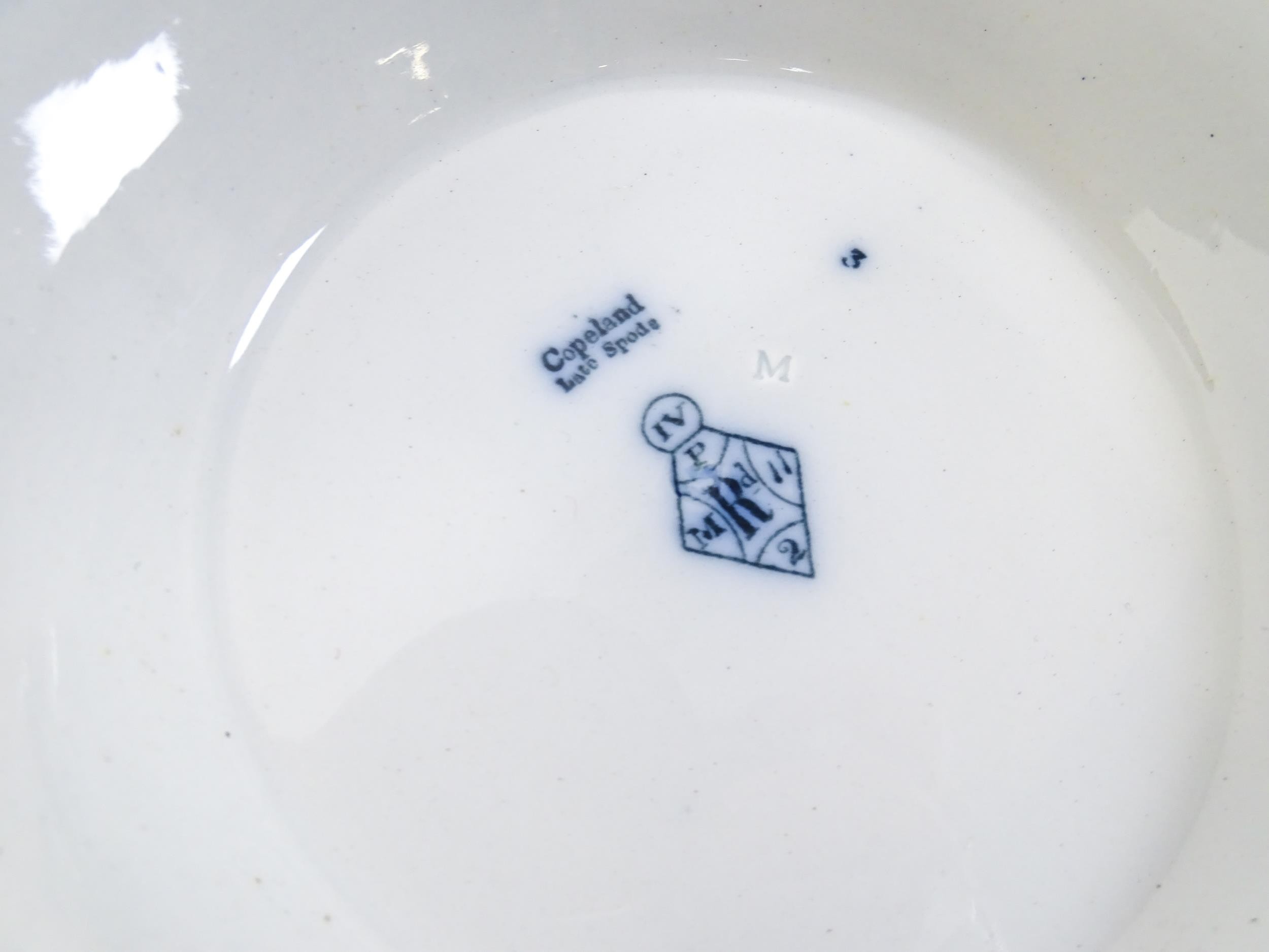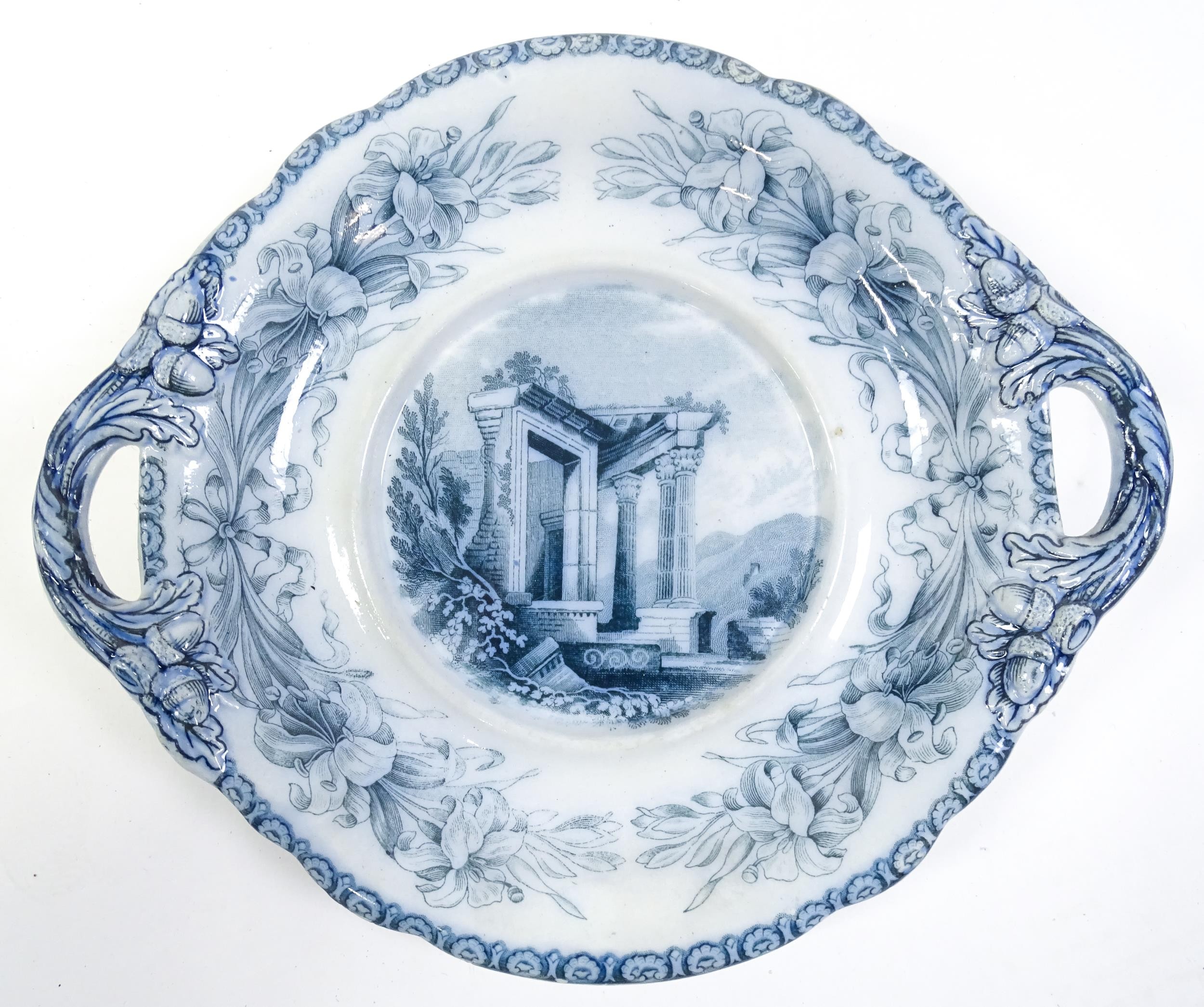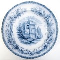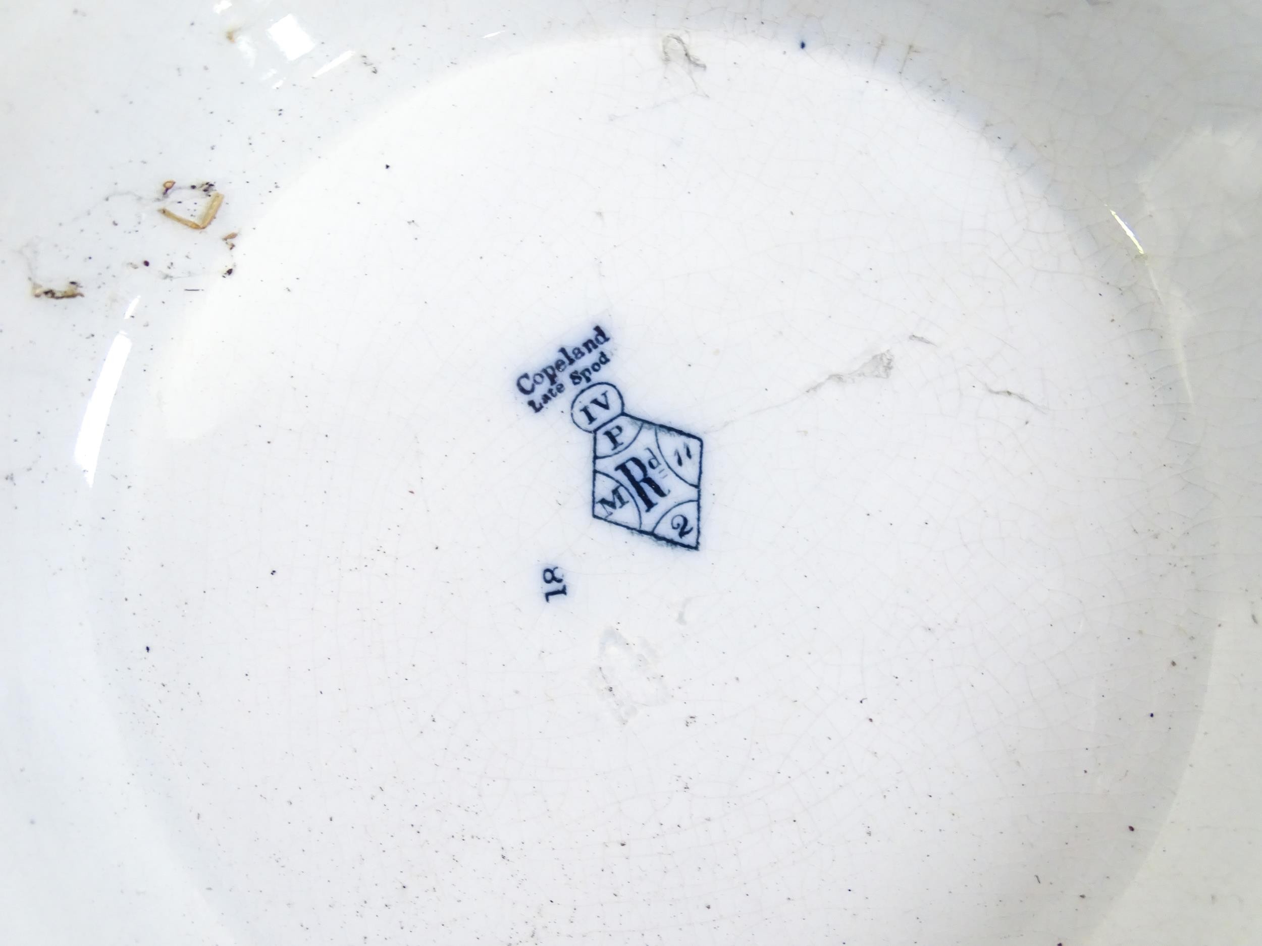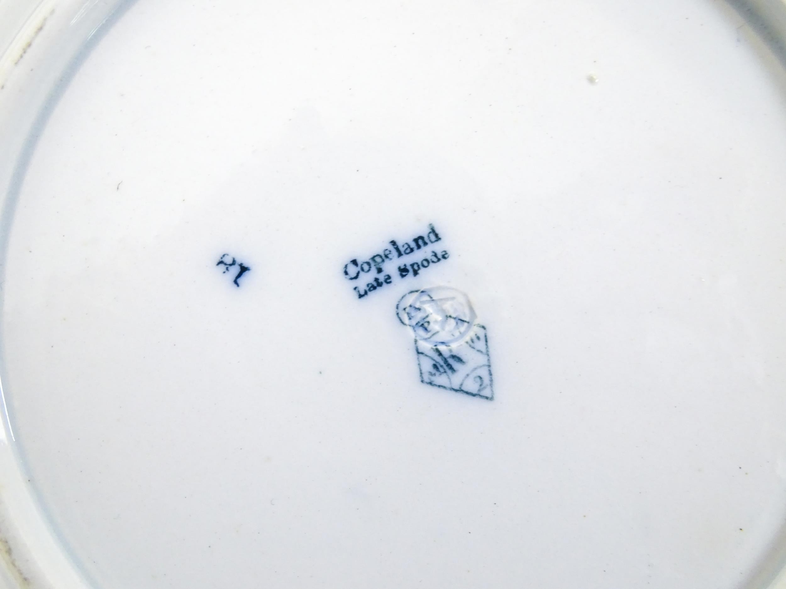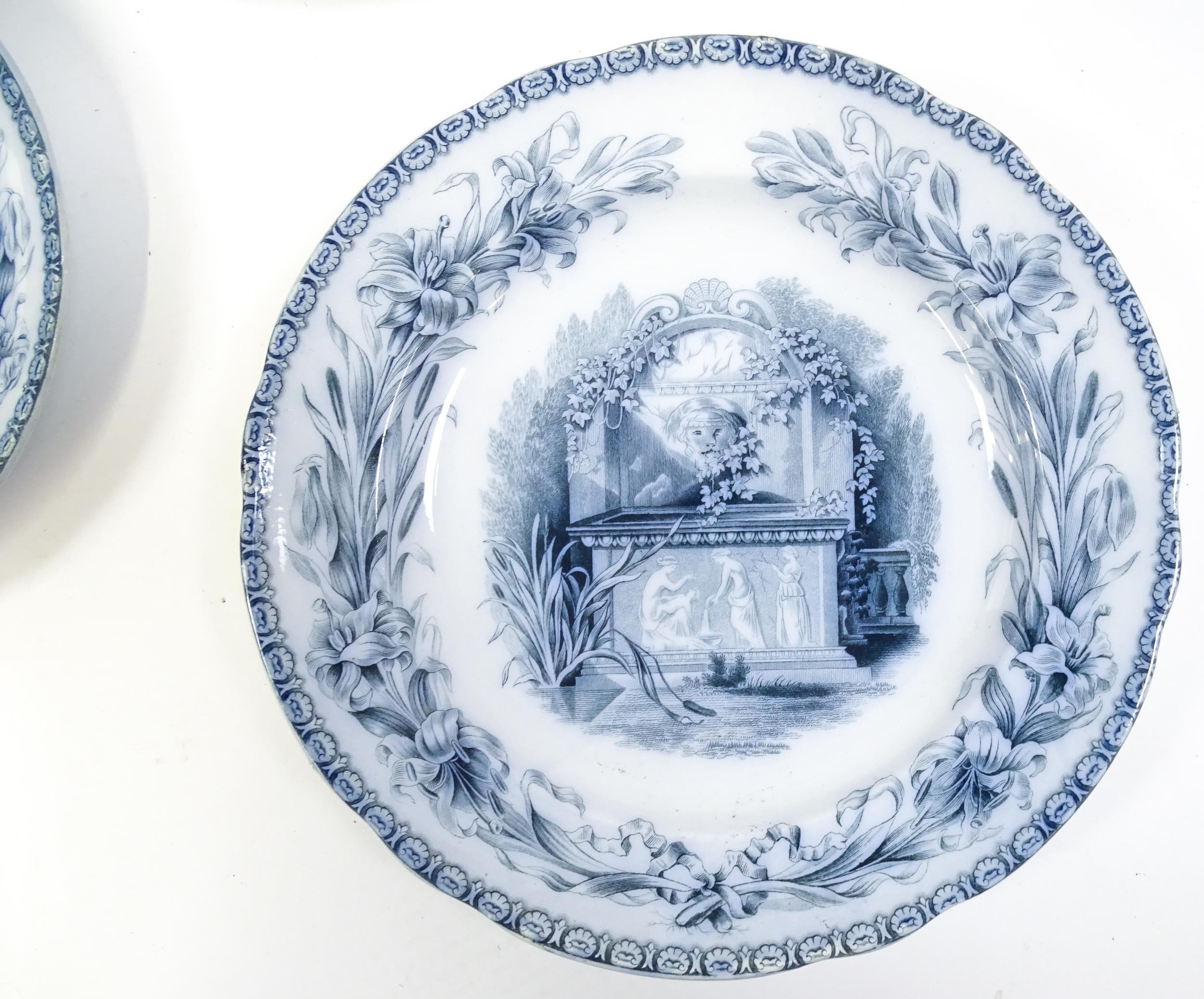 A quantity of Copeland late Spode blue and white dinner wares decorated with ruins to include plates, meat plates, serving dishes, tureens etc. Largest meat plate approx. 20 1/2" x 16"