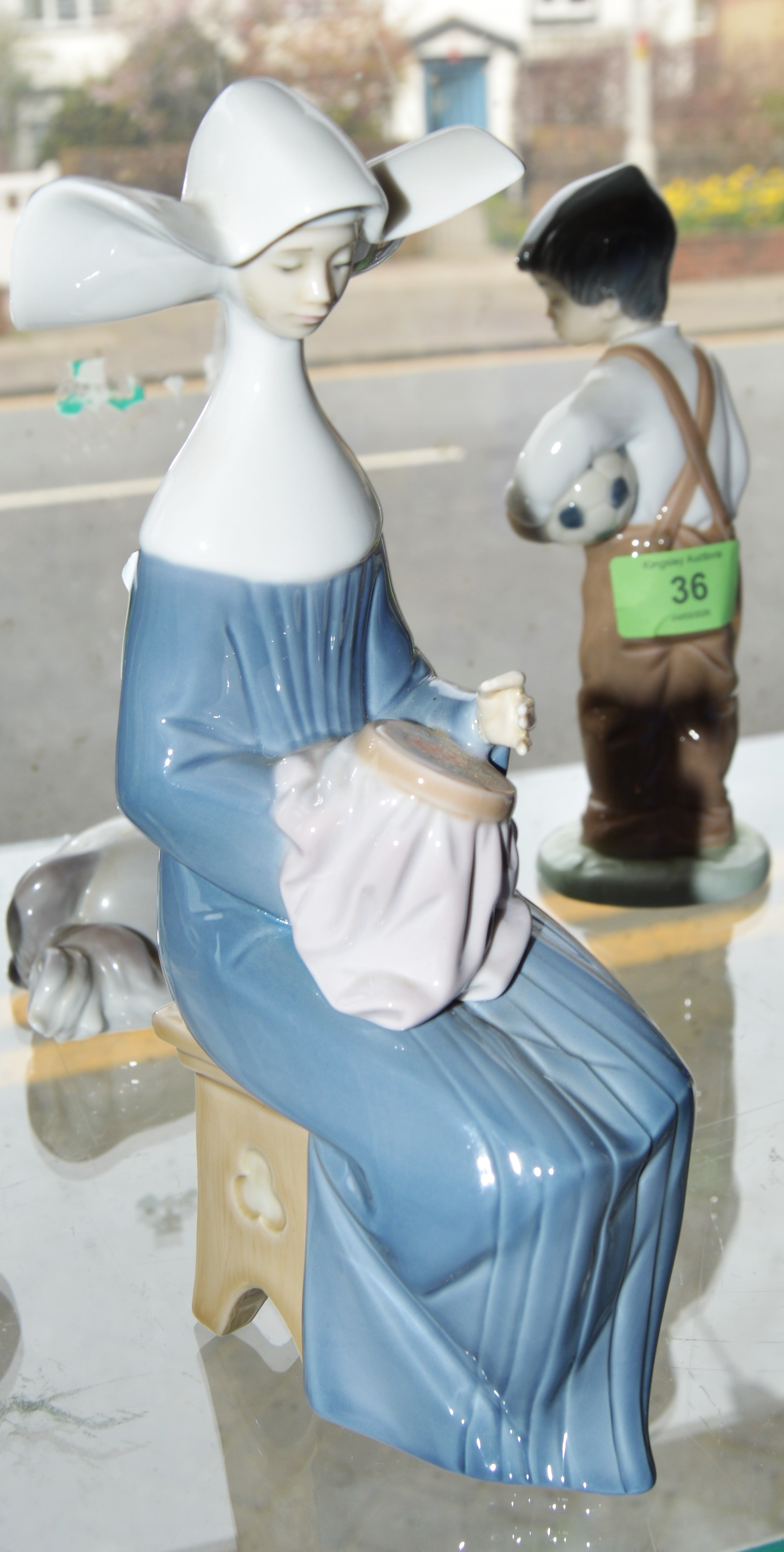 Lladro Figure - Nun with Embroidery - D-10 "Time to Sew" (1988-2004) Approx. 8.25" High
