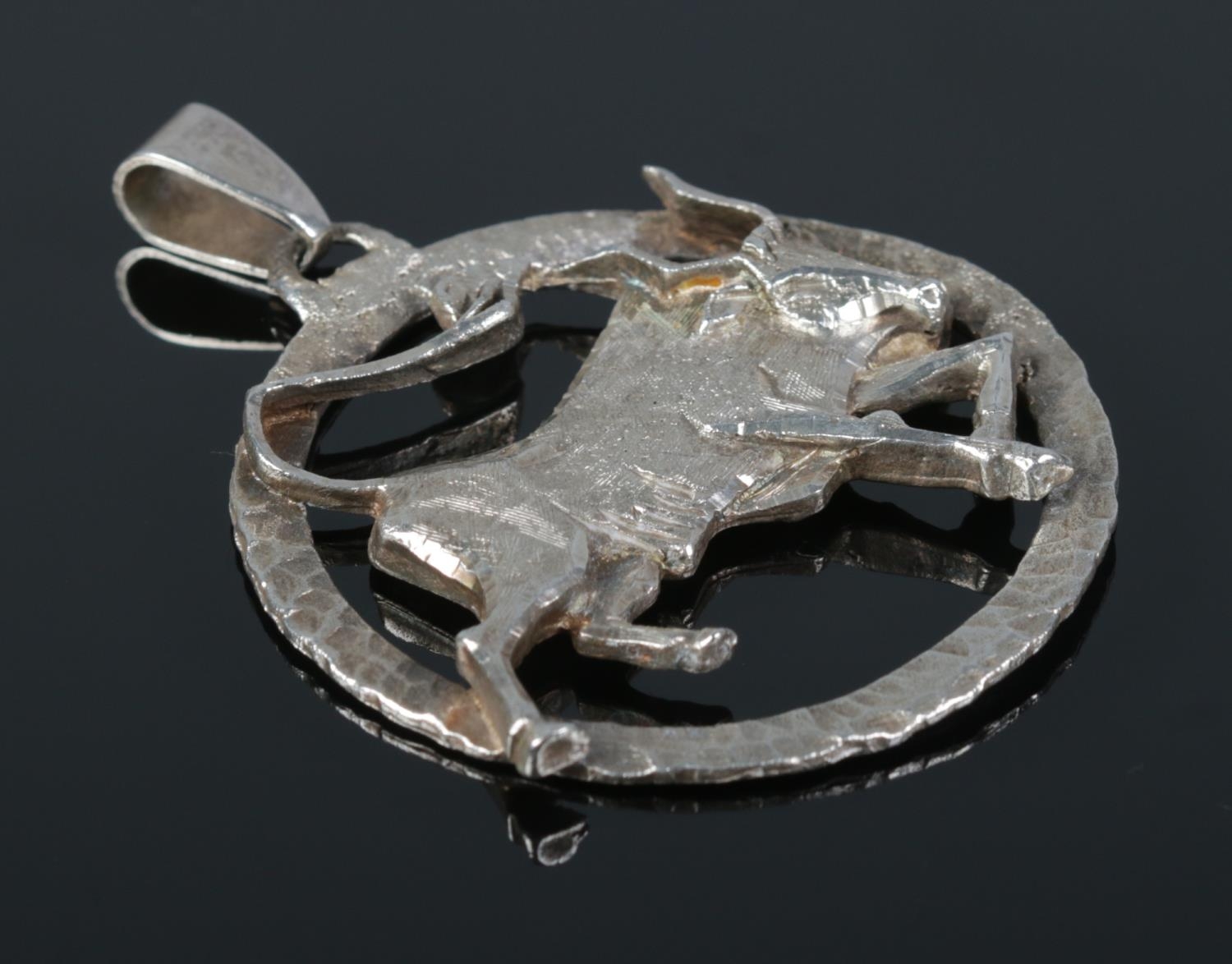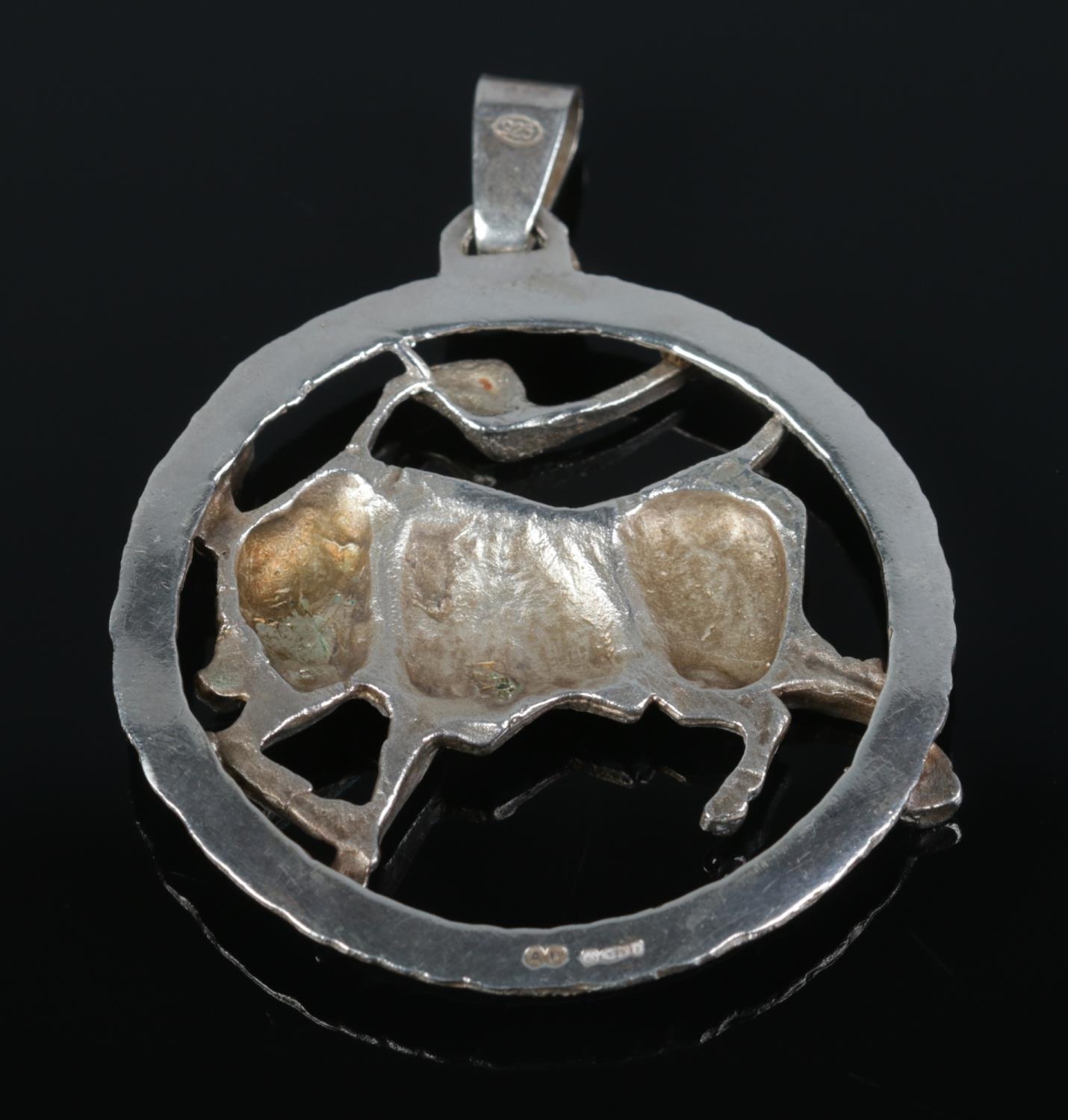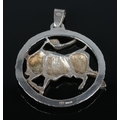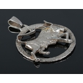 A silver pendant modelled as a bull/Taurus. 5cm x 5cm. 19.29g.