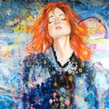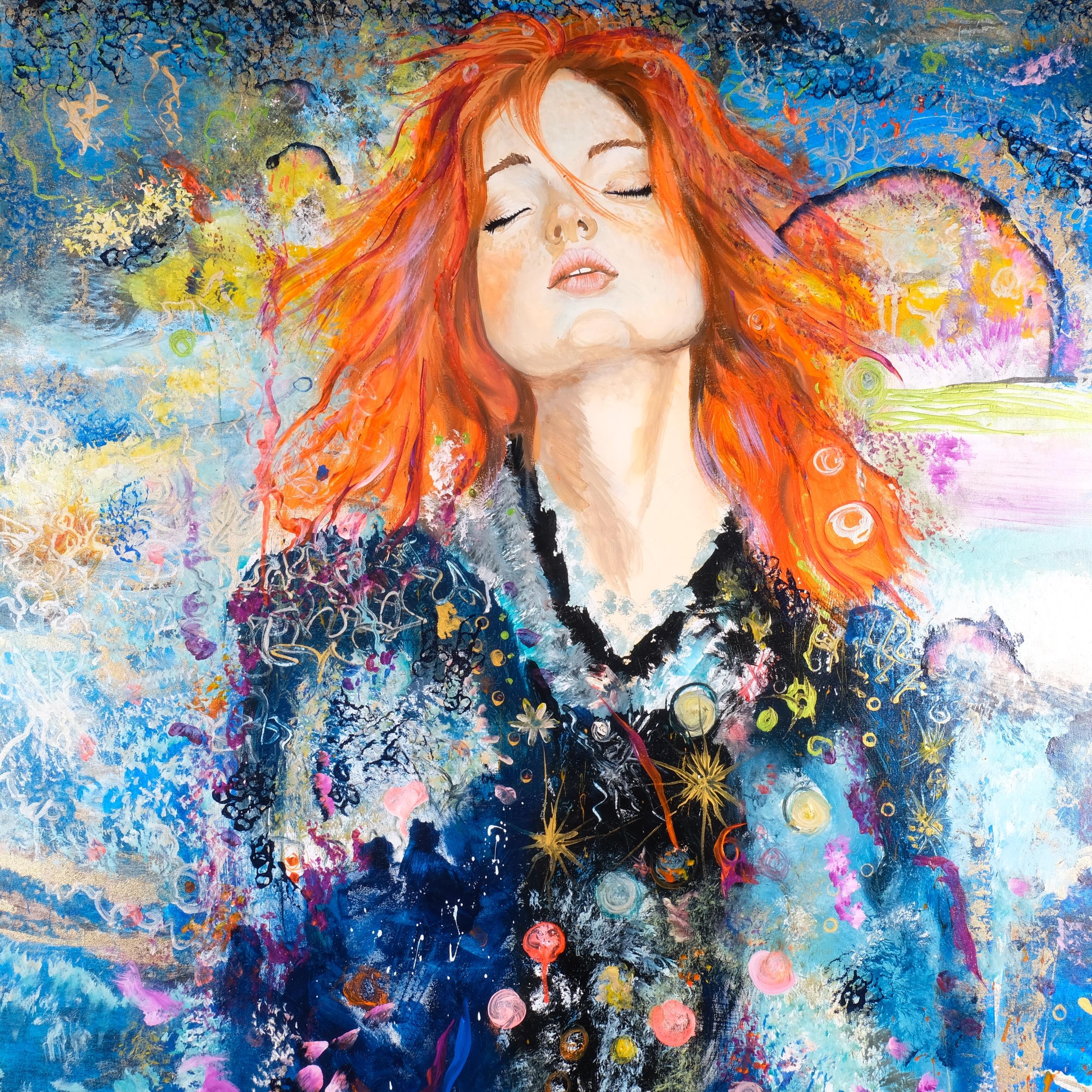 A large scale contemporary acrylic on canvas, study of a red haired girl, by Clive Fredriksson, 120cm x 90cm, unframed