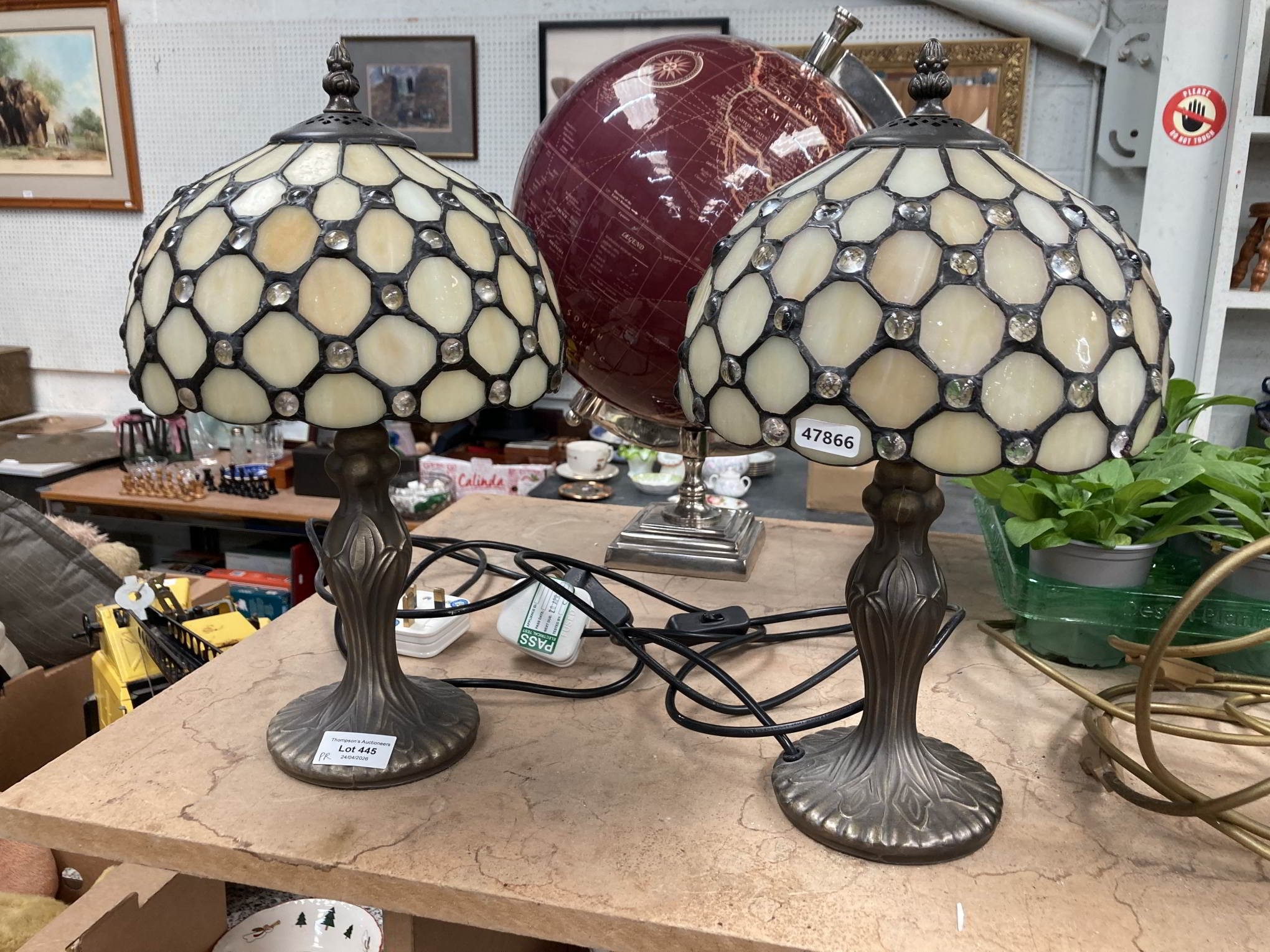 2 Maison Tiffany style table lamps with shades 37H