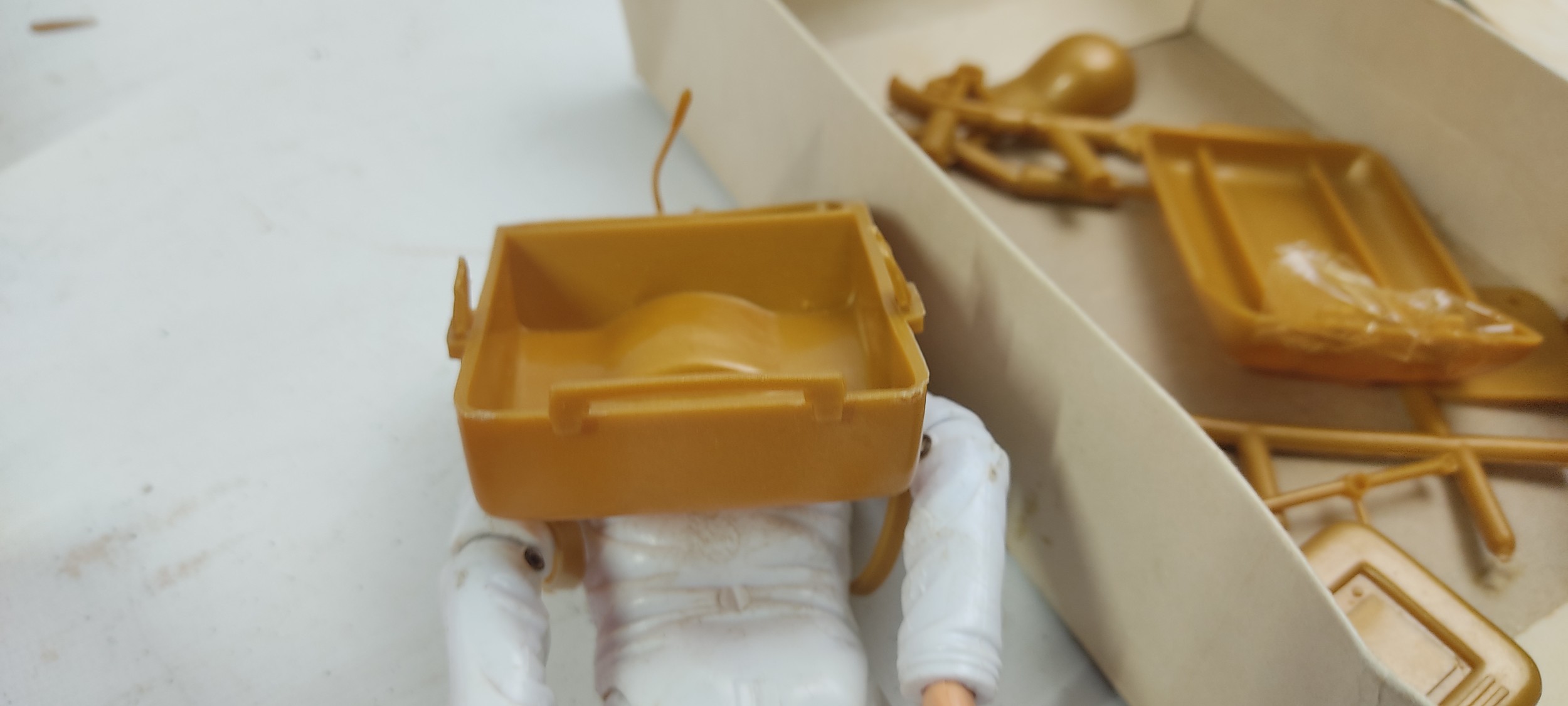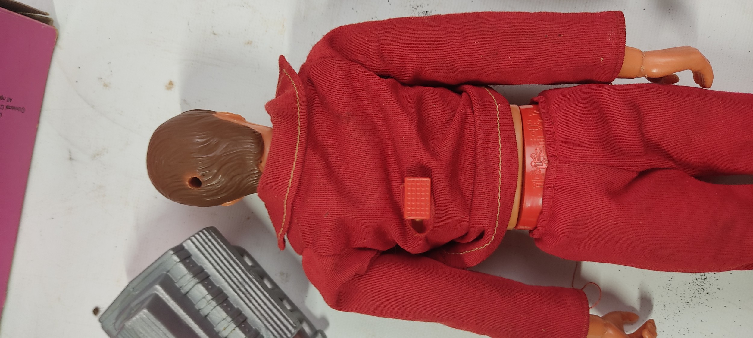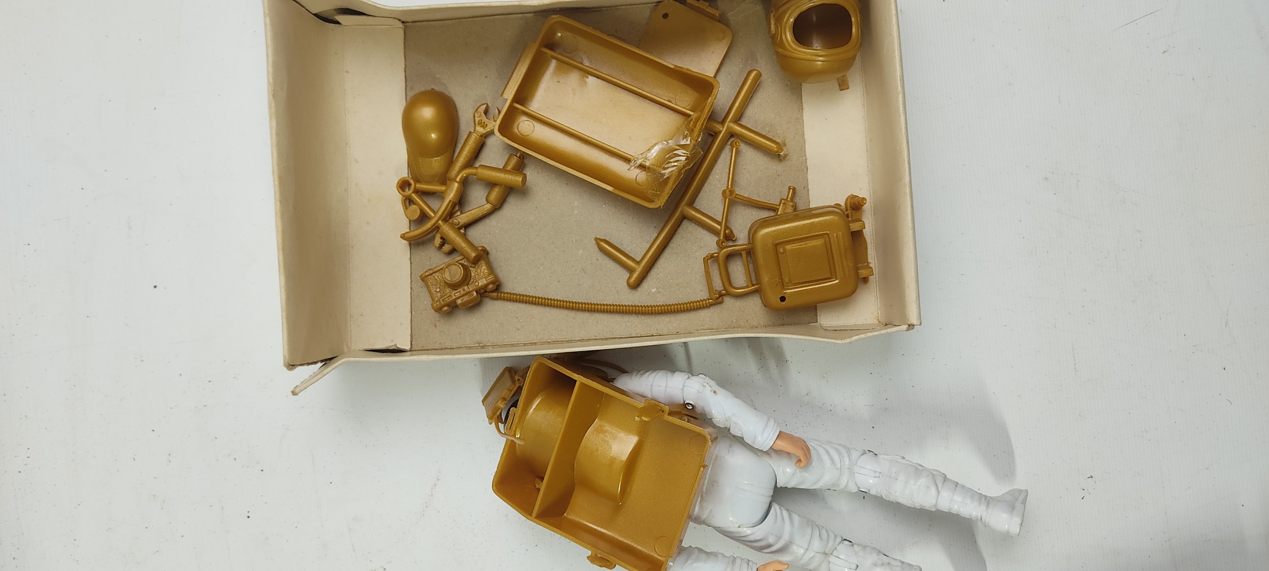 A vintage boxed Nasa Tours Kennedy Space Centre Florida toy figure and an original boxed Six Million Dollar Man figure by Dennys Fisher.