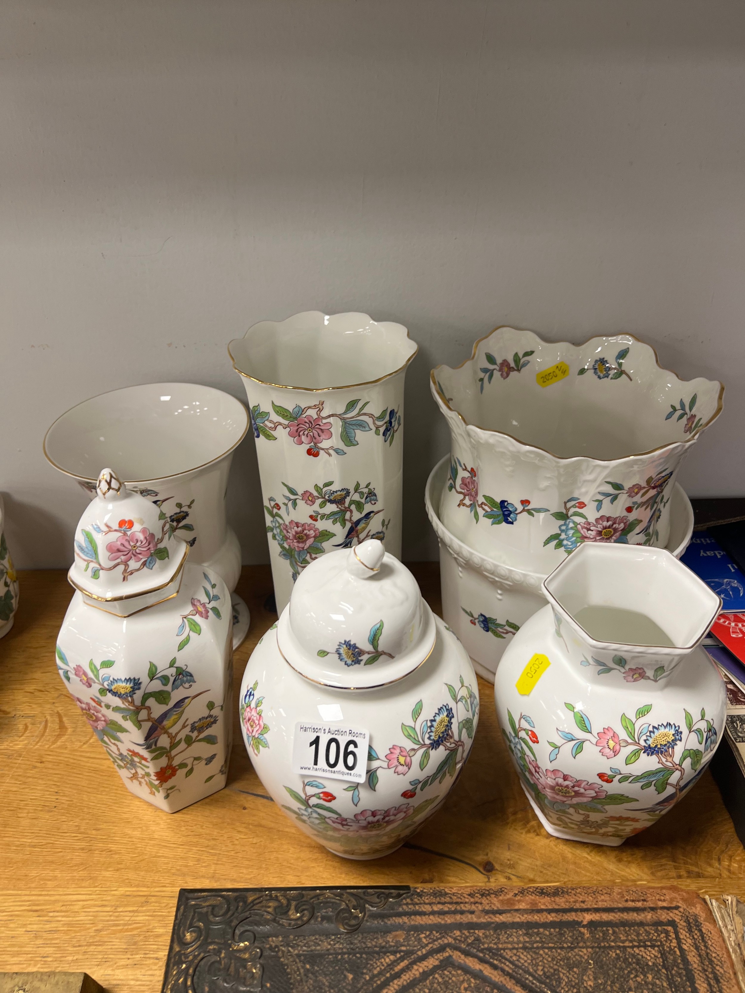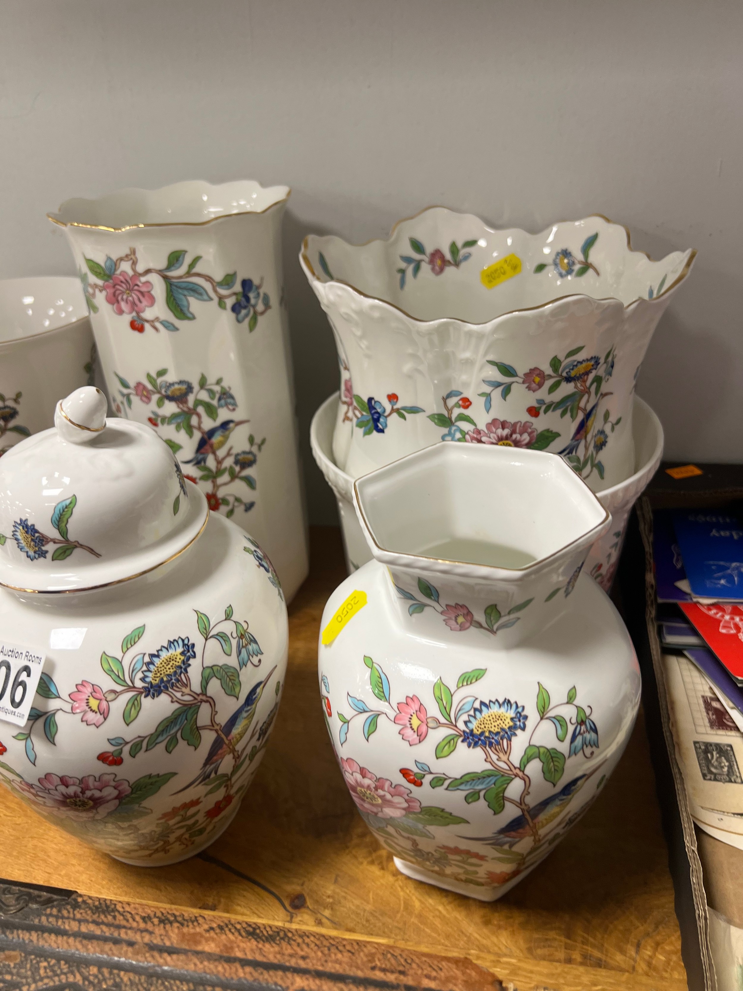 7 Aynsley vases, planters lidded pots