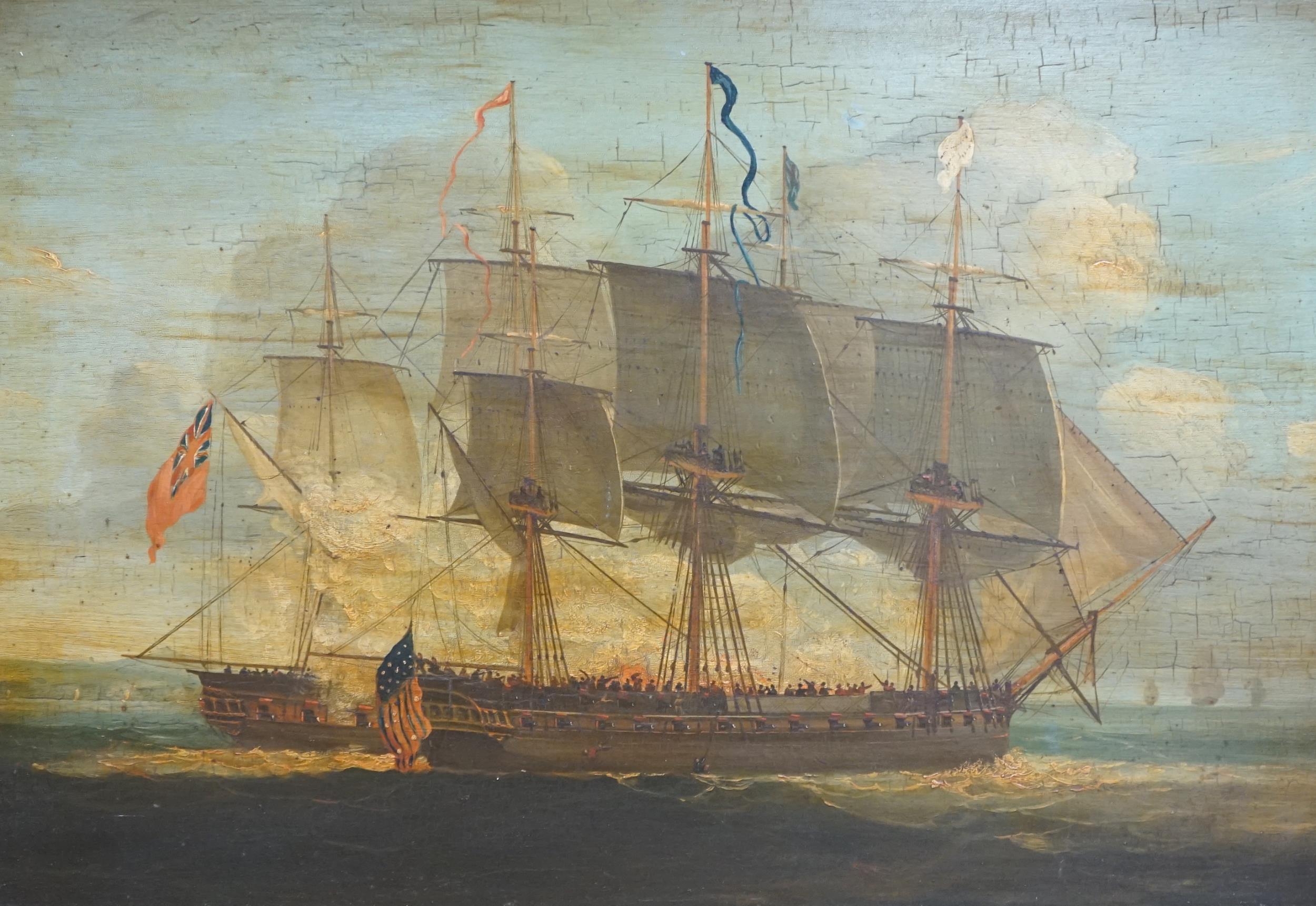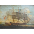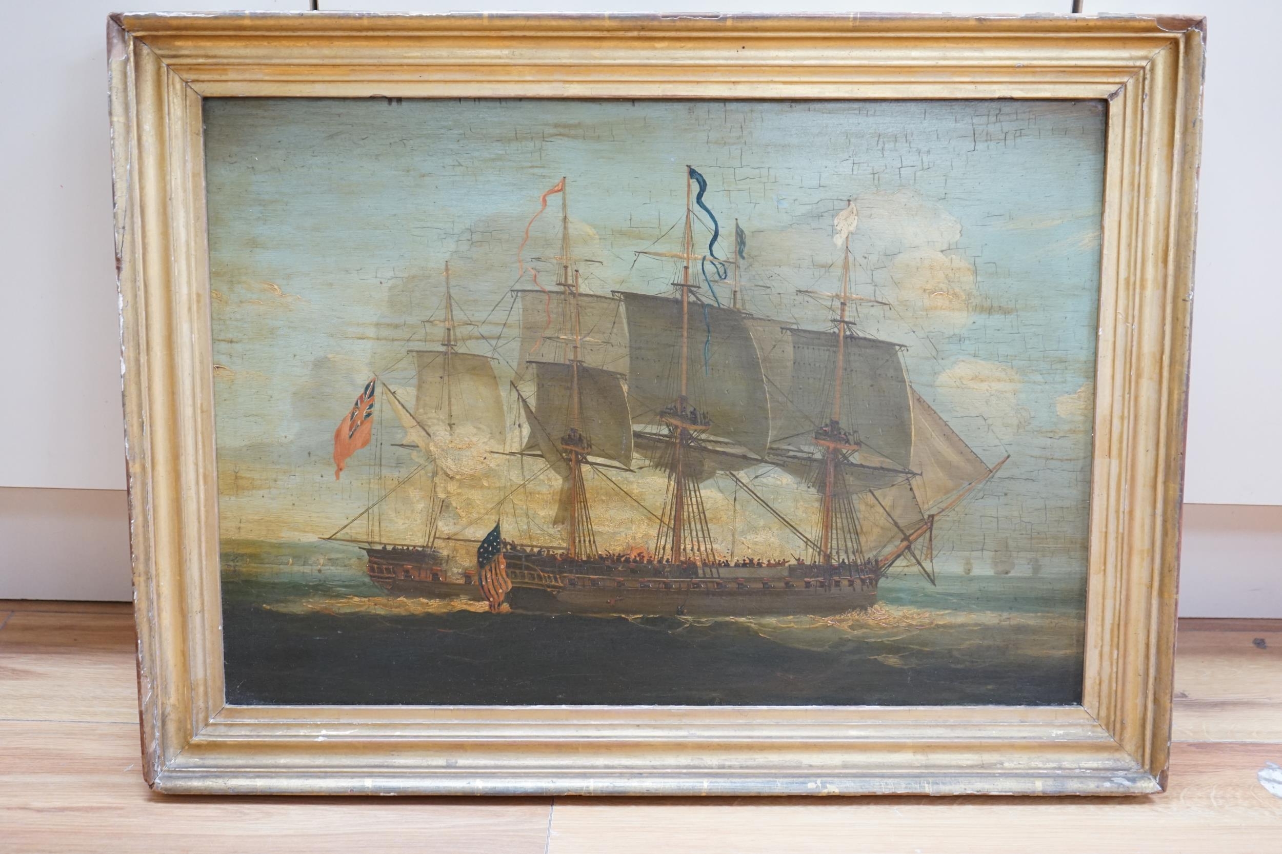 19th / 20th century English School, oil on board, captured Naval ship at sea, 41 x 59cm