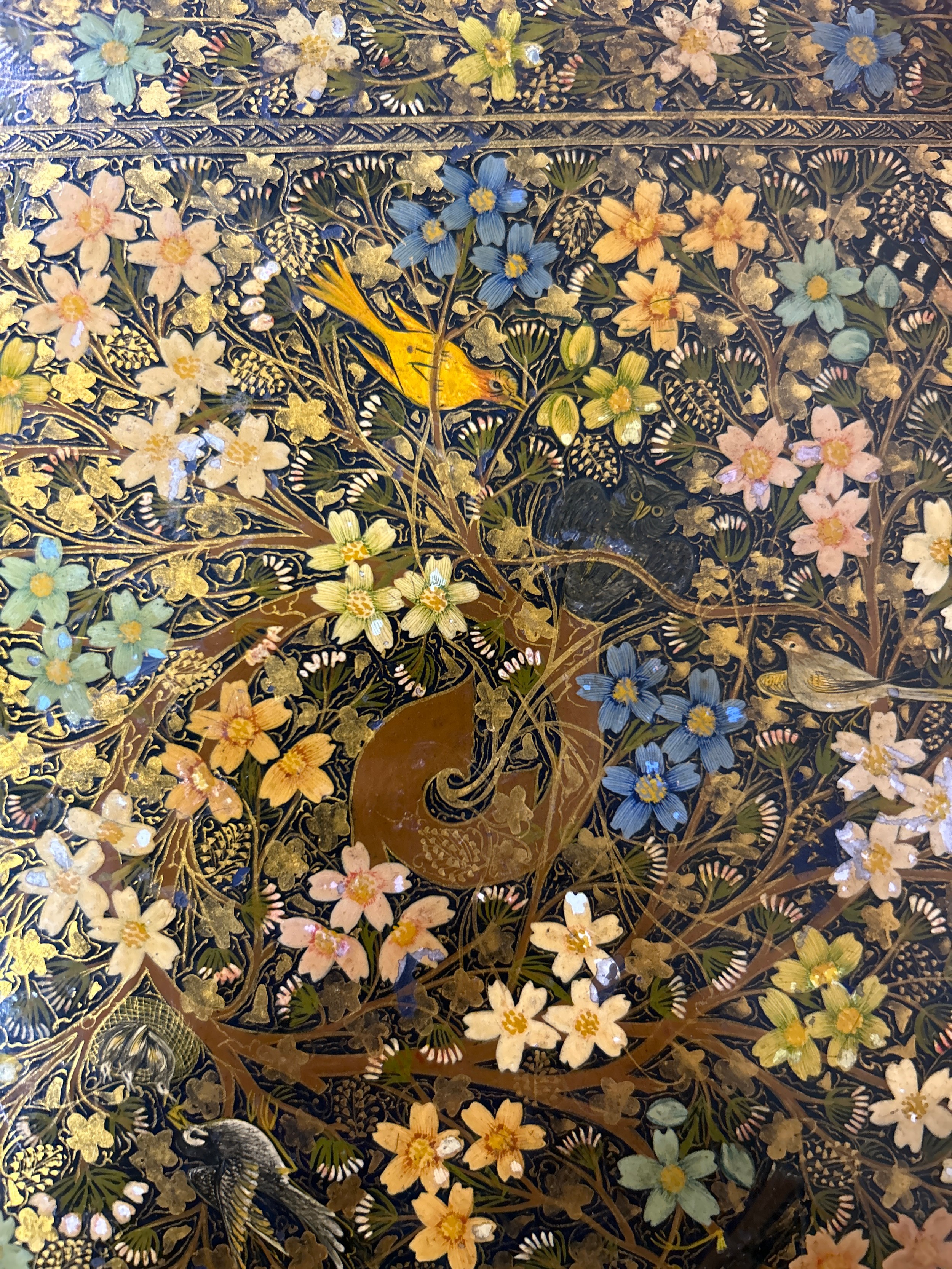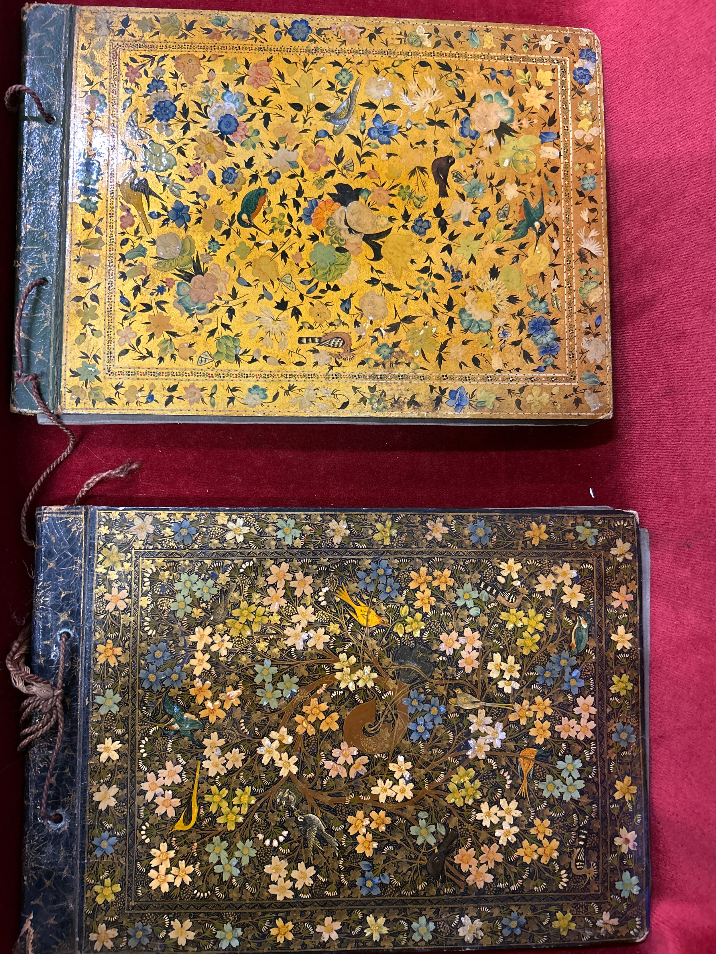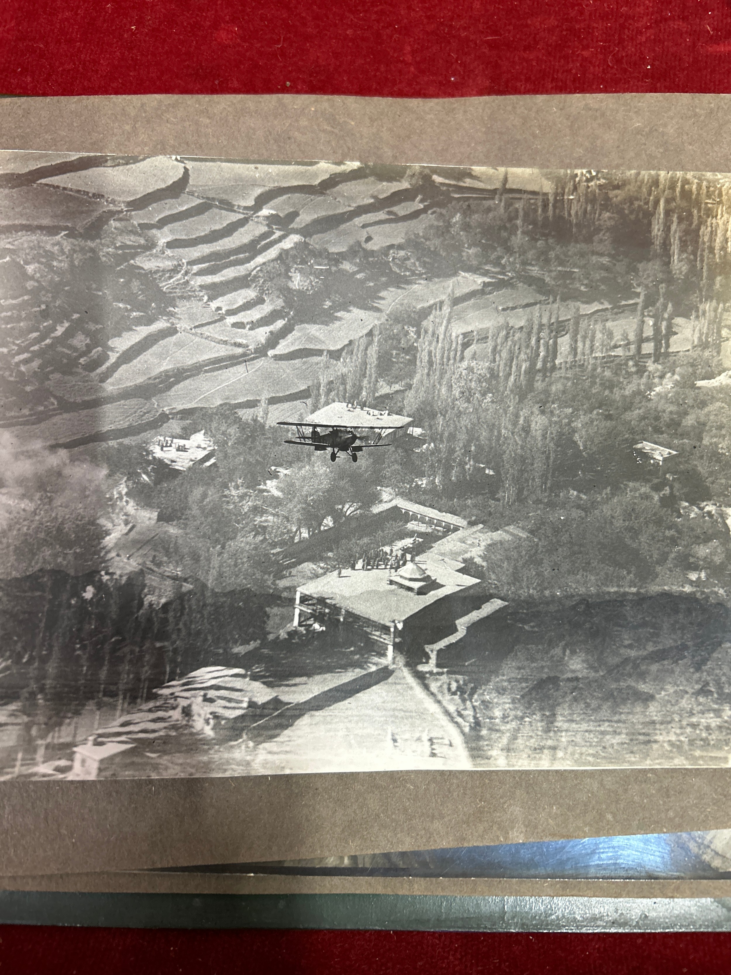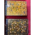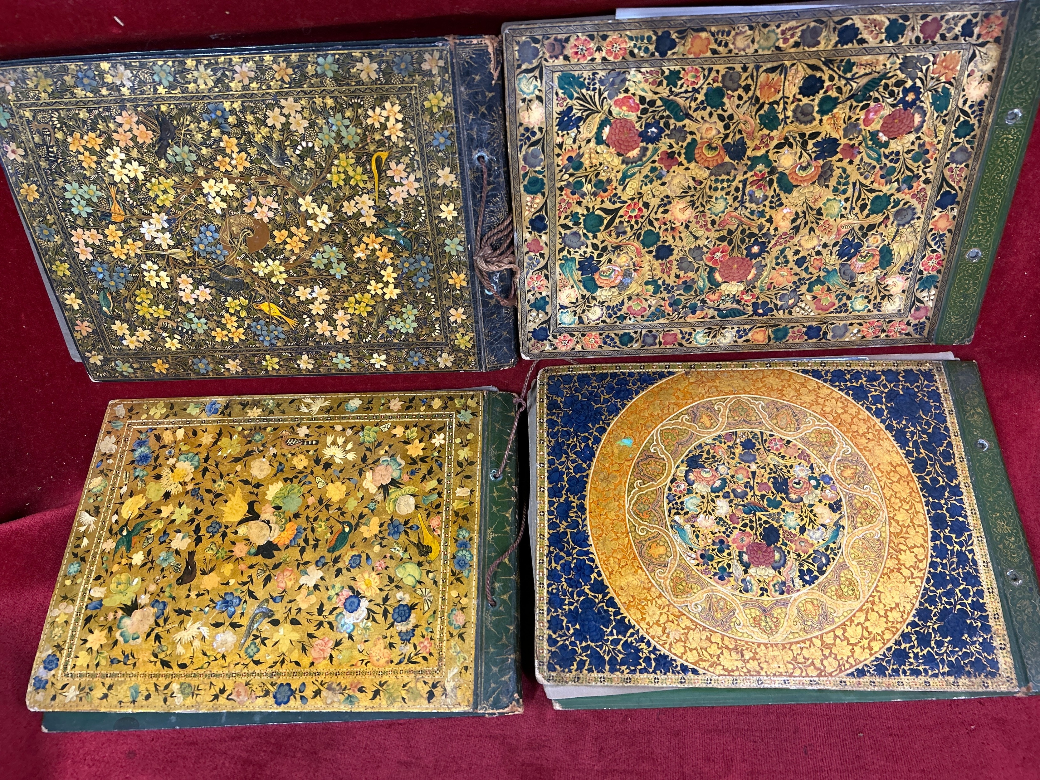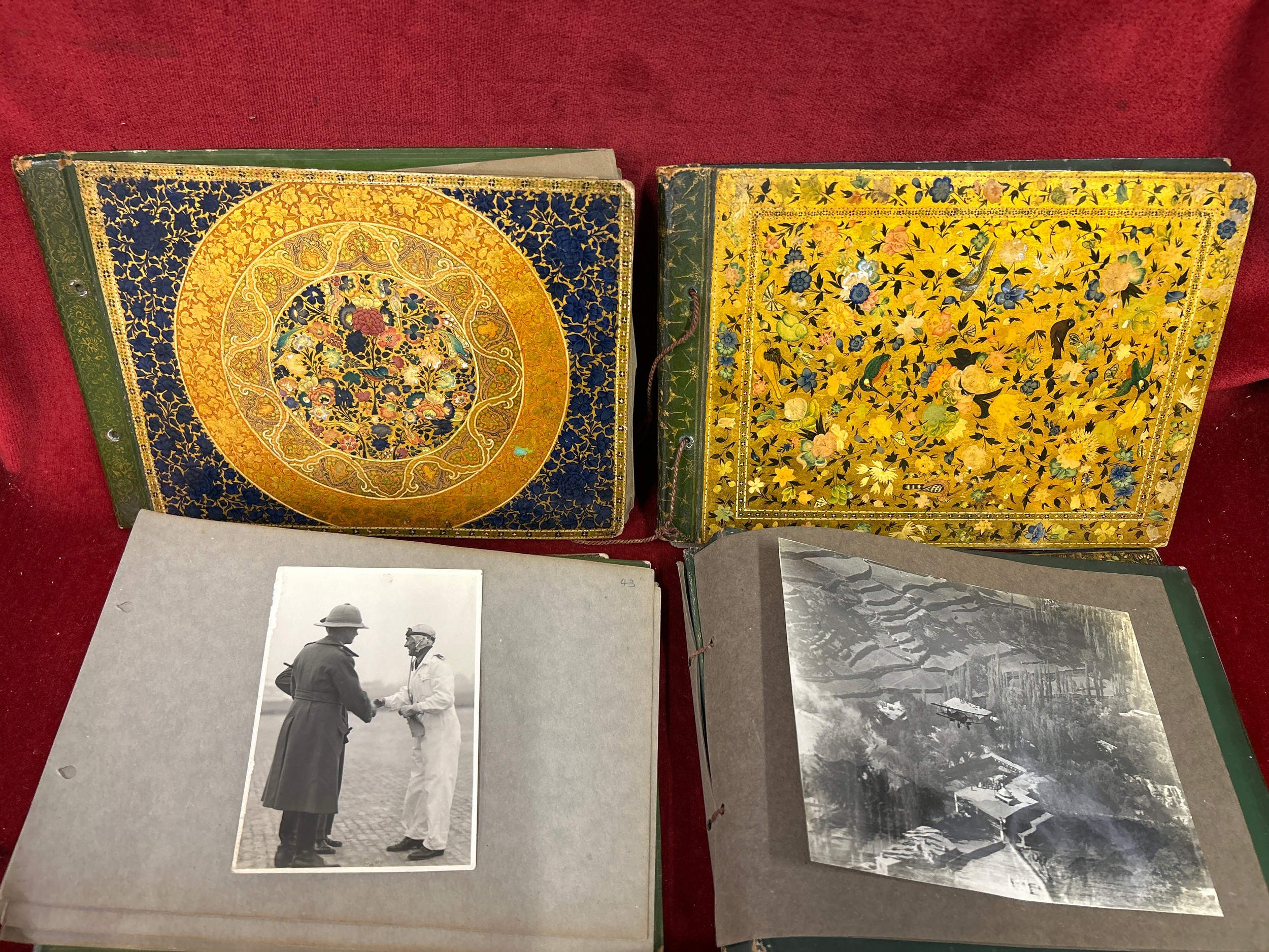 An important and interesting group of four early 20th Century Srinagar Kashmir Lacquer (Papier Mache) photograph albums with contents of photographs from British India pre Independence and the same family in the United Kingdom. The covers hand decorated and lacquered with detailed images of birds & foliage. Exquisite workmanship and transcribed on the inner covers "Made by Ganemede, Srinigar, Kashmir, India". The photographs include aircraft for transporting the family to Gilgit, north of Kashmir and of historic flights in 1932 across the Himalayas. Also photographs of the family in India and United Kingdom. The fronts of the albums have papers transcribed with details of the photographs, for example “Arrival at Gilgit: I think father must have gone on this historic flight, otherwise why all the photographs?”
