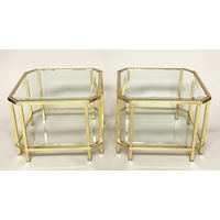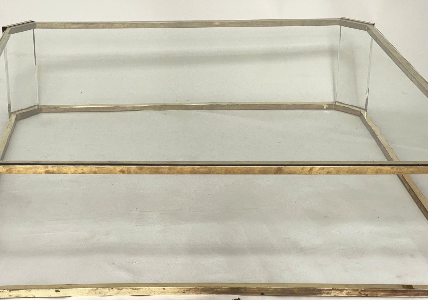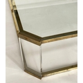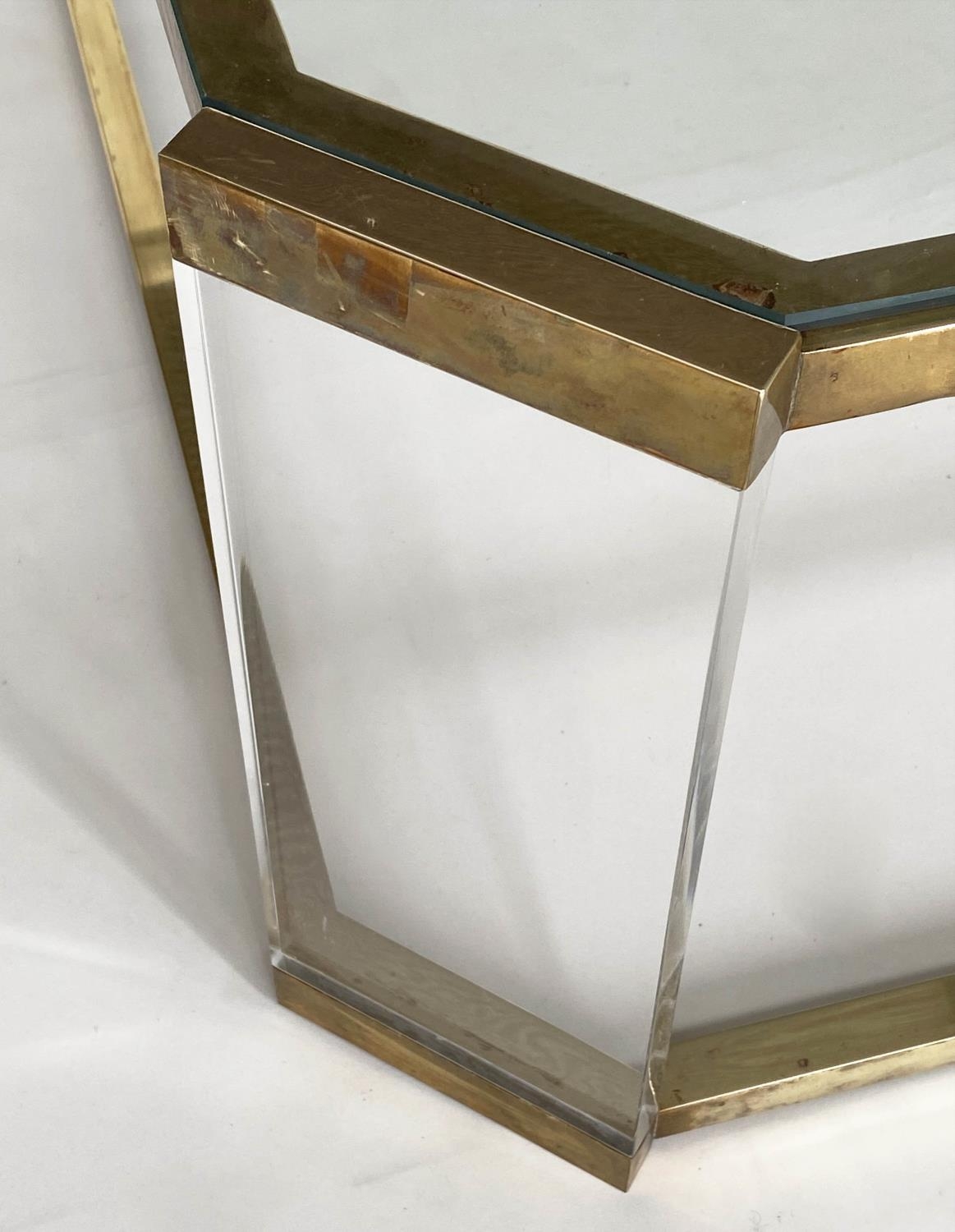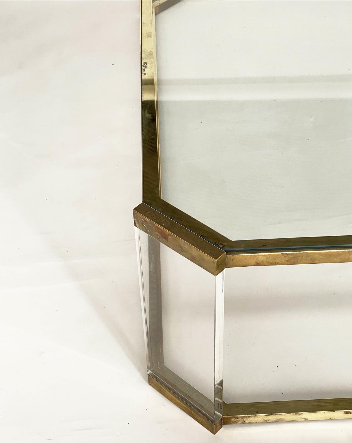 LOW TABLE, 1970's French octagonal glazed brass framed and lucite supports, 153cm x 153cm x 40cm H.