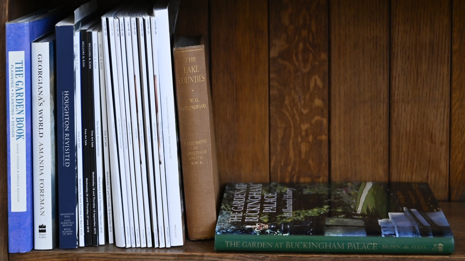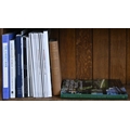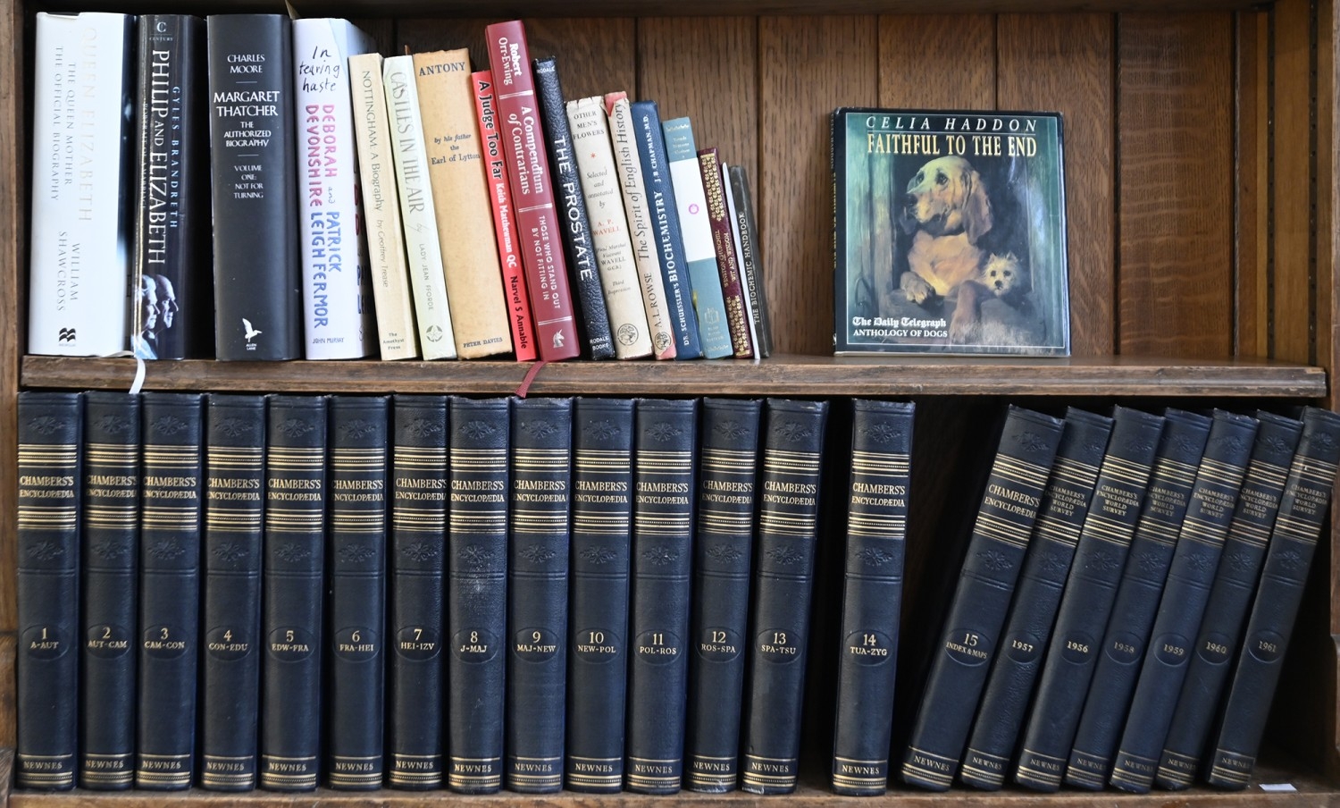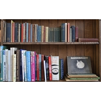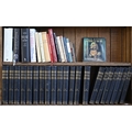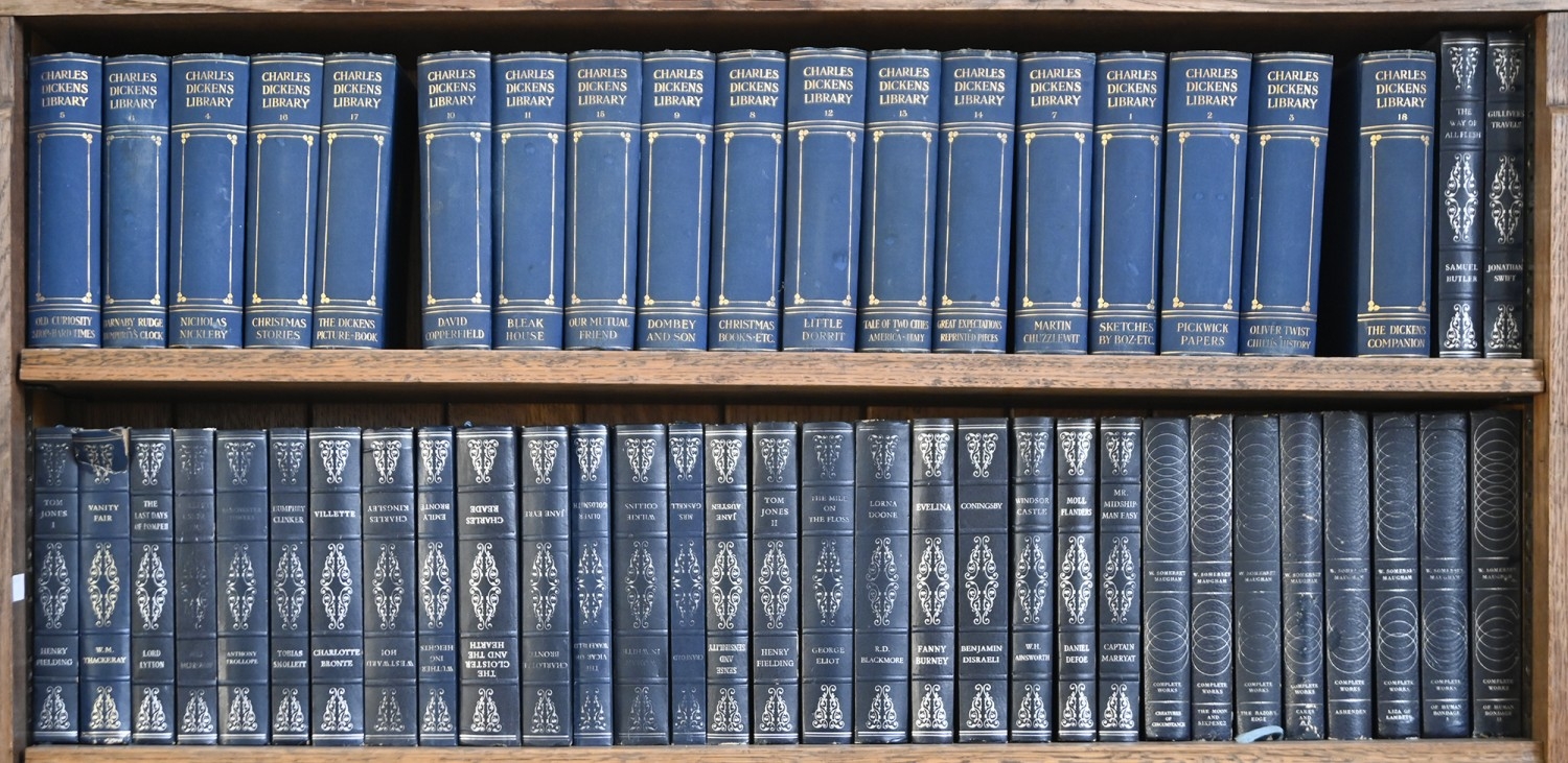 Books. Five shelves of general stock, 20th c, including Chamber's Encyclopaedia; The Charles Dickens Library, decorative blue cloth gilt bindings; etc