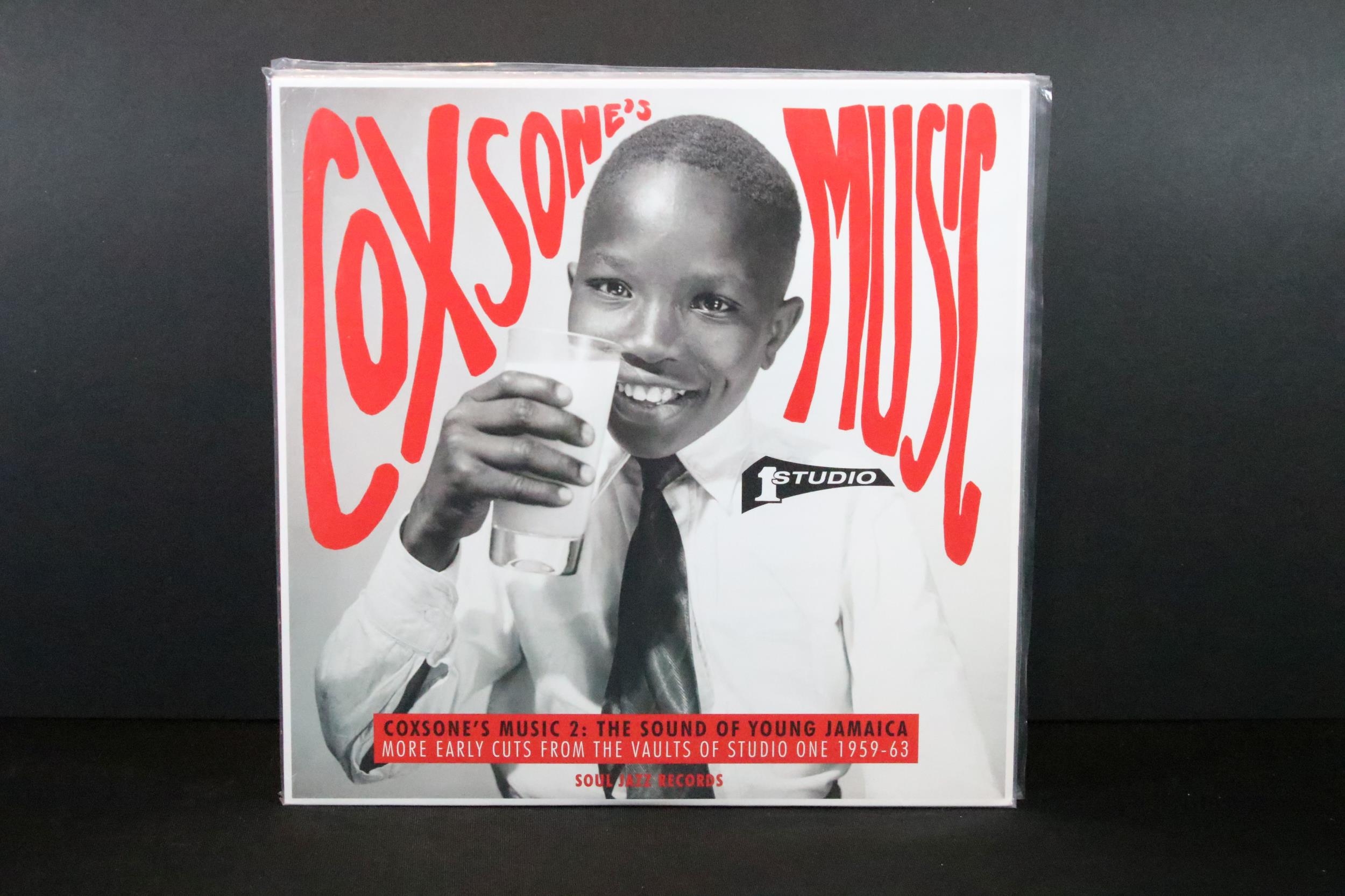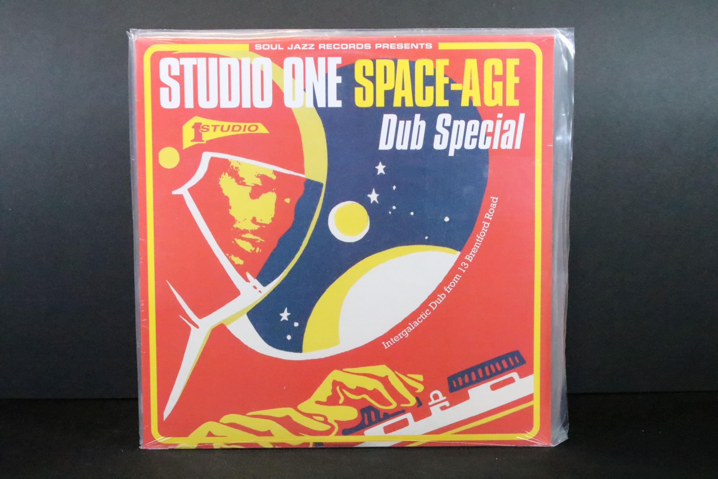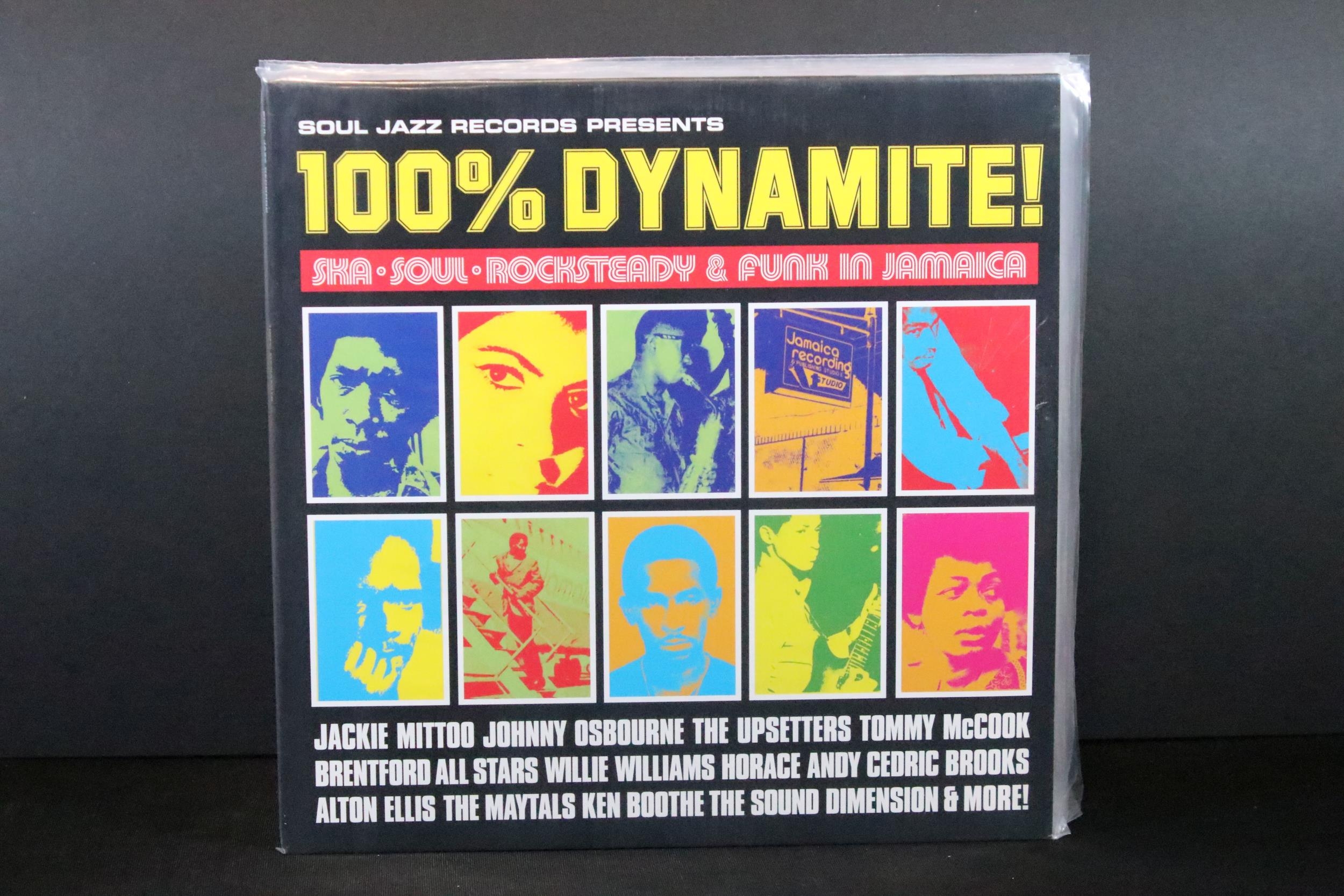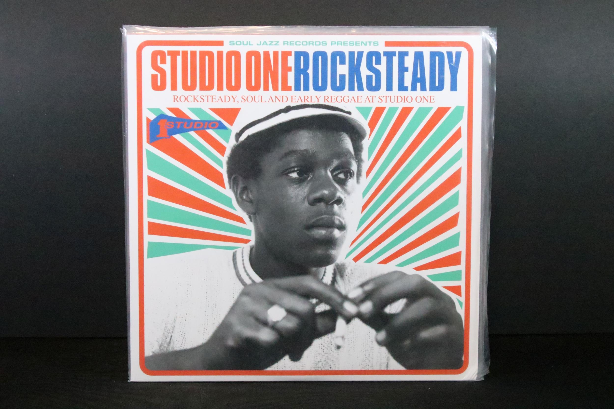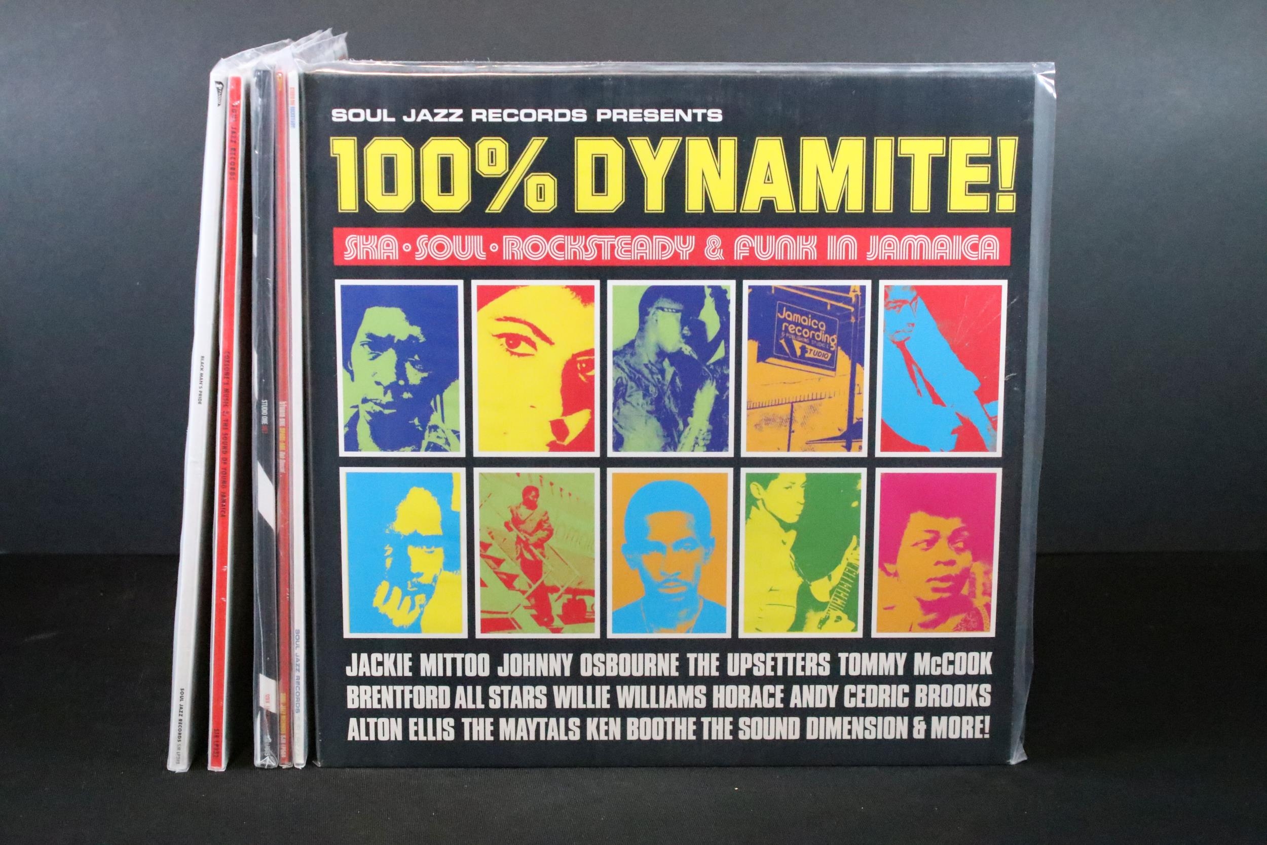 Vinyl - 6 Reggae LPs on Soul Jazz Records to include Rocksteady (SJR LP277), Space Age Pub Special (SJR LP504), 007 (SJR LP515), Coxsone's Music 2 (SJR LP332), Black Mum's Pride (SJR LP398), 100% Dynamite (SJR LP321). All sealed or unplayed