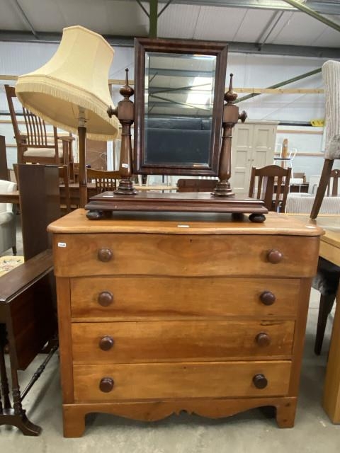 Victorian pine 4 drawer chest 86H 98W 45D and a Victorian mahogany dressing table mirror