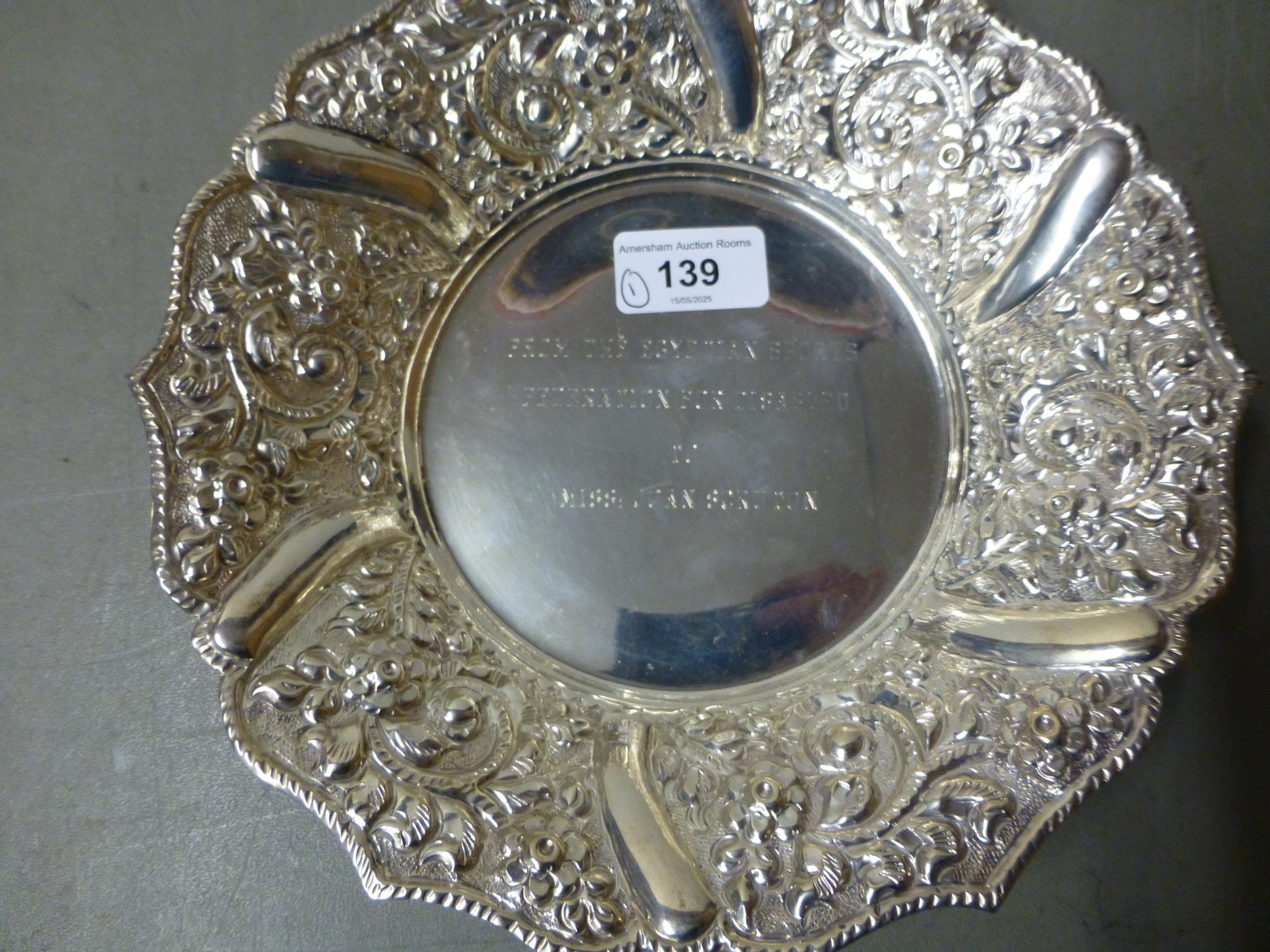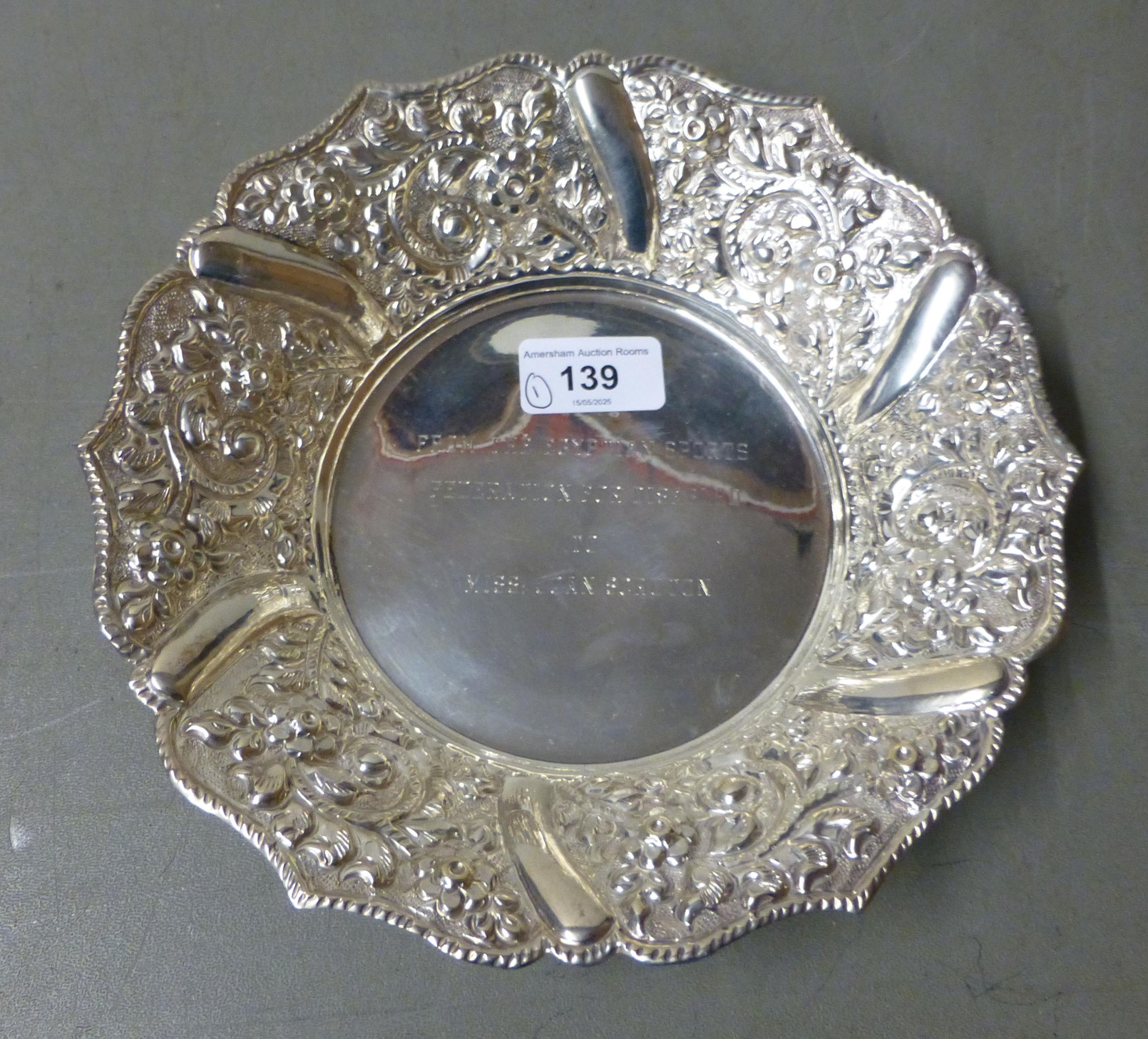 A white metal presentation dish 8.5"dia (approx. 243grms)