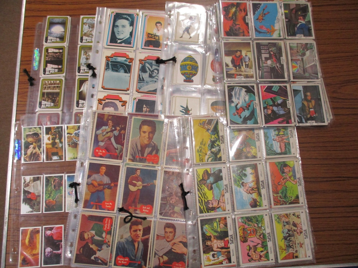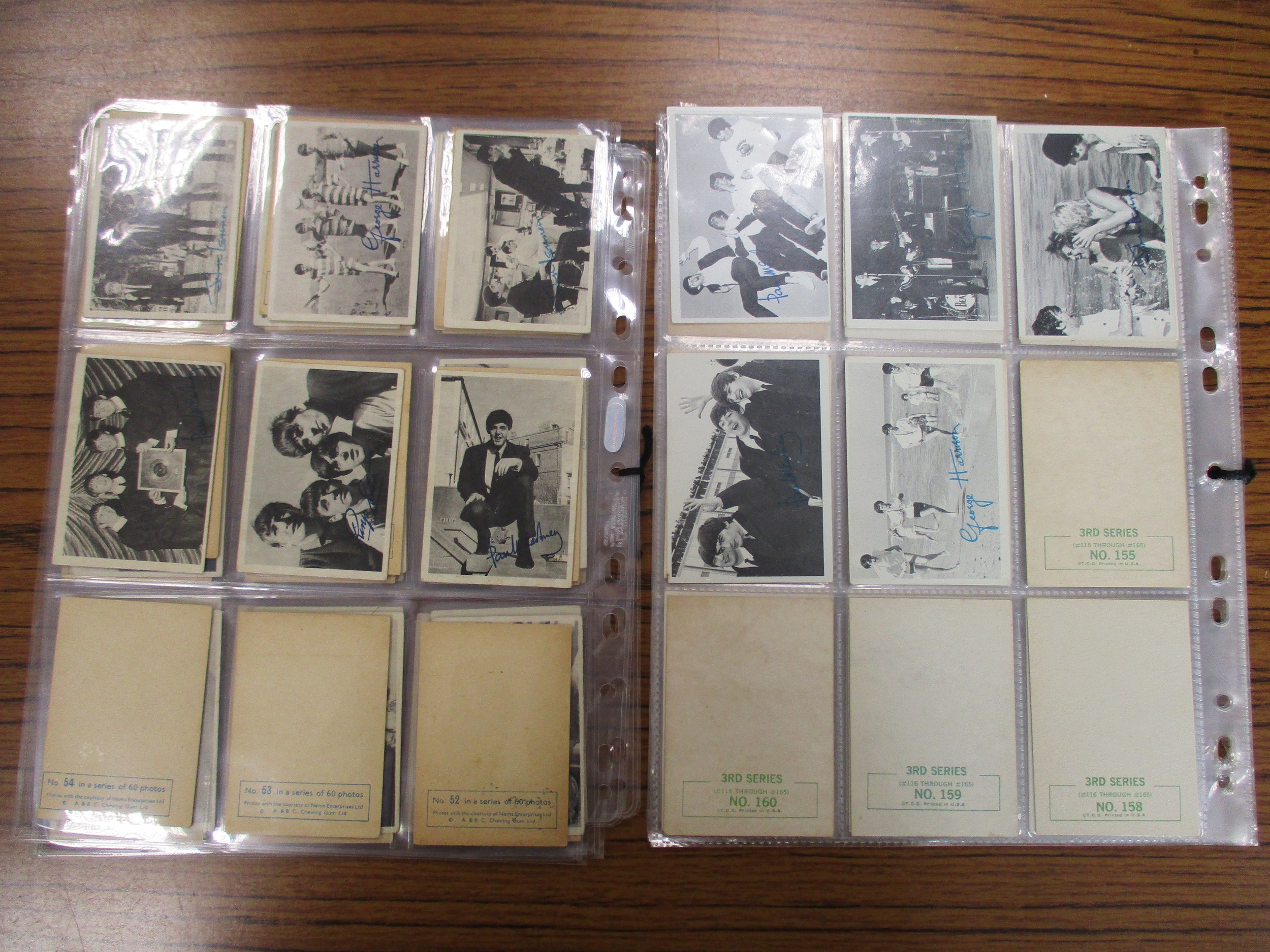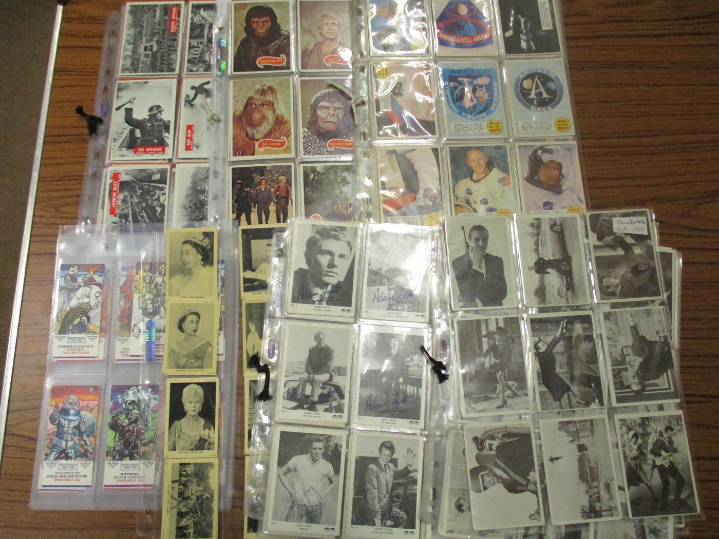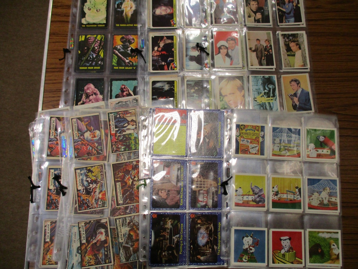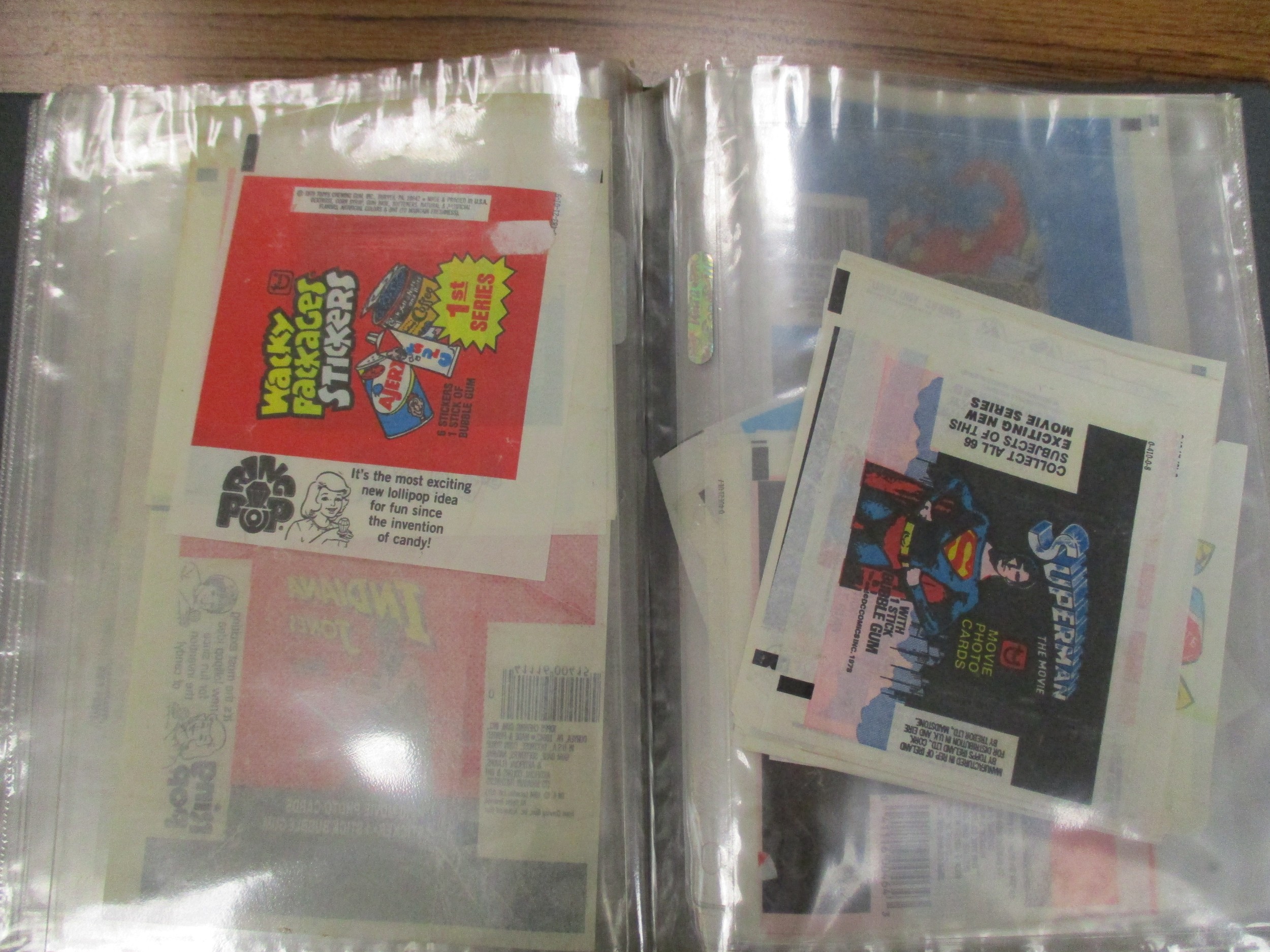Collection of complete and part sets in plastic sleeves including A & B.C Batman pink back, Beatles ranges, Civil War News, Anglo Confectionary Captain Scarlett, Bubbles Inc Outer Limits, Somportex James Bond 007 Thunderball complete sets, Thunderbirds (B&W both sizes with one set incomplete), Topps Beatles Series 3, etc, plus wax gum wrappers, generally good plus packaging. Qty 1,800 approx (B)
