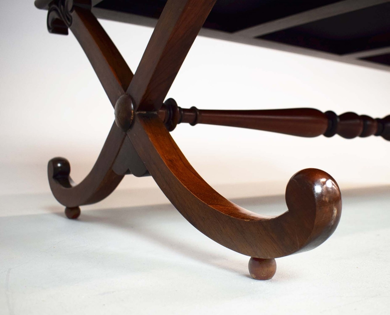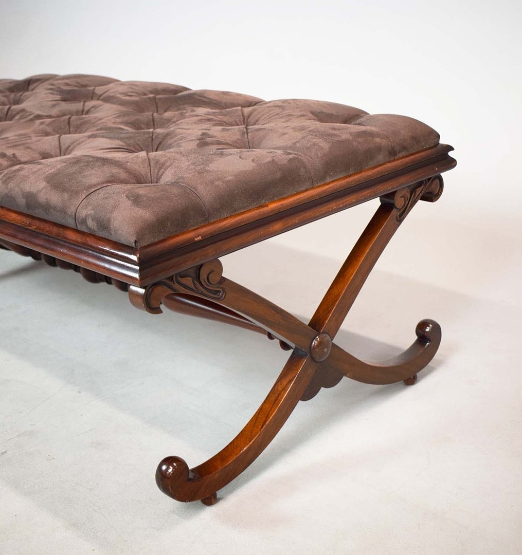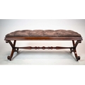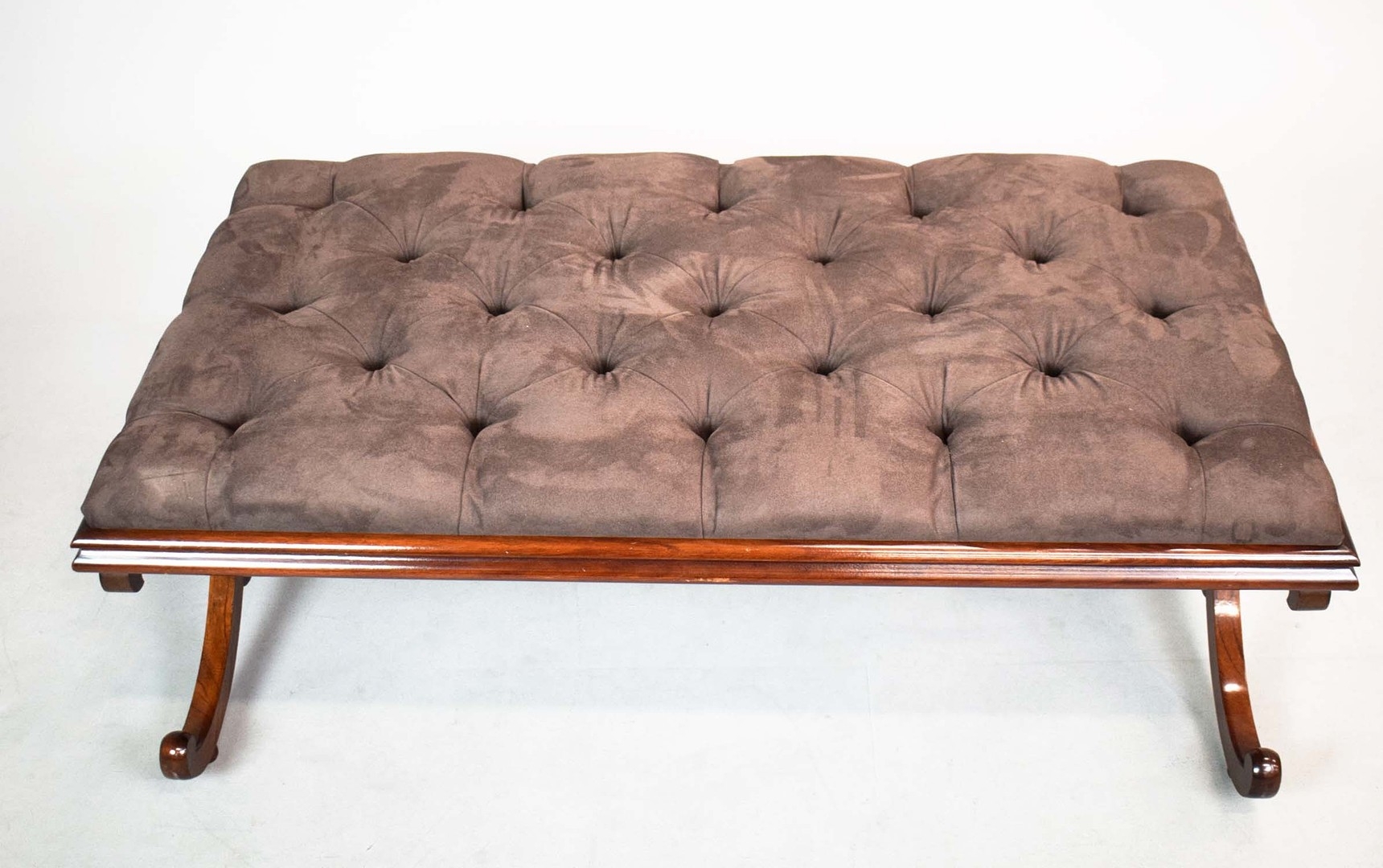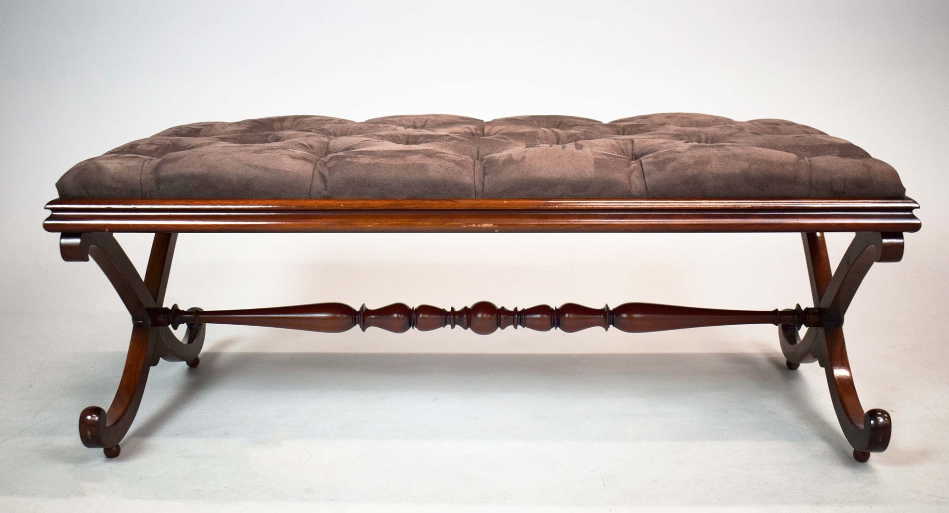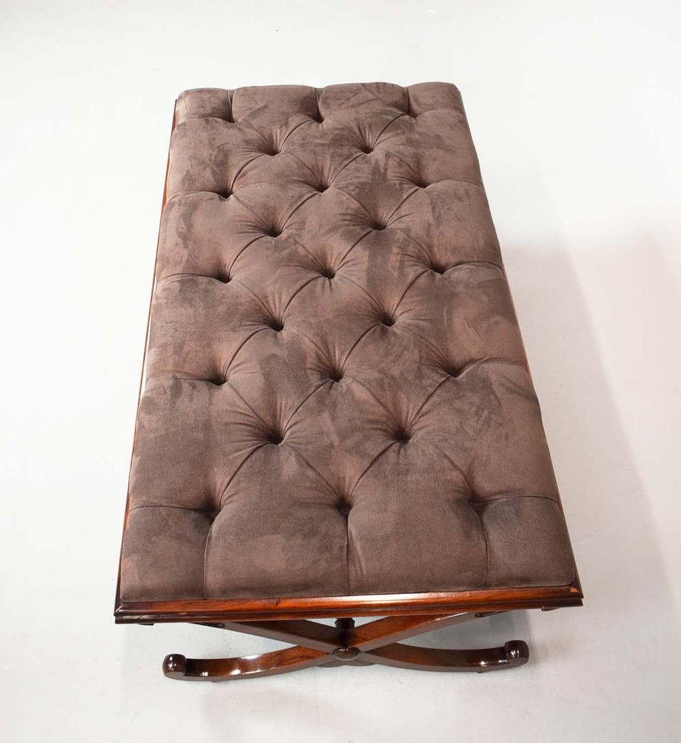 VICTORIAN STYLE MAHOGANY HEARTH STOOL. dark brown Alcantara ...