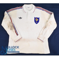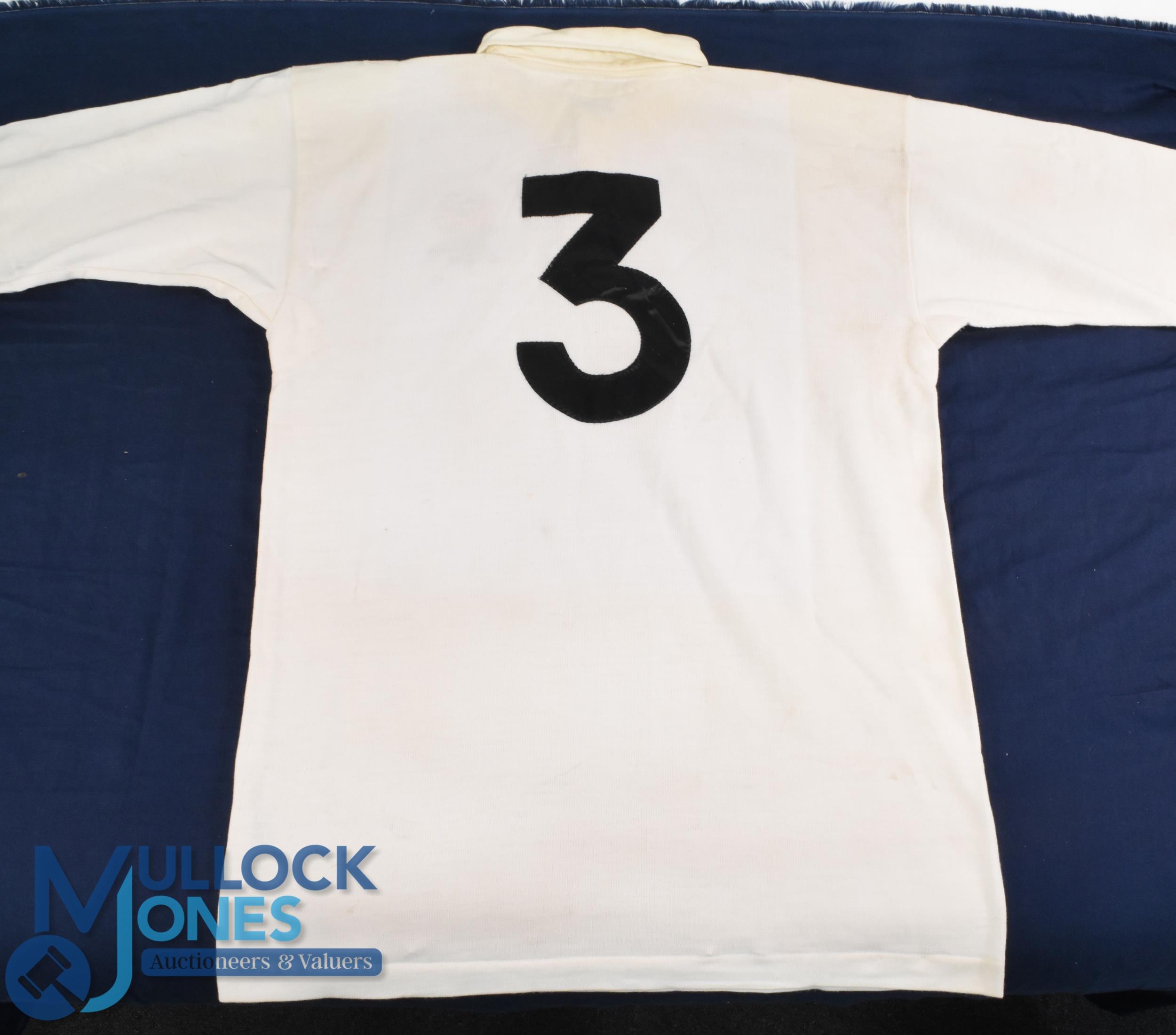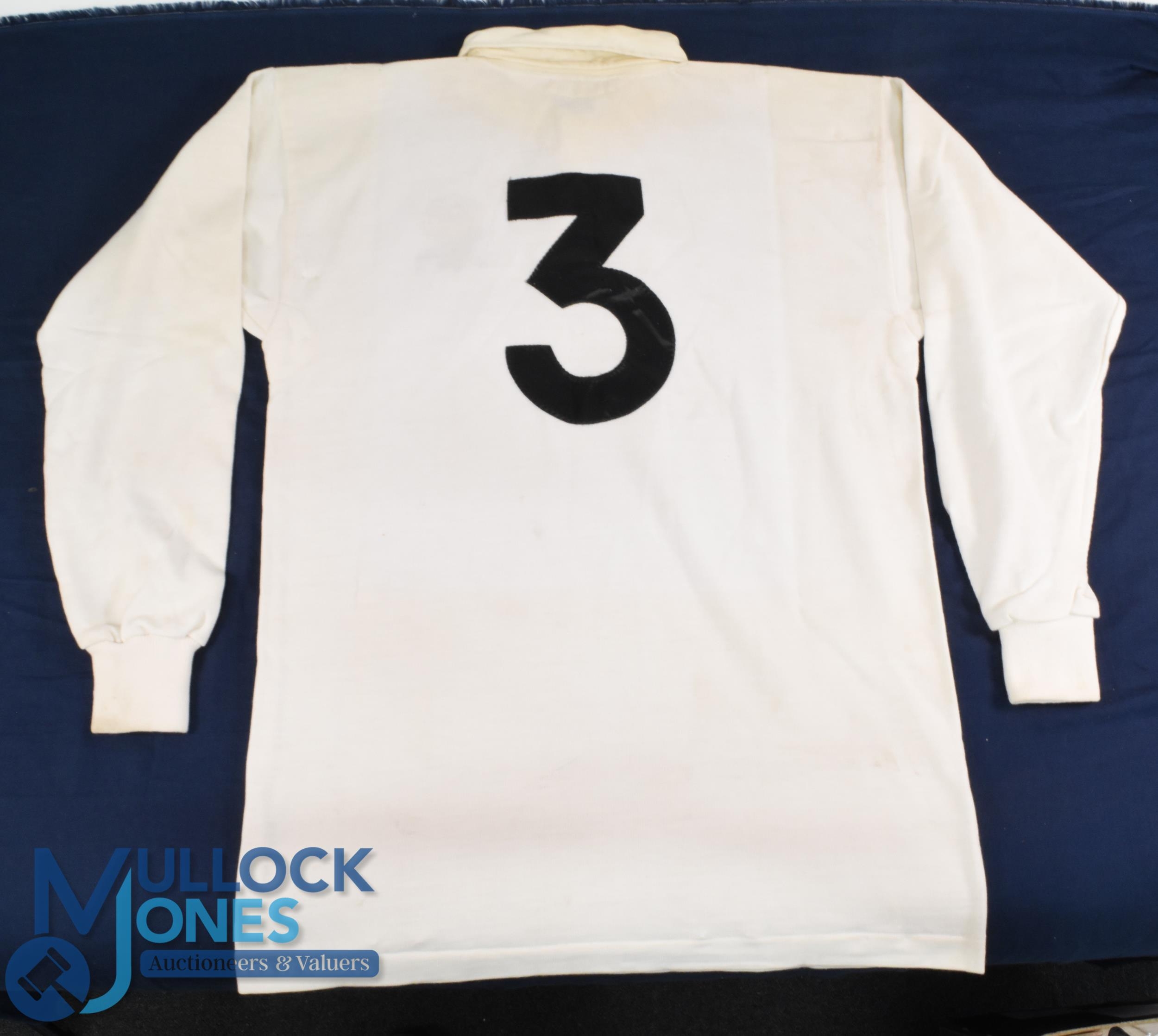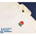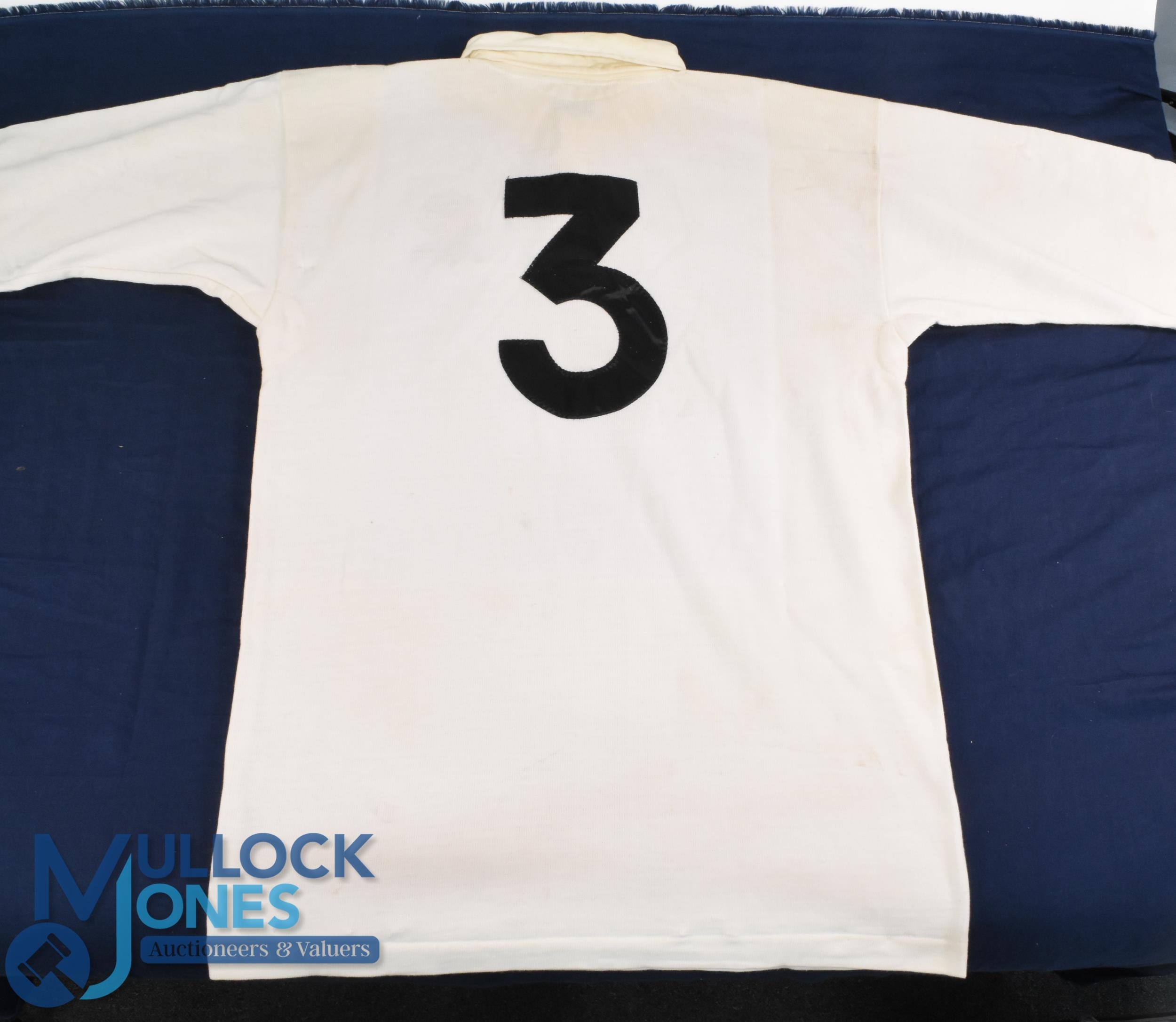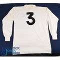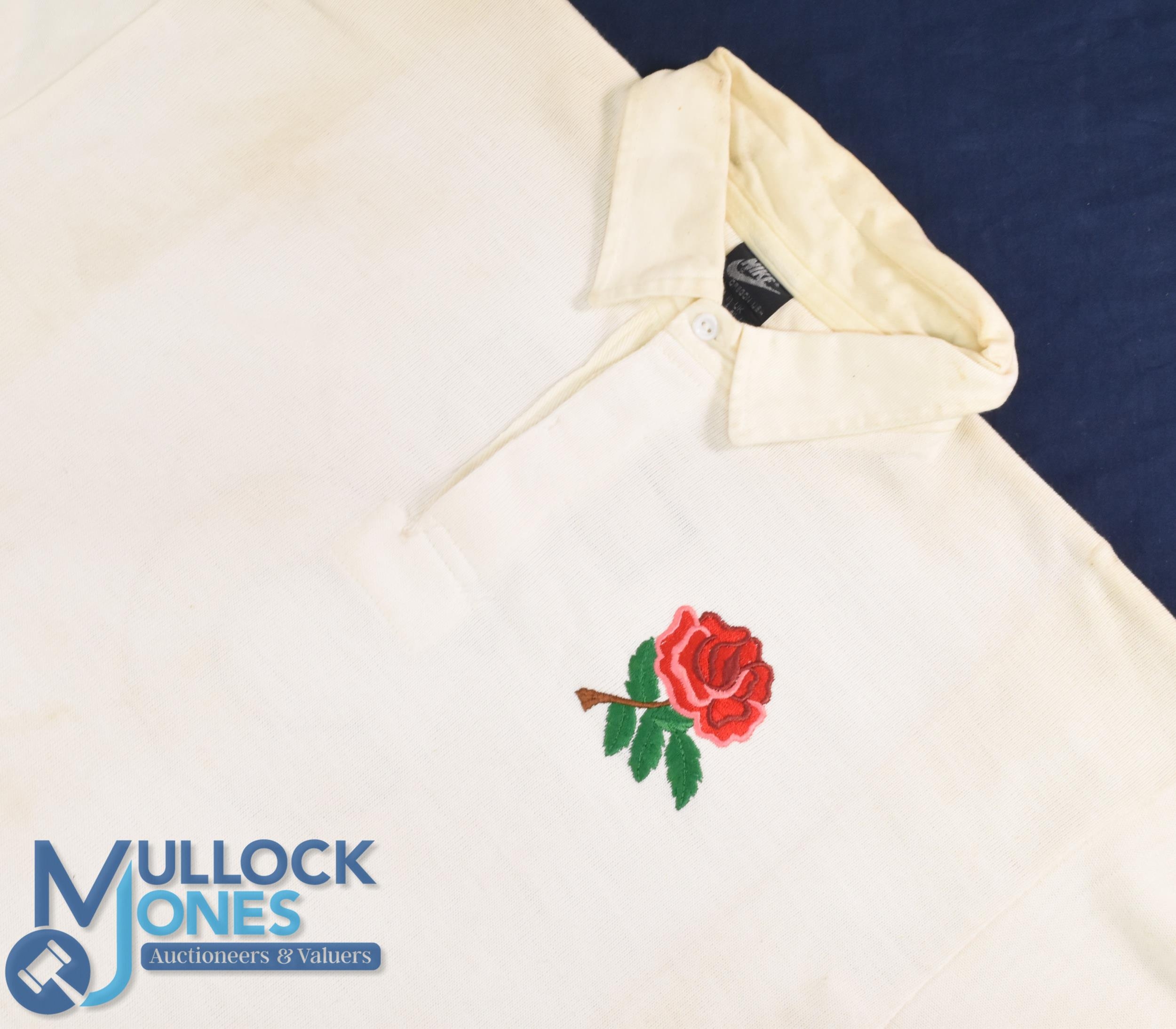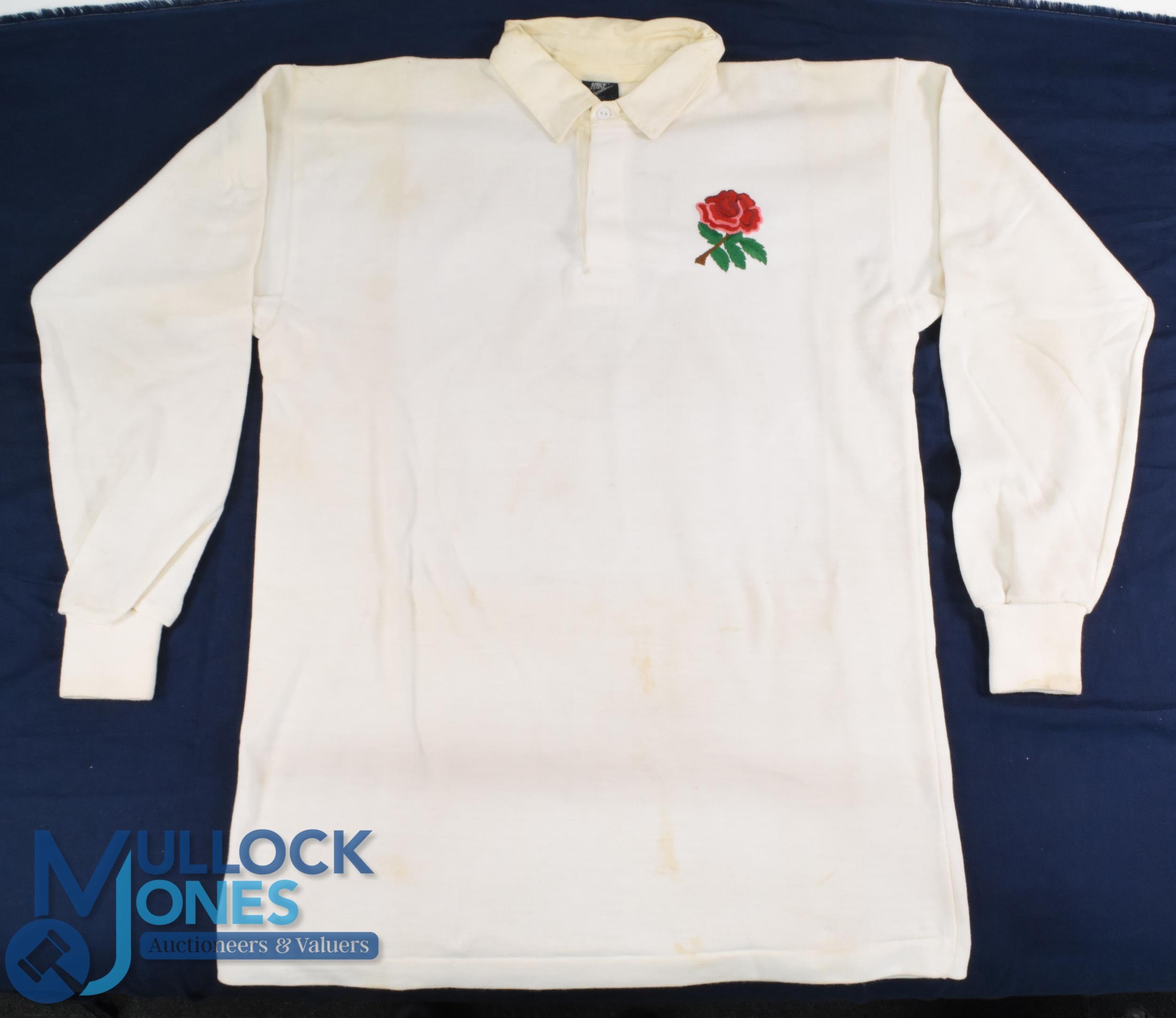 1988 Jeff Probyn Matchworn English Rugby Jersey: Classic unadorned large Nike No. 3 England white jersey with rose badge worn by the longserving prop. VG