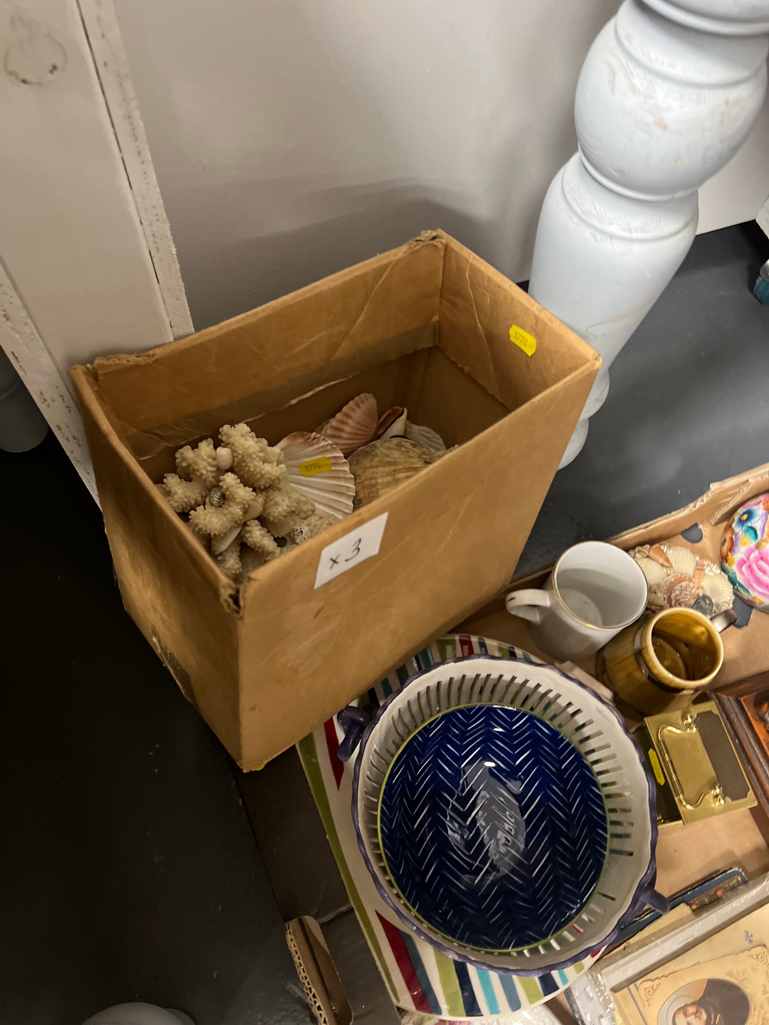 3 Boxes misc pottery shells etc