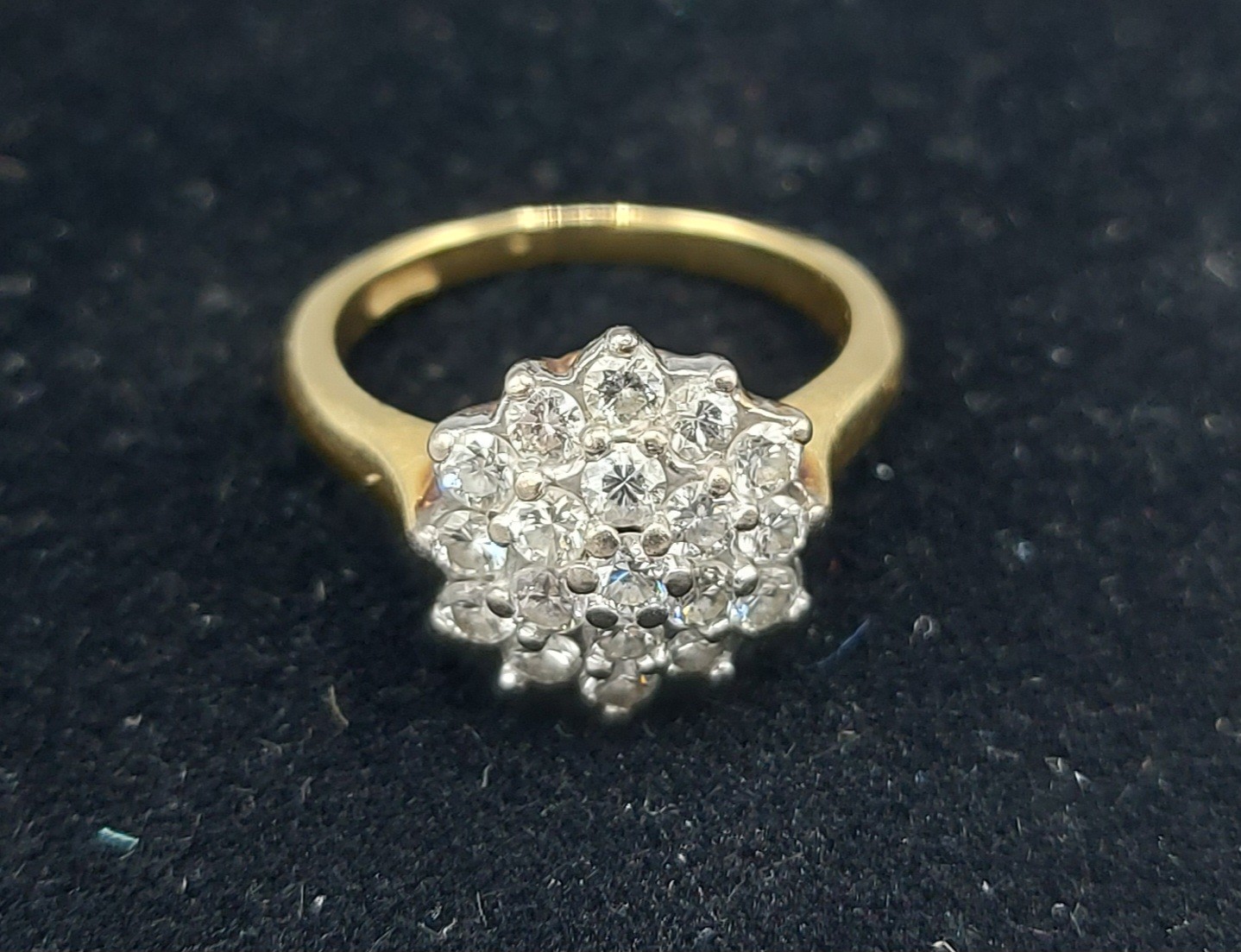 An 18ct gold Diamond cluster ring set with many Diamonds, 3.7gms, ring size H