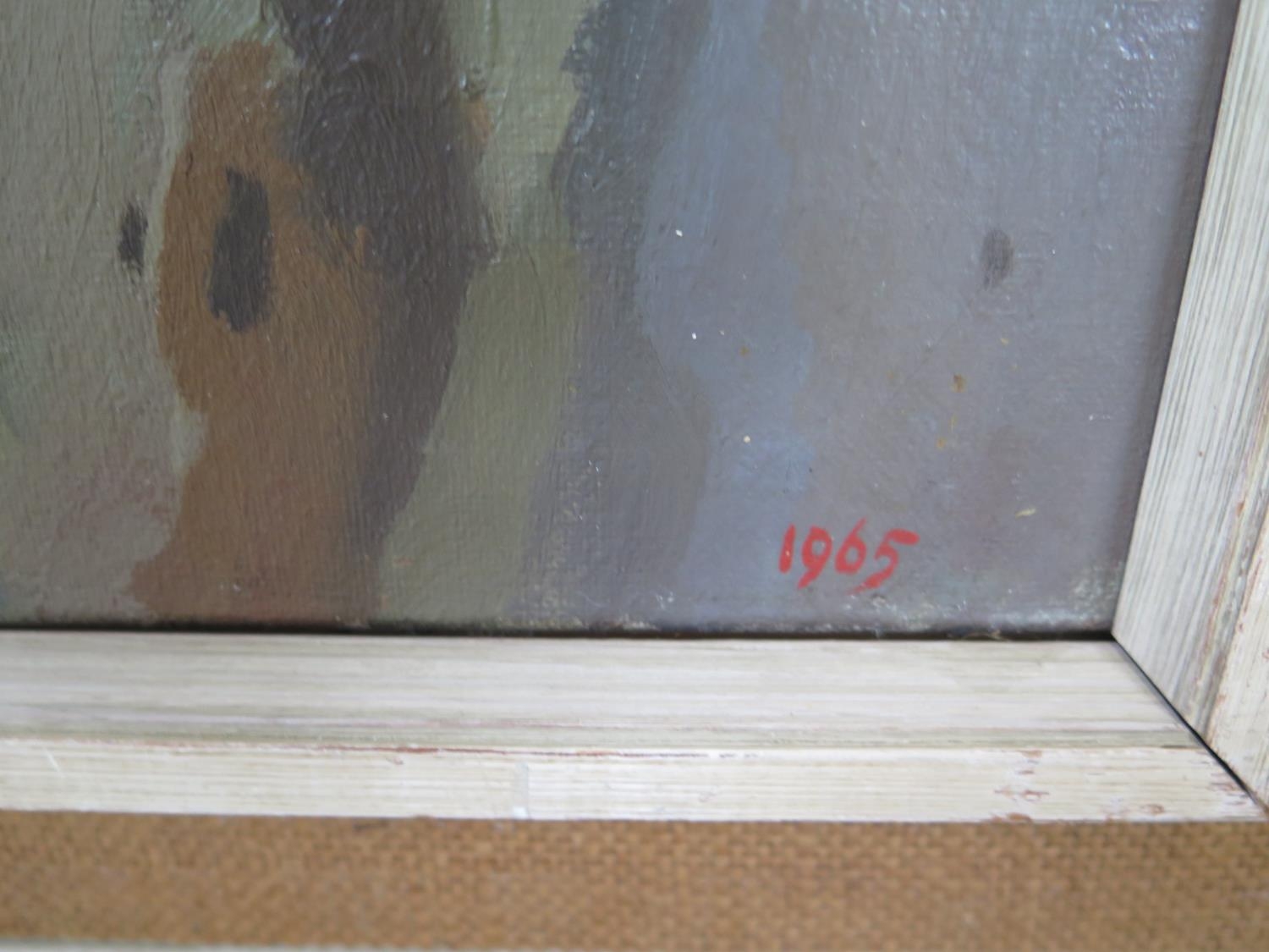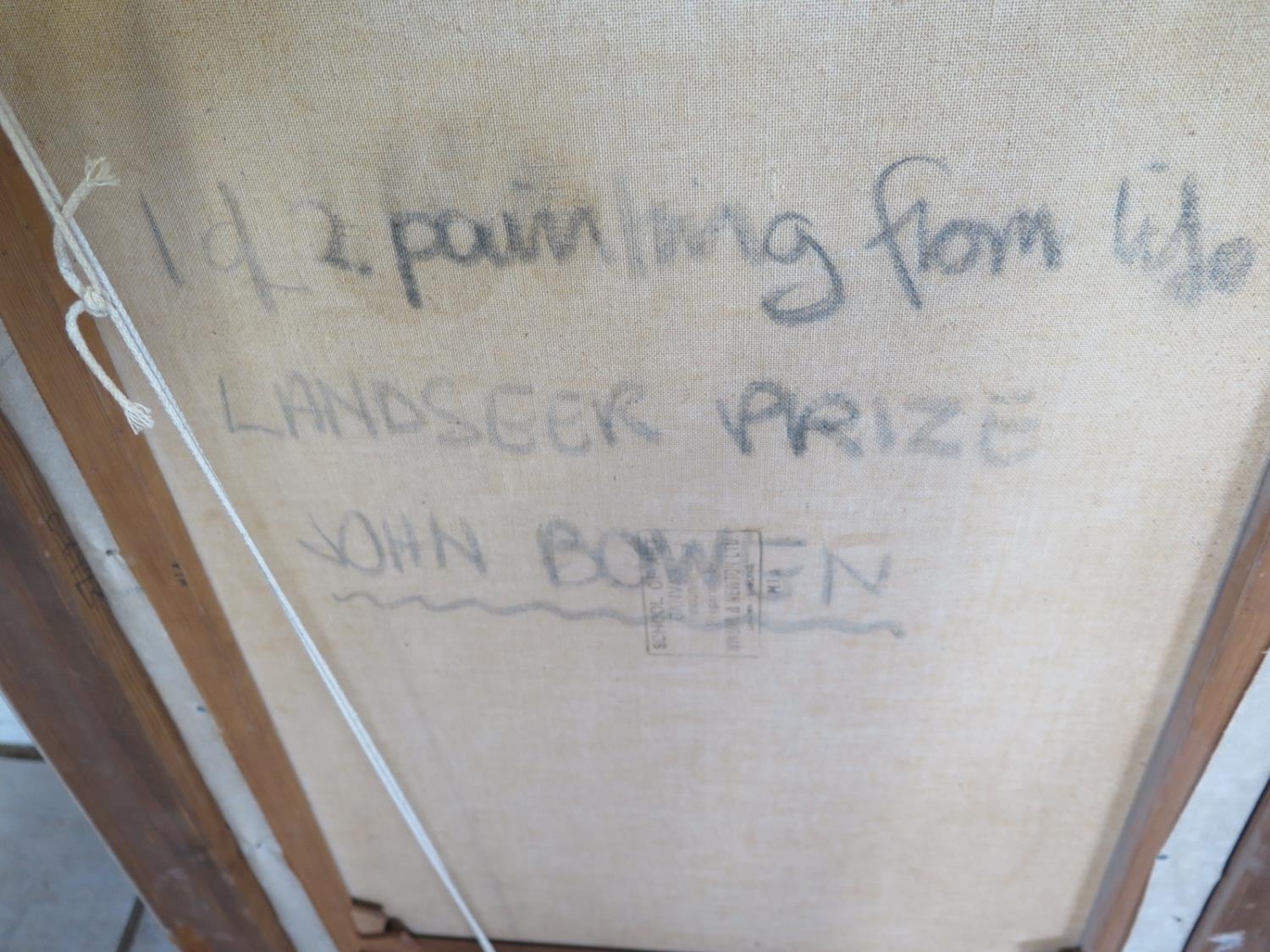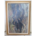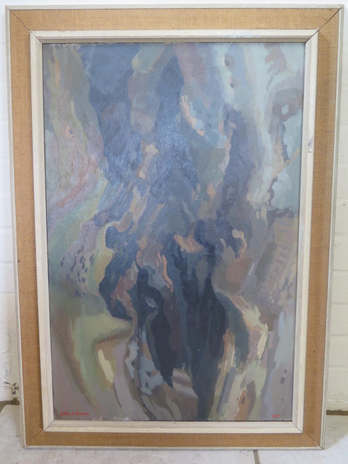 John A. Bowen, an abstract study, oil on canvas, signed and dated 1965, hand written text verso, 1 of 2 paintings from the Landseer Prize, sight size approximately 75 x 49.5cm, overall frame size approximately 91 x 65.5cm