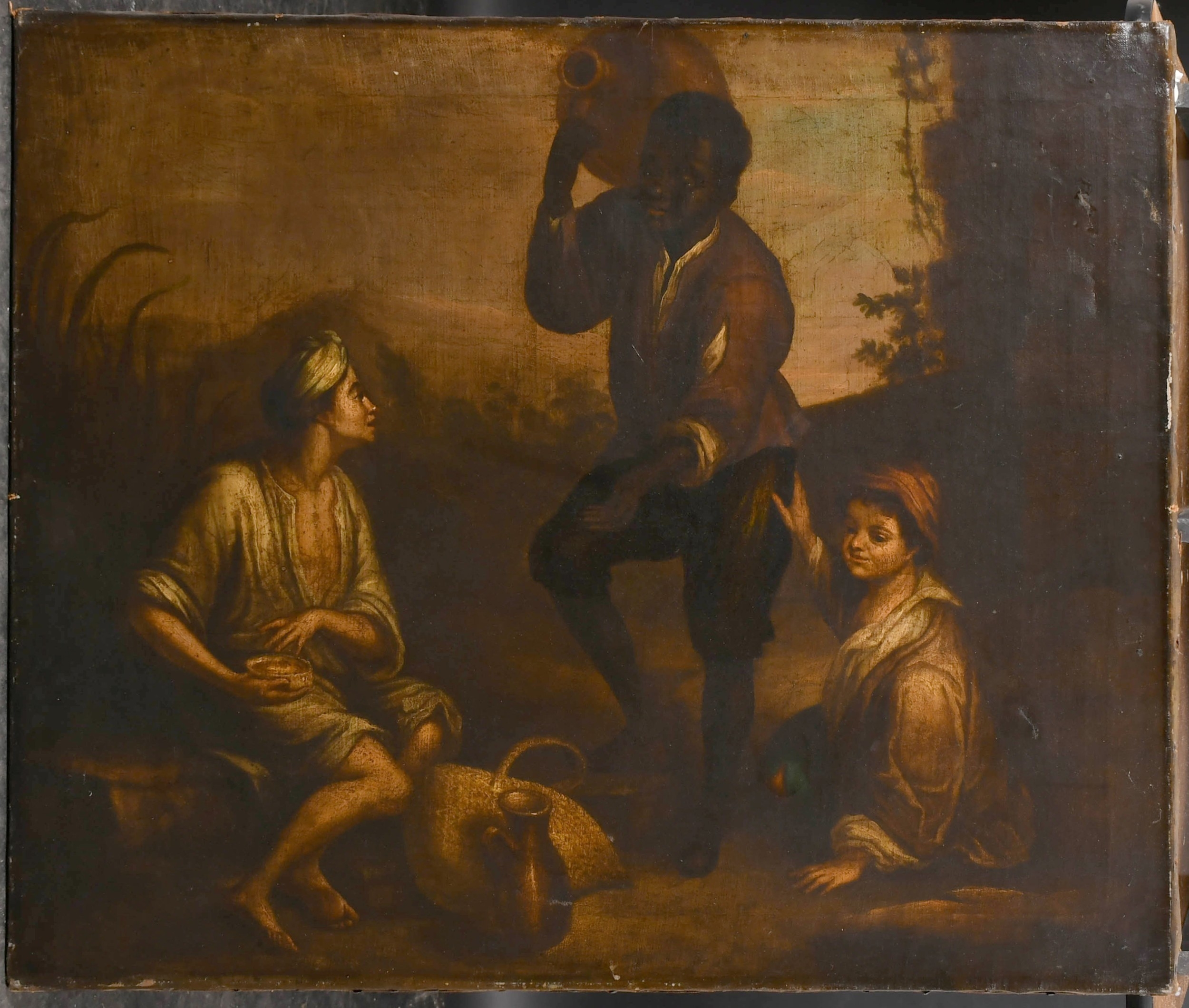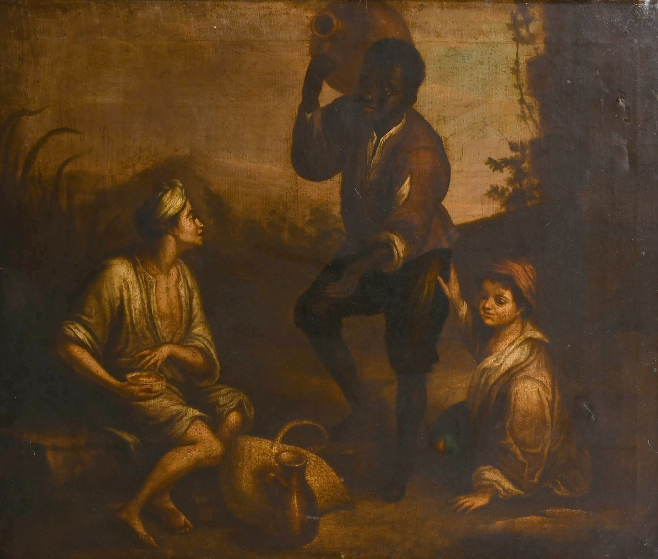After Bartolome Esteban Murillo (1618-1682) Spanish. Three Boys, Oil on canvas, unframed 25.5" x 30.25" (64.7 x 76.8cm)