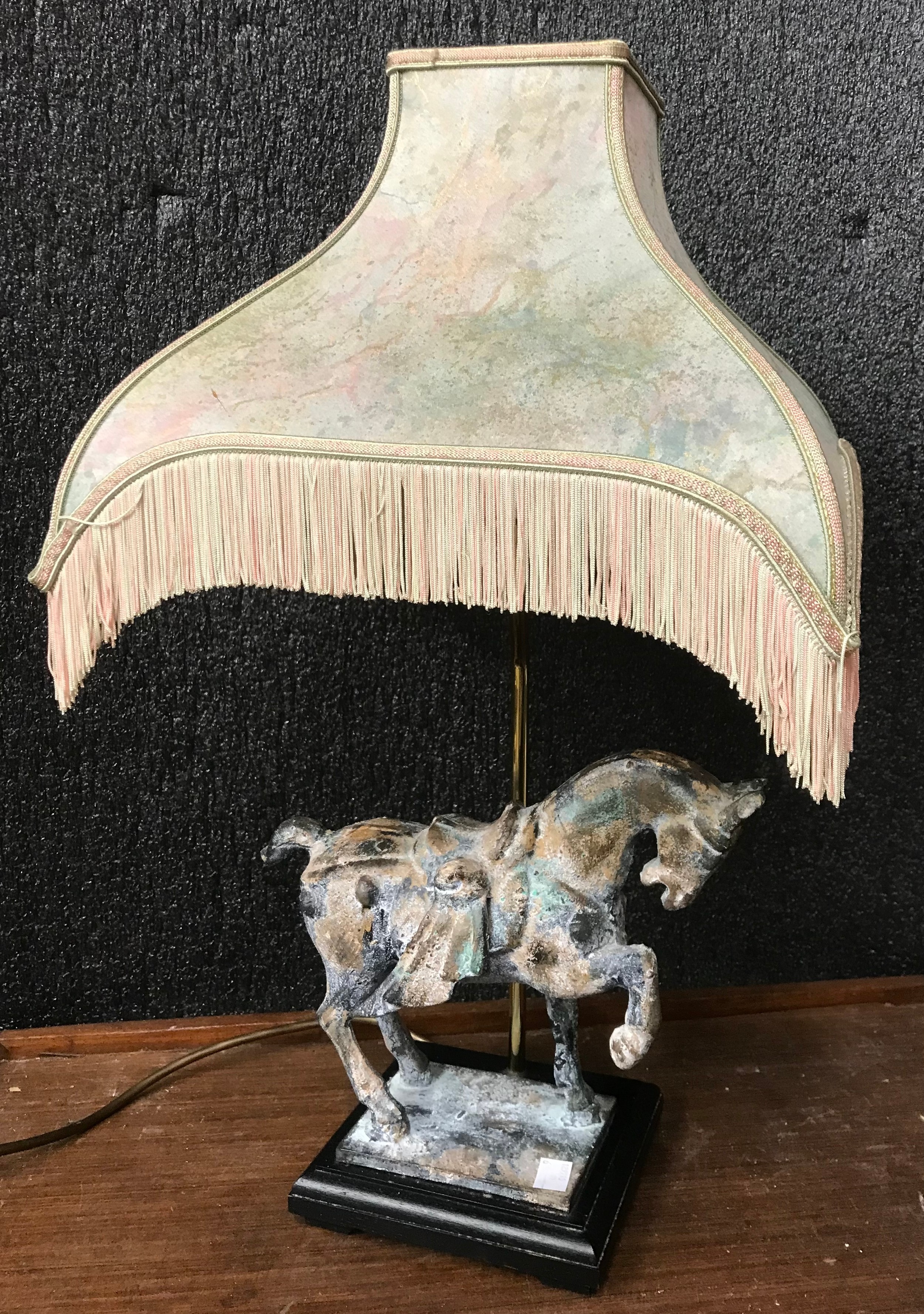 A Tang style metal horse table lamp