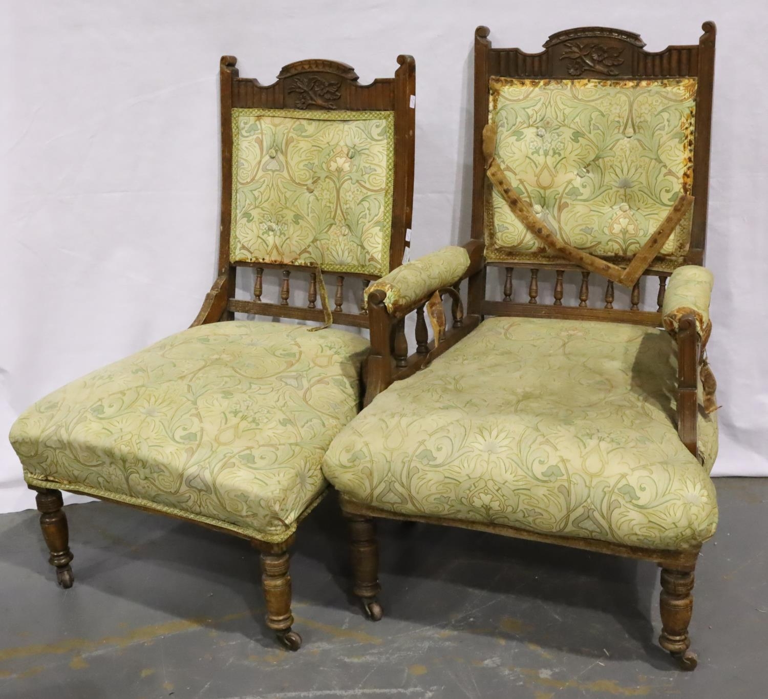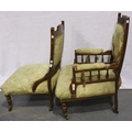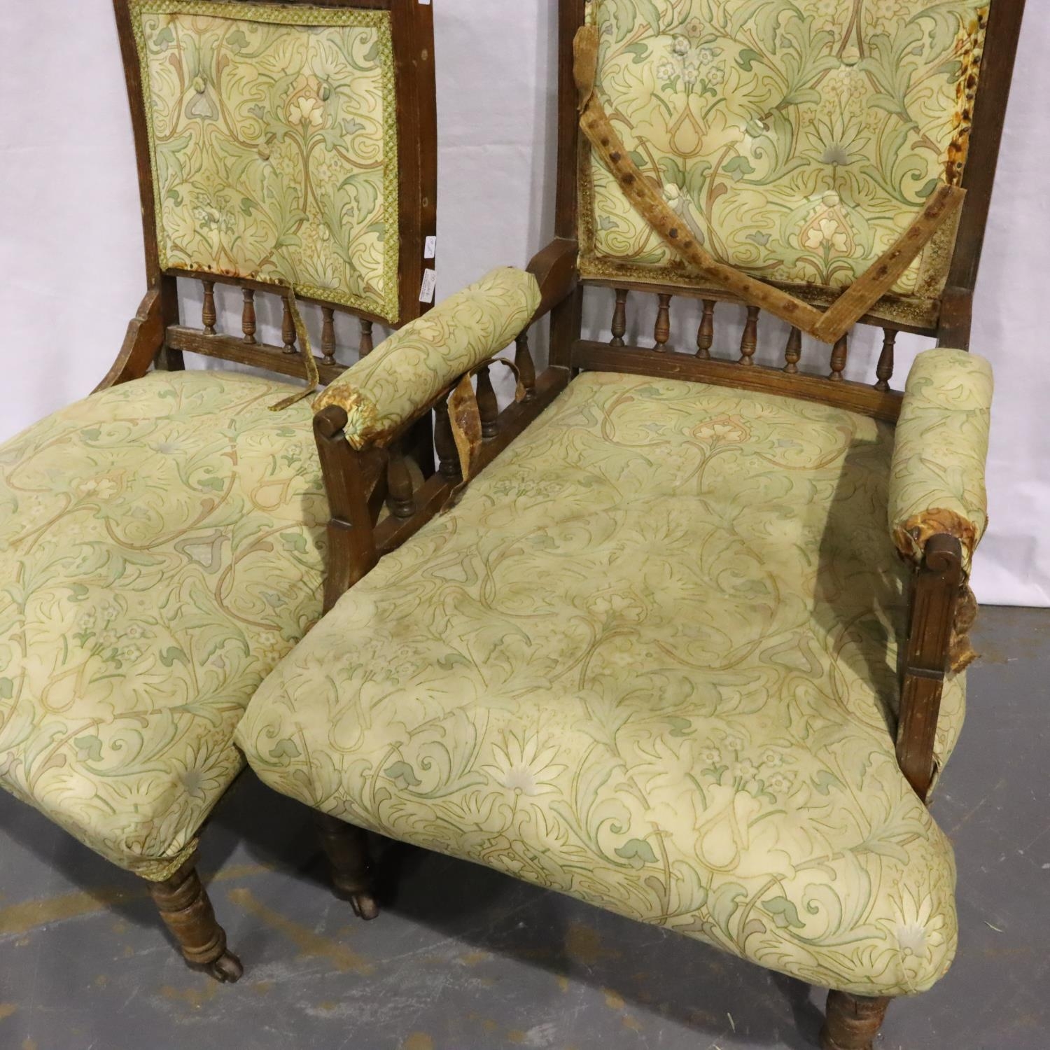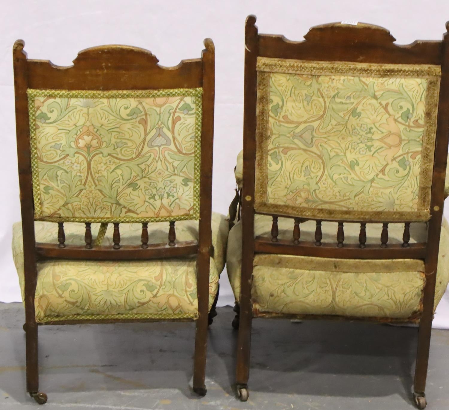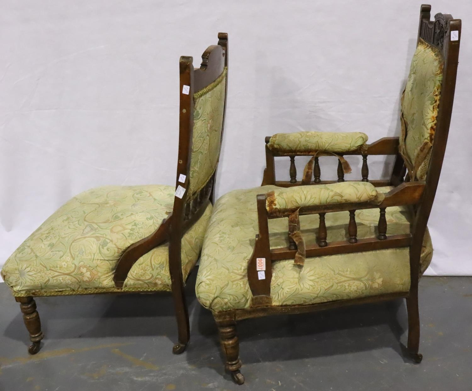 Edwardian walnut framed gentlemans salon chair with further chair for reupholstery. Not available for in-house P&P, contact Paul O'Hea at Mailboxes on 01925 659133