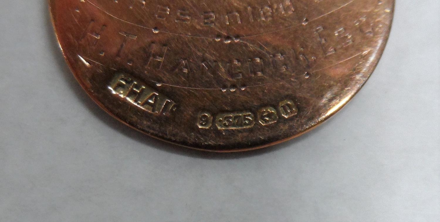 Edwardian 9ct gold presentation medal,