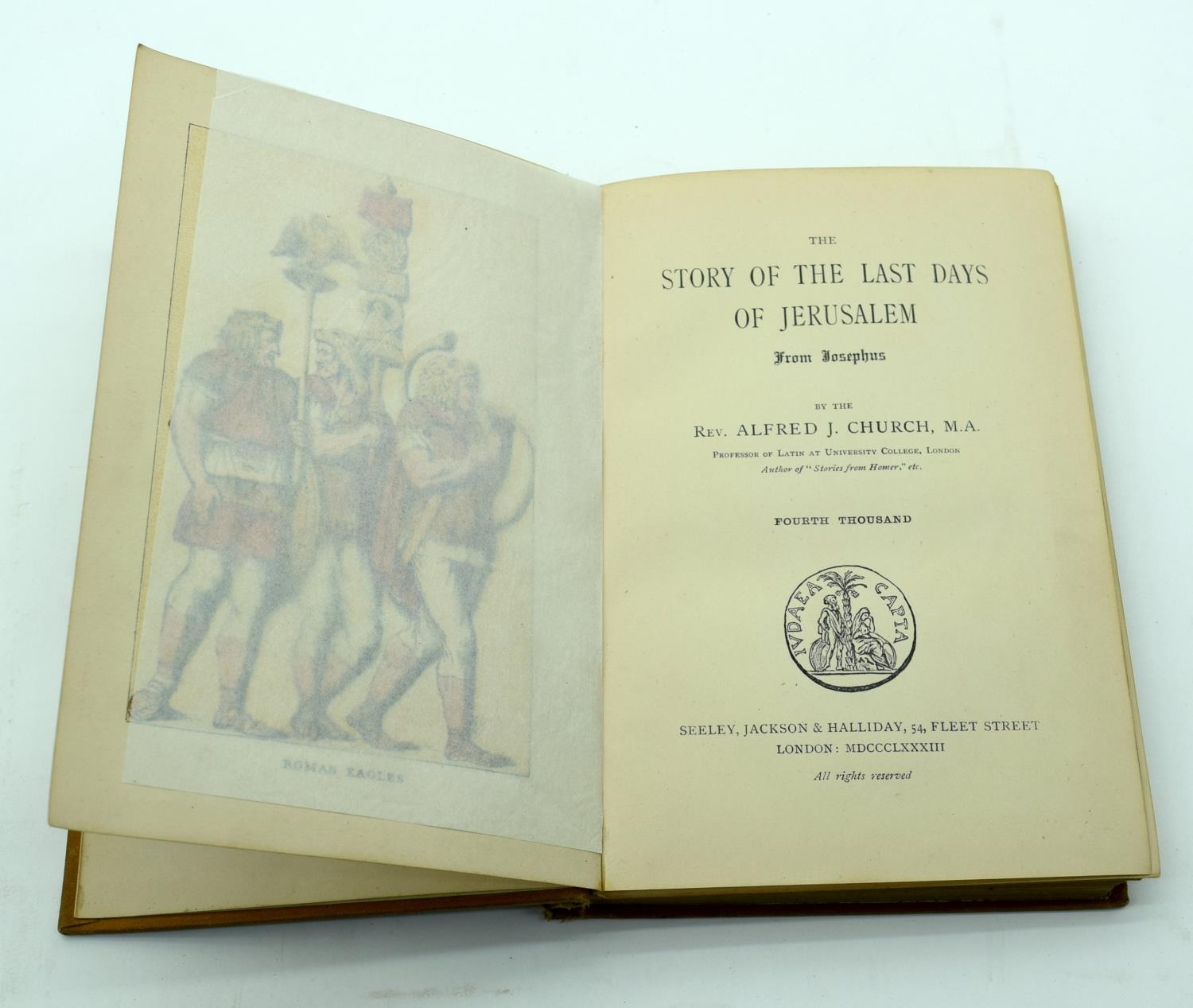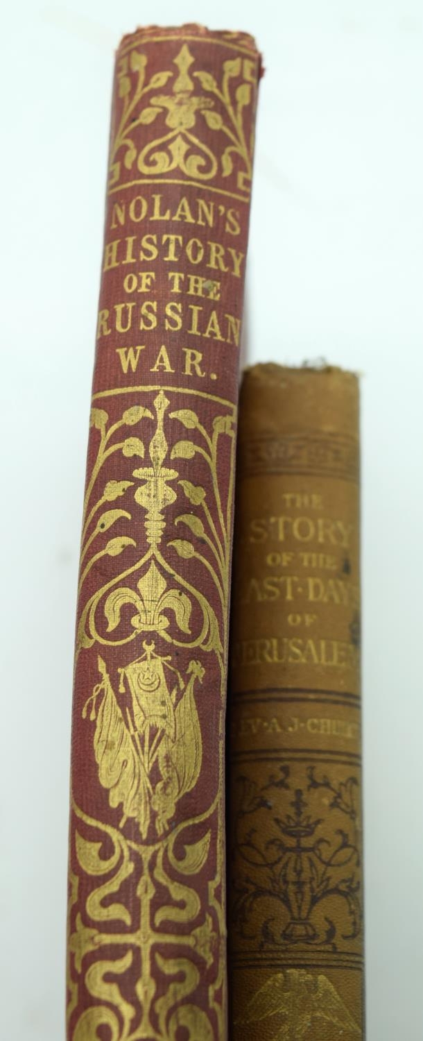 The story of the last days of Jerusalem book by the Rev. Alfred Church C1886 together with Nolan's History of the Russian War 26 x 18cm (2).