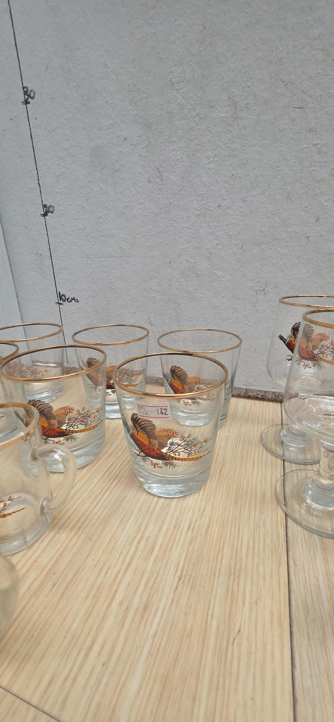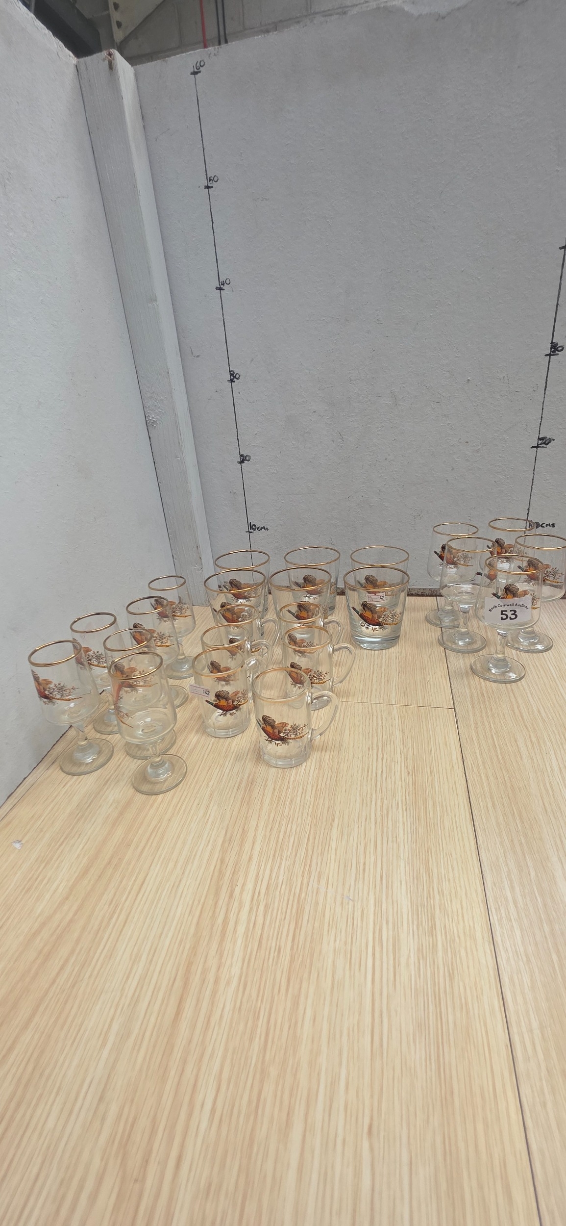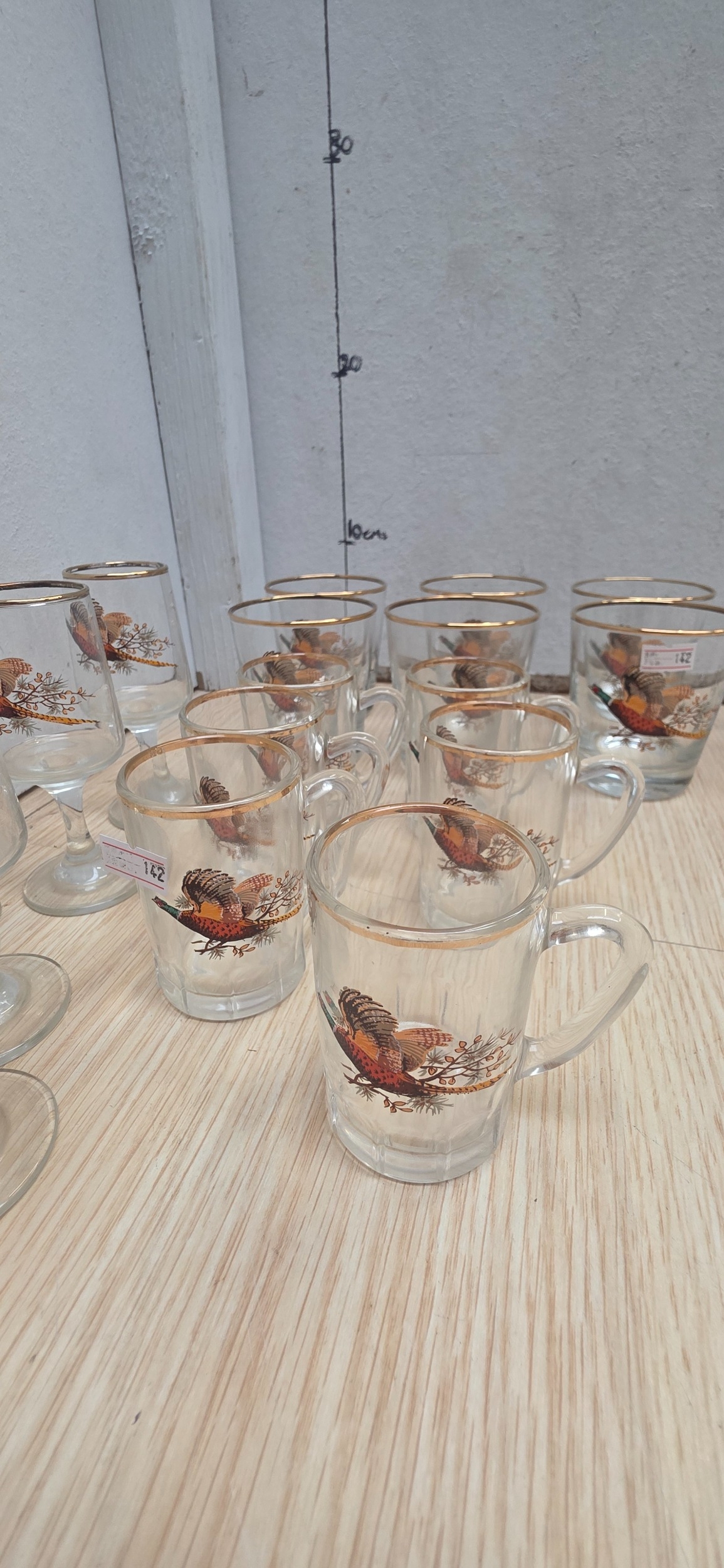 Large Collection of Flying Pheasant Gold Rimmed Glasses