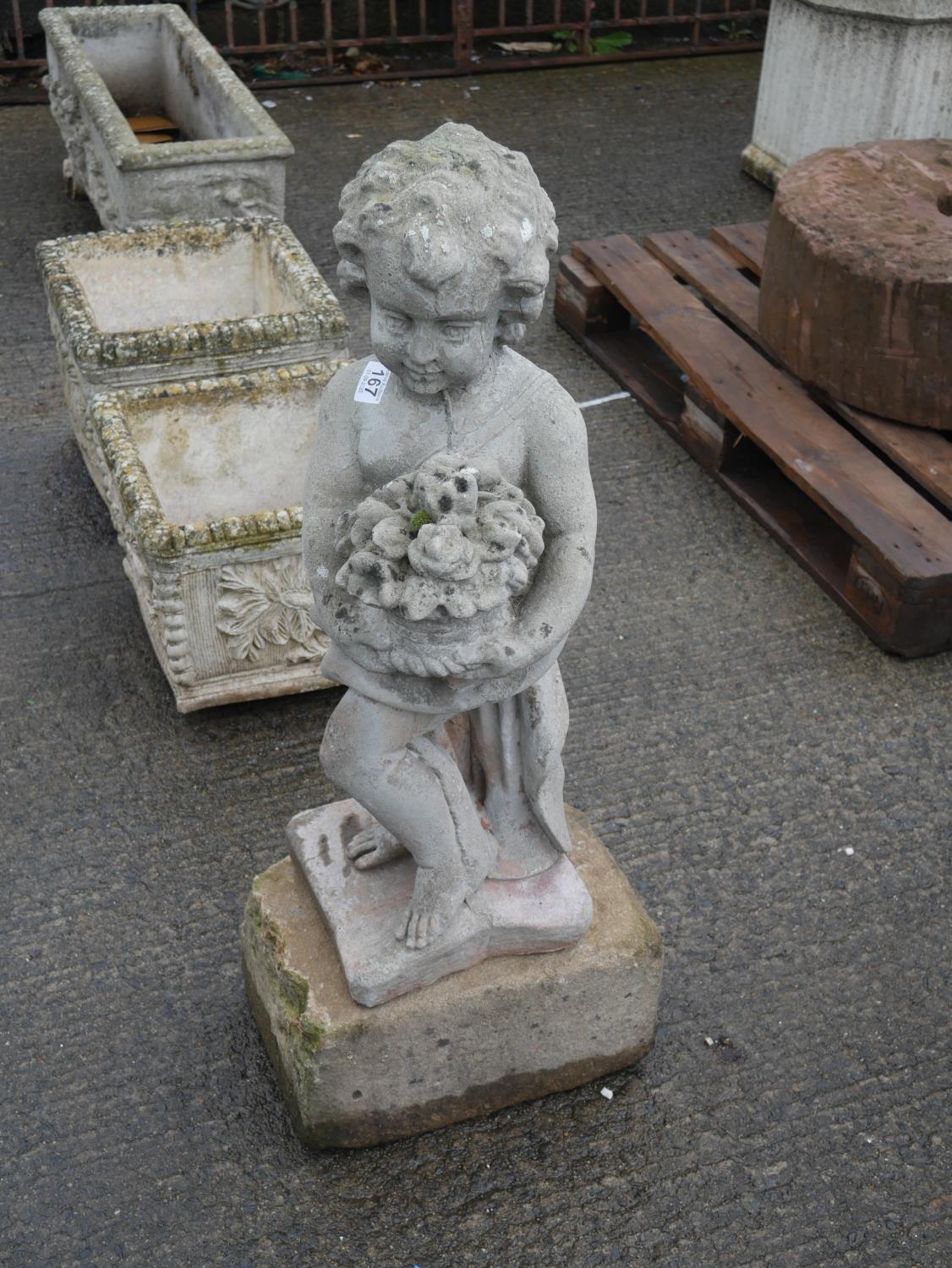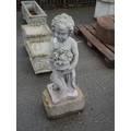 CONCRETE GARDEN FIGURE ON CUT STONE BASE