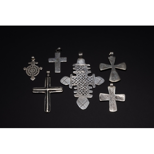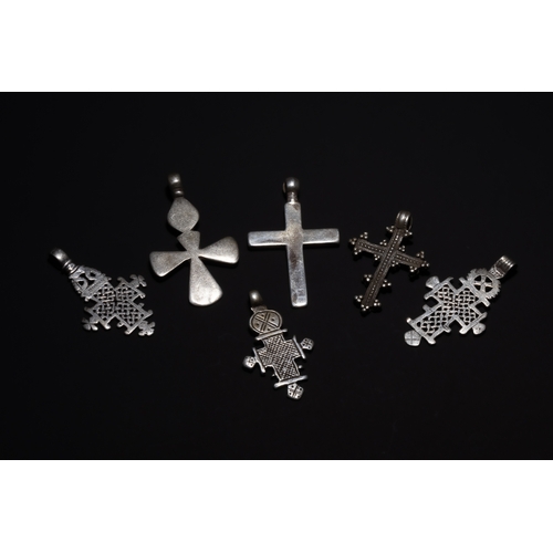 A Collection of Ethiopian Coptic Silver Cross Pendants.
